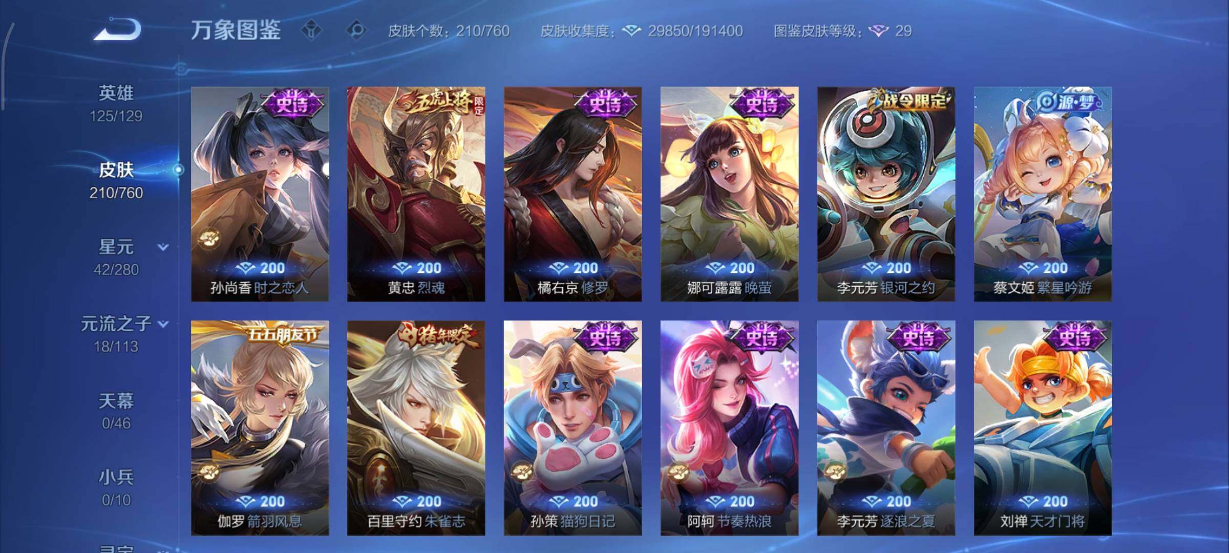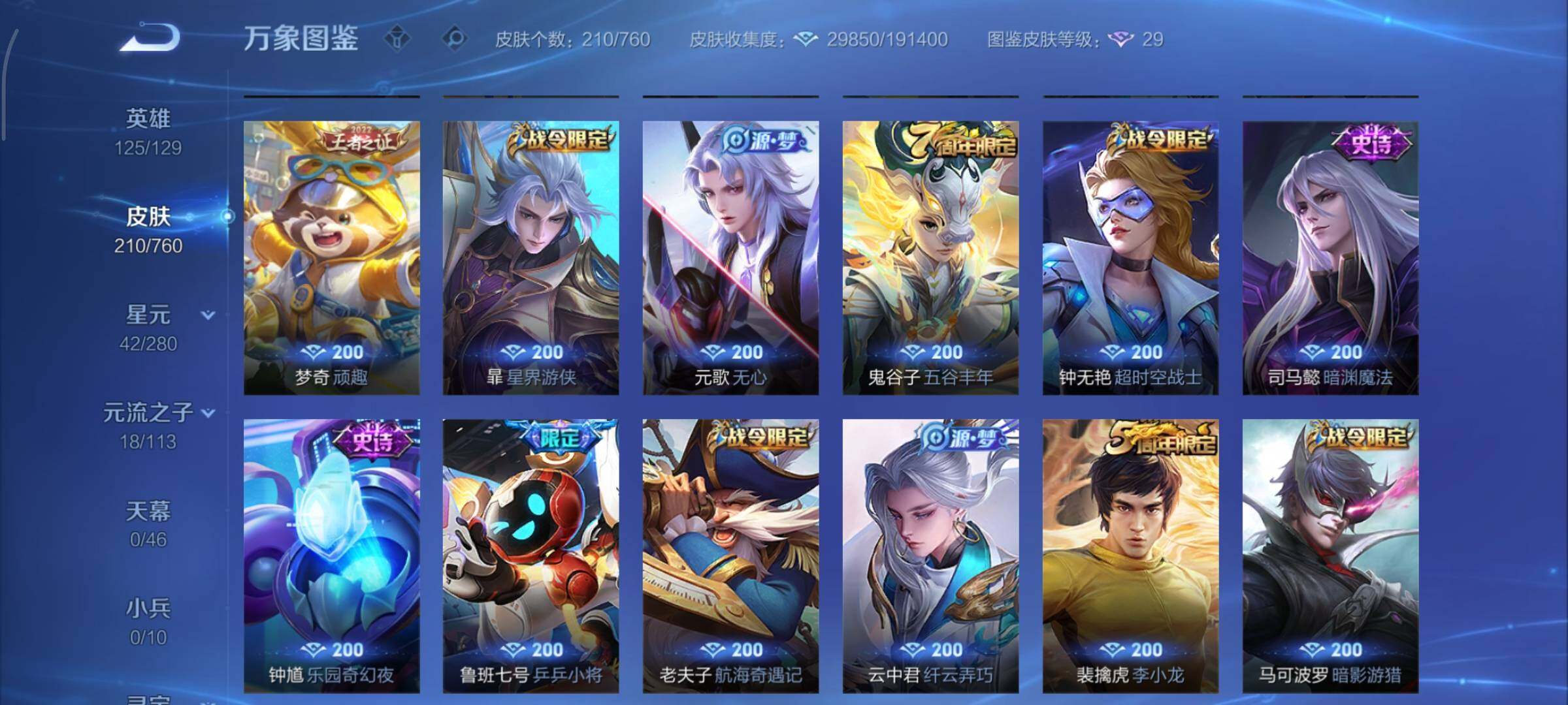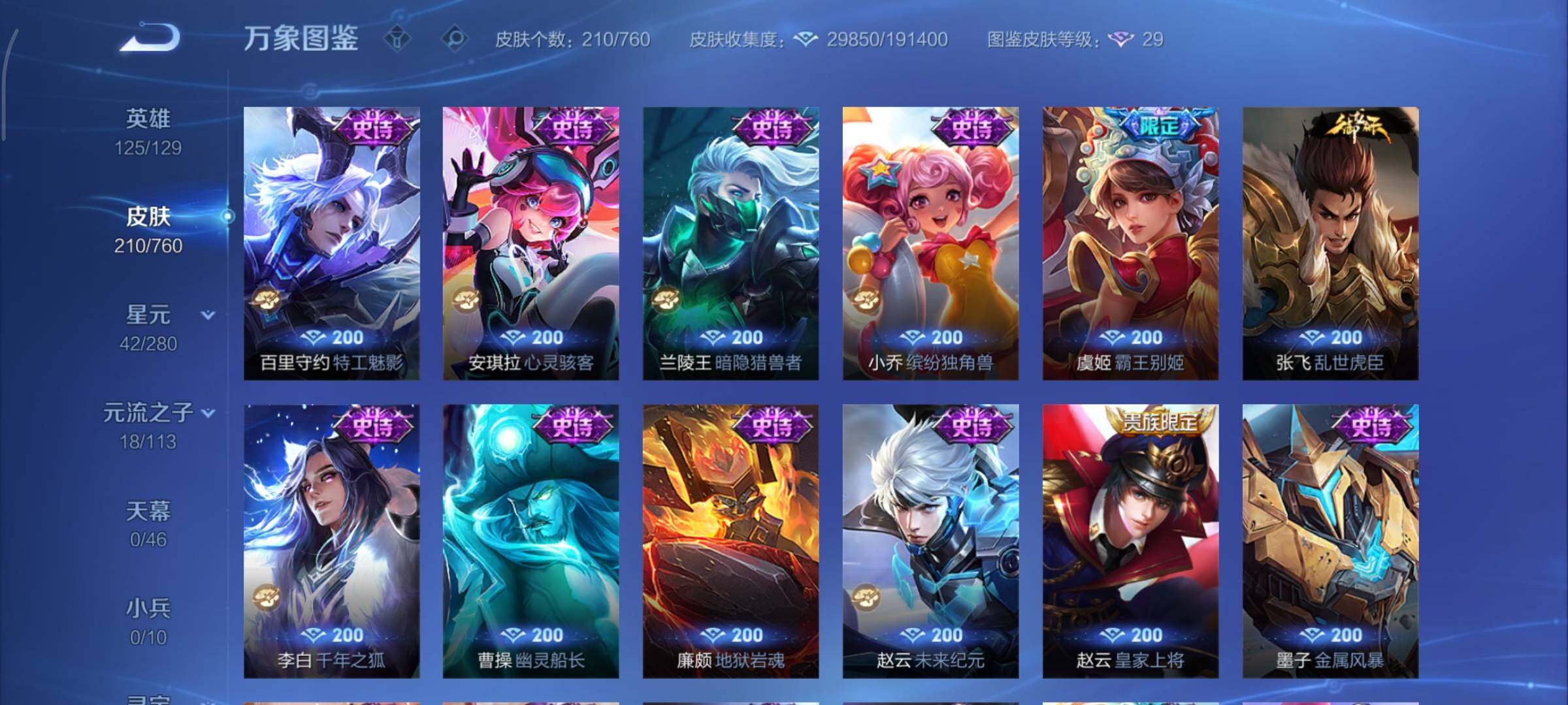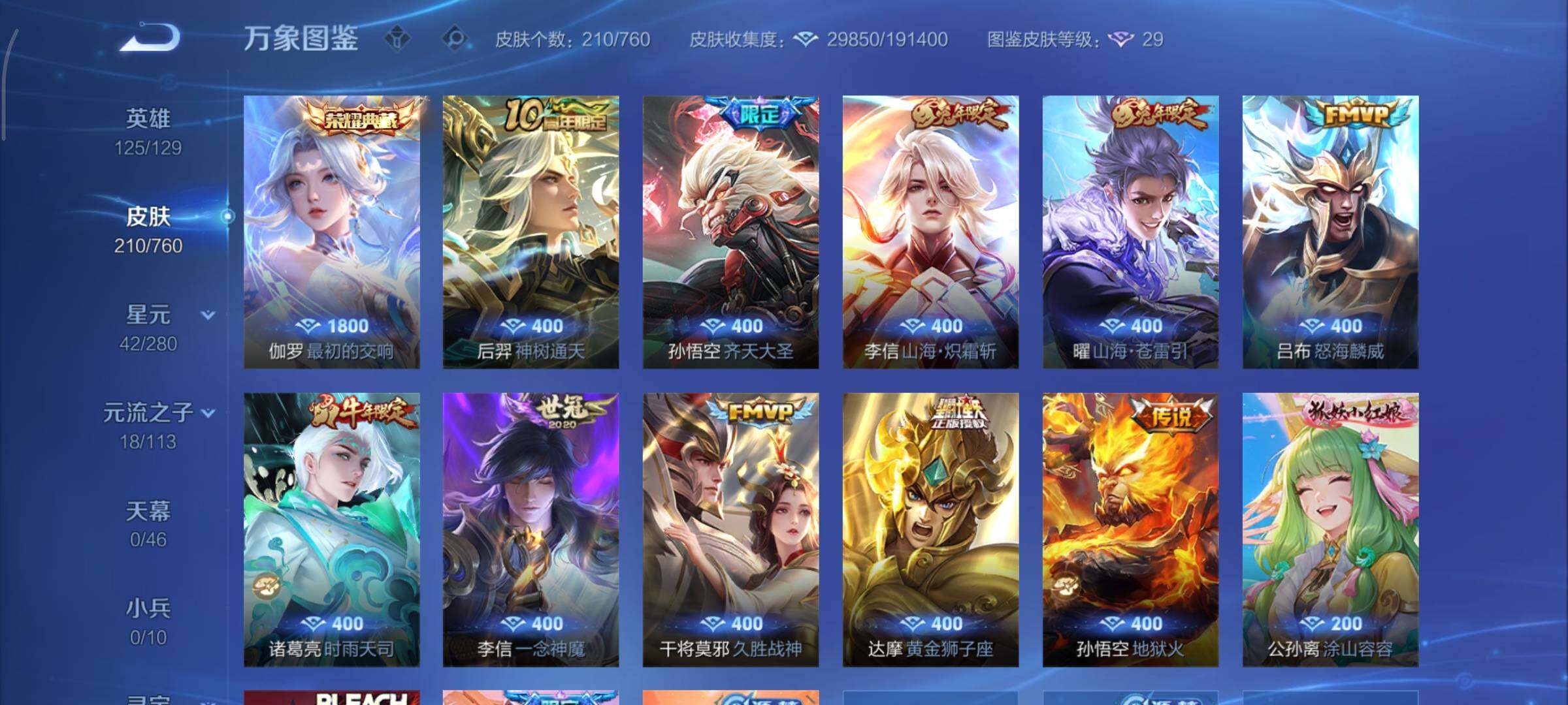 可换绑【捡漏特惠号 伽罗典藏 多传说限定质量号】11按键 8王者印记 五级铭文210 可二次CD16390 安卓Q-V7-210皮肤-1典藏皮肤-10传说-62史诗【英雄全皮】:李信全皮【荣耀典藏】:伽罗最初的交响【传说皮肤】:后羿神树通天,孙悟空齐天大圣,曜山海苍雷引,李信山海炽霜斩,吕布怒海麟威,诸葛亮时雨天司,李信一念神魔,干将莫邪久胜战神,达摩黄金狮子座,