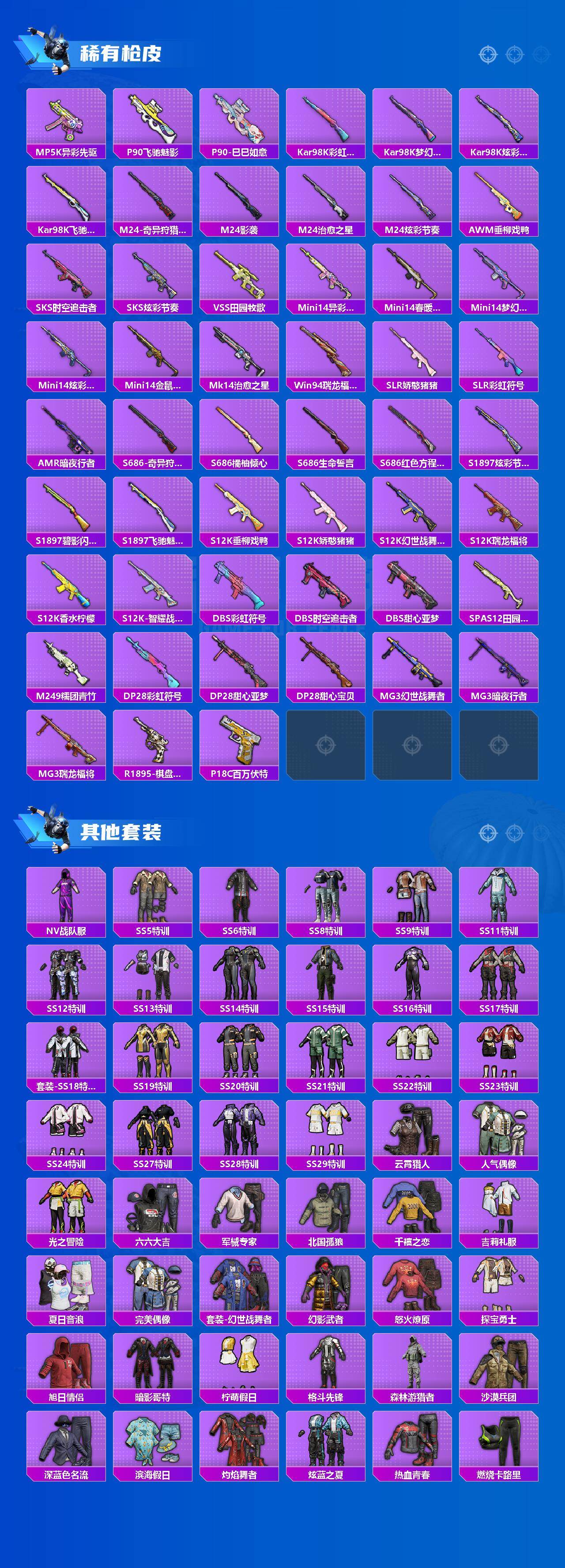 【A2380】安卓【小号 套装-小丑鱼/套装-金羽特工/M416-五爪金龙(七级)/Kar98K-巳巳如意/套装-暗影哥特】 手Q-7粉装-4特效枪-0载具-0粉色飞行器-57843热力值-10王牌印记-153套装-171枪皮