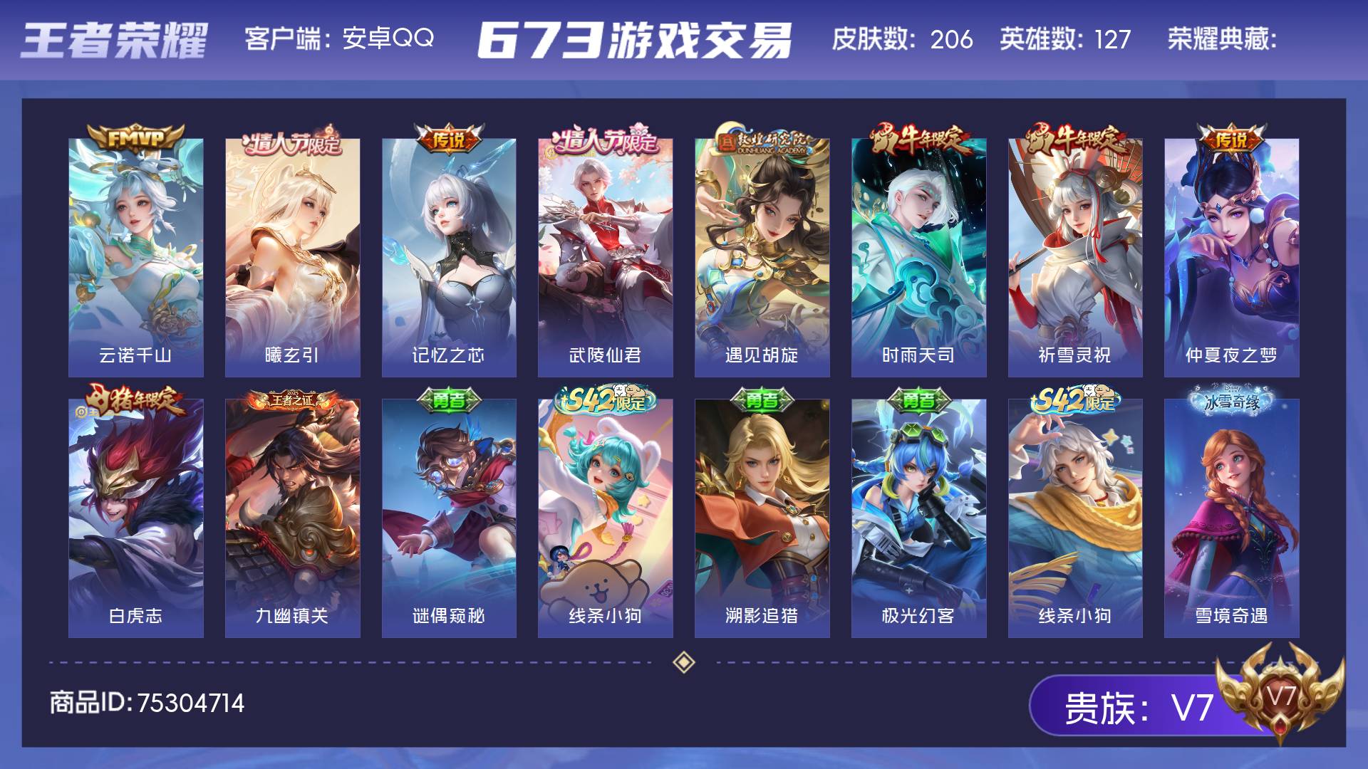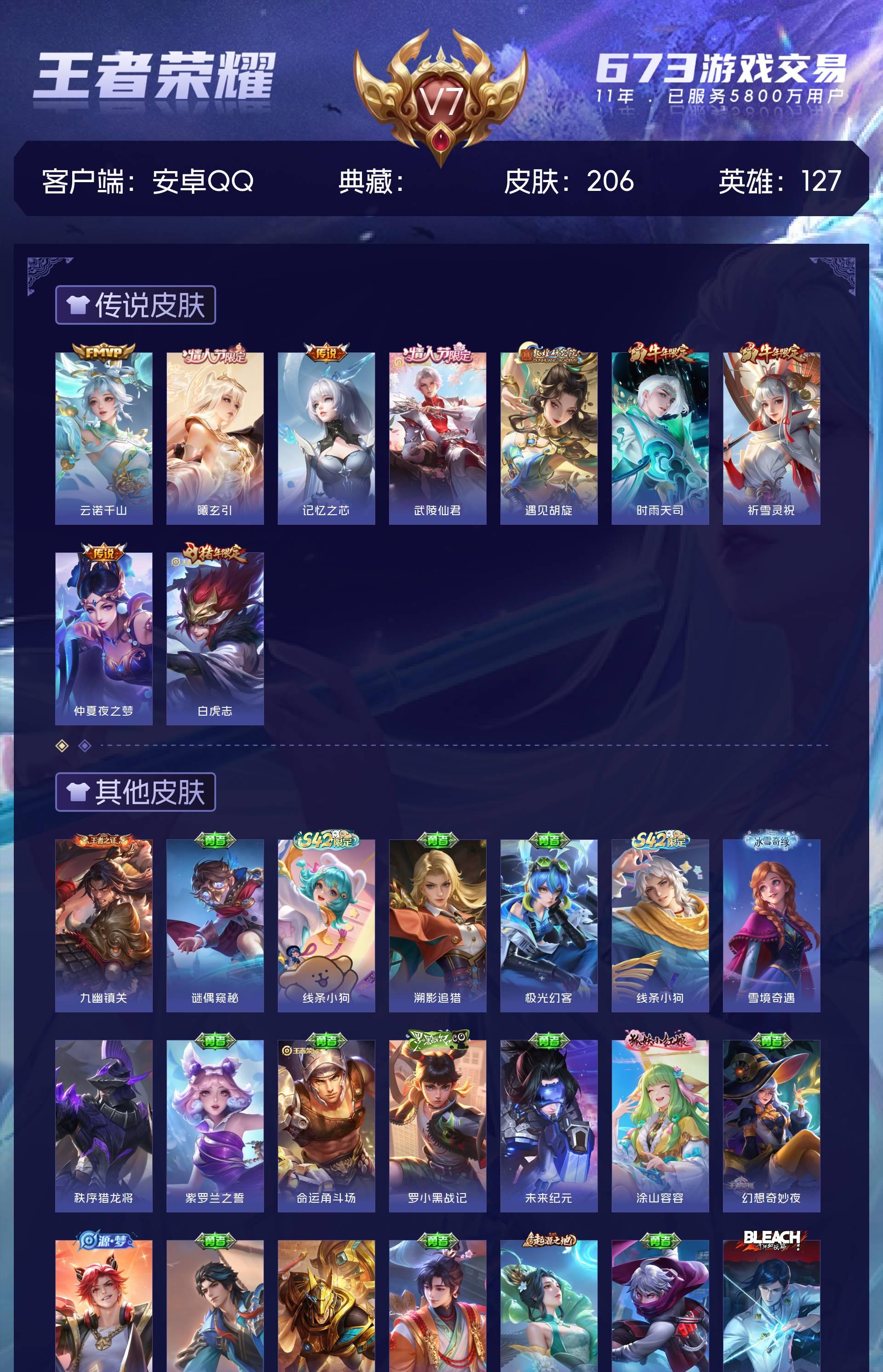 V7 皮肤206 英雄127 最强王者 传说9 其他皮肤203