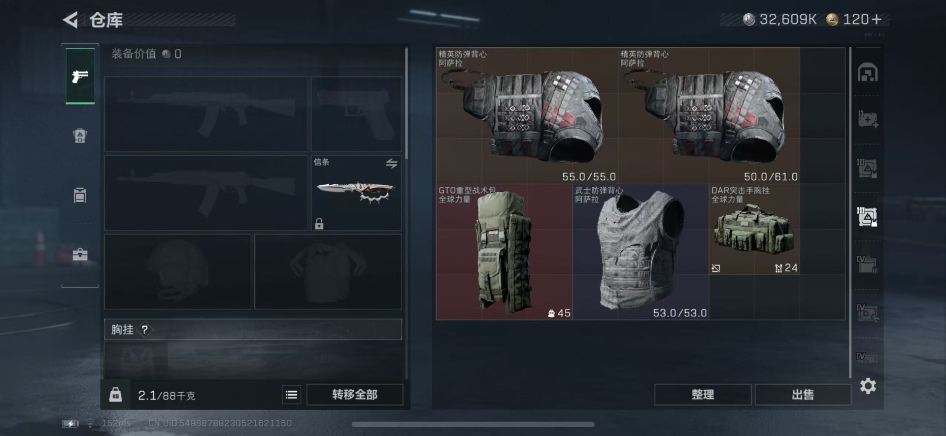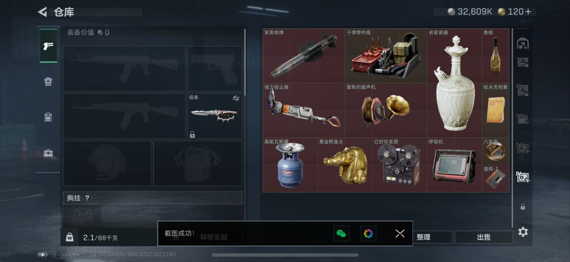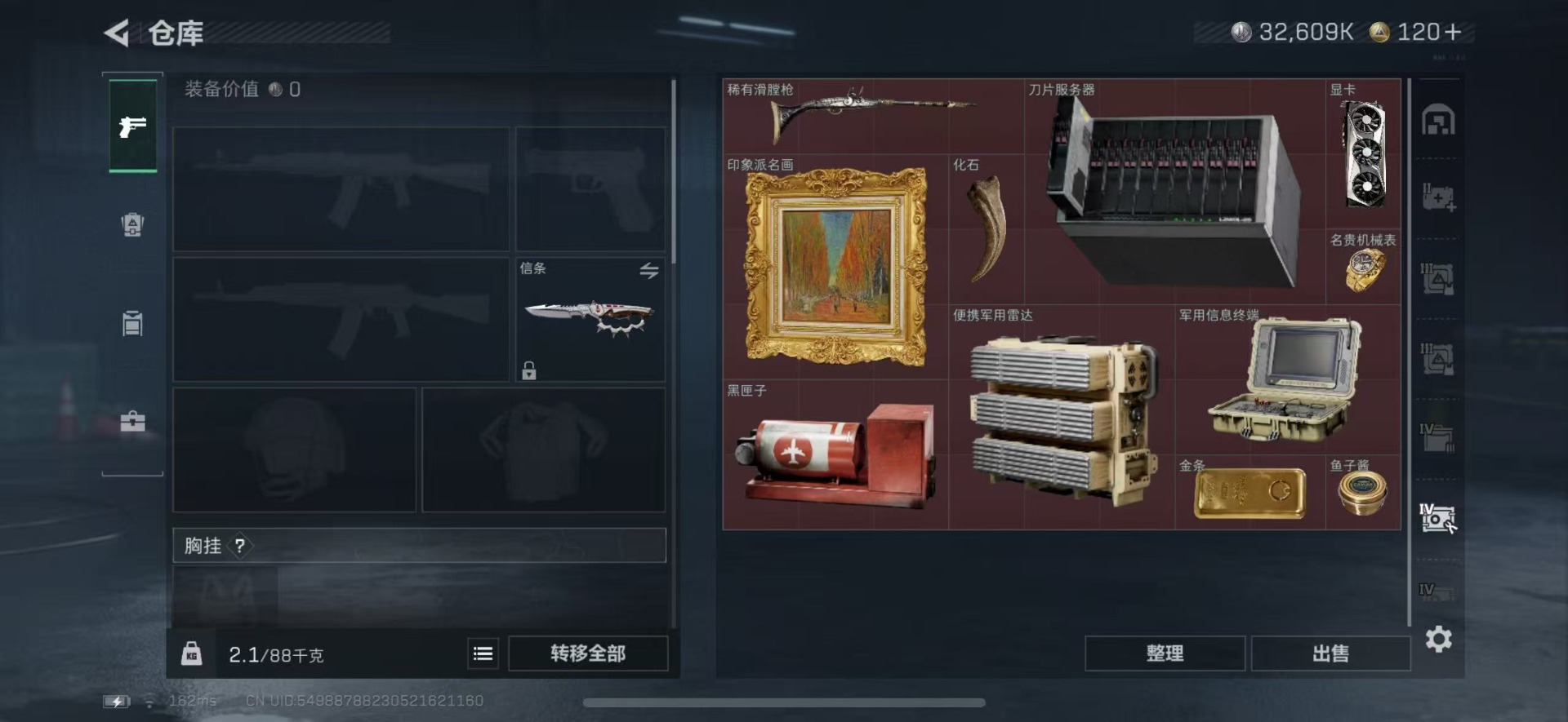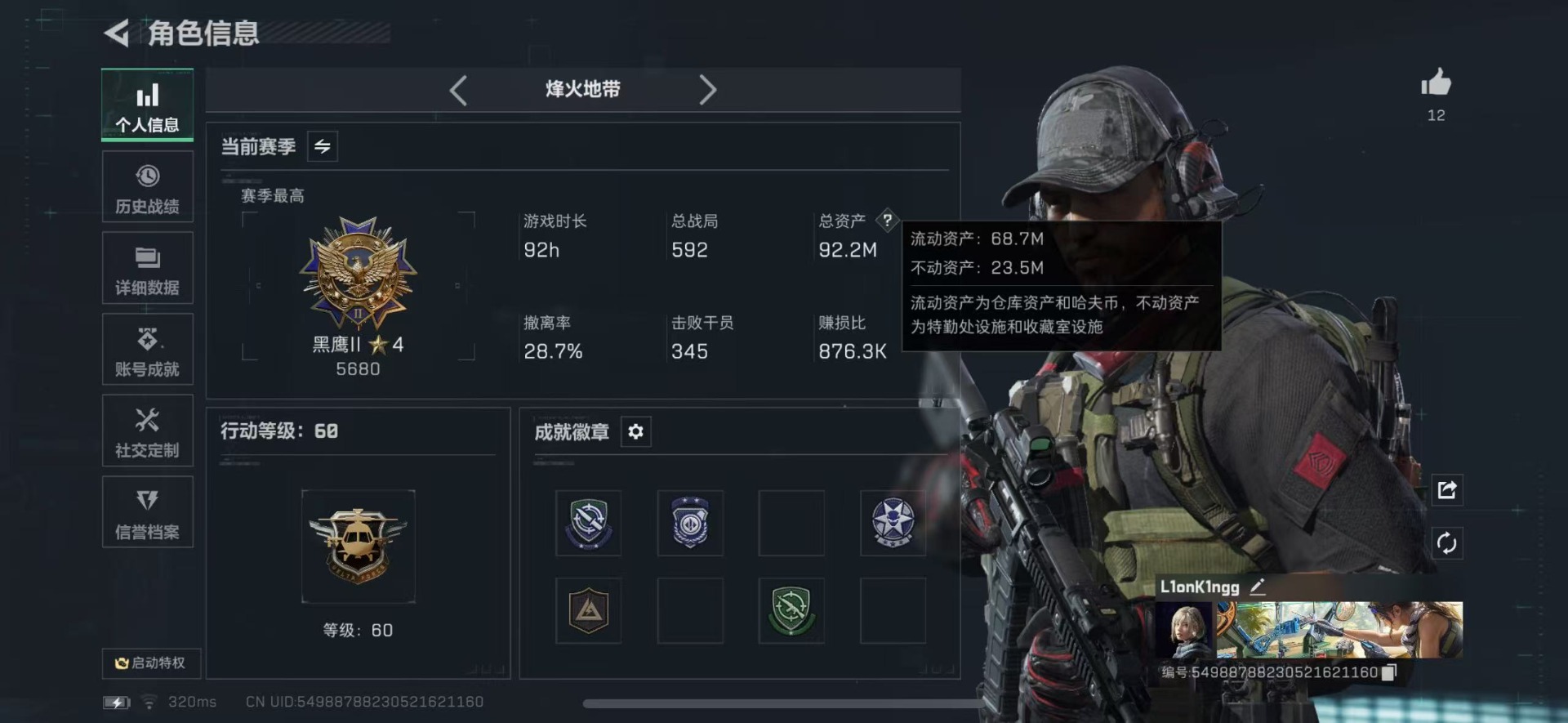 总资产:92.2M 2干员外观 1近战传说 7传说枪械 哈夫币:32.609K