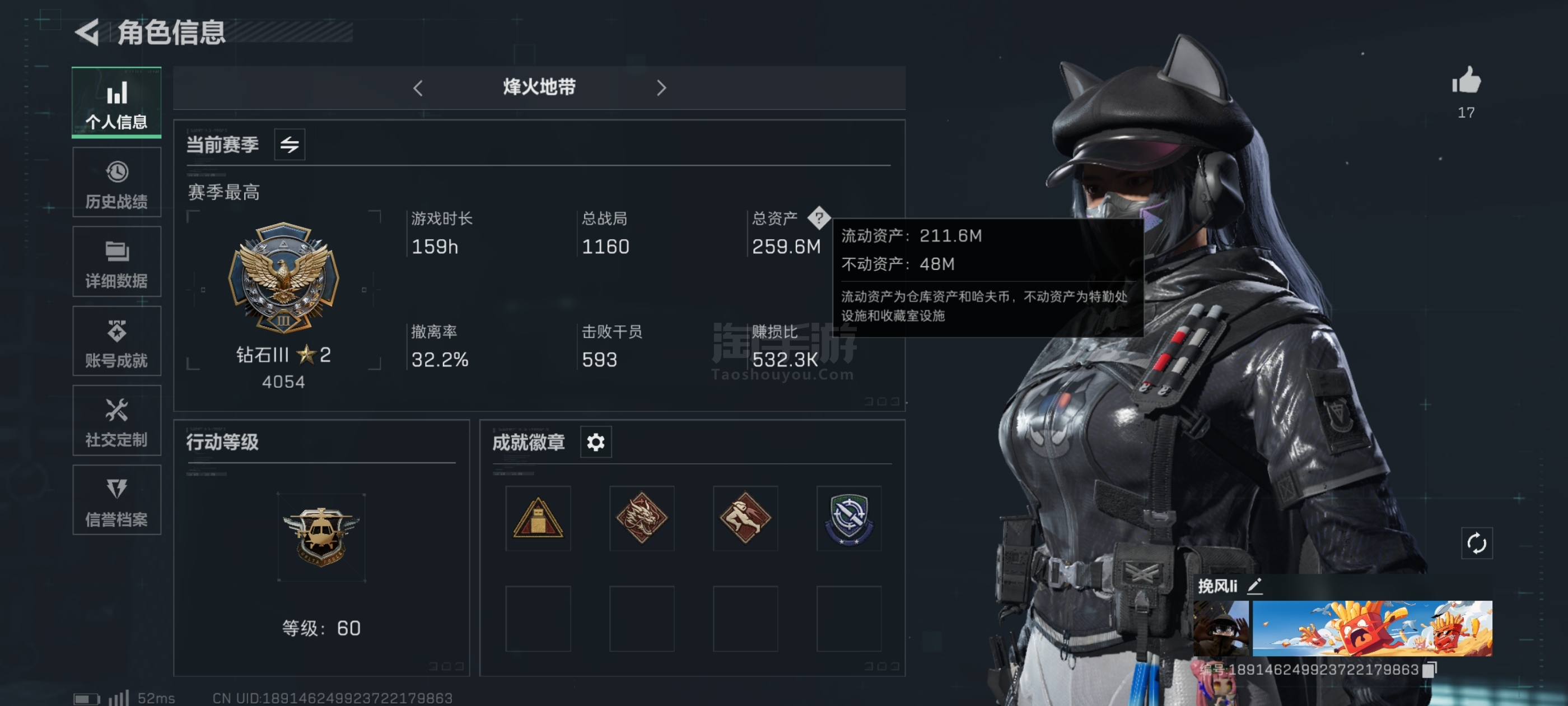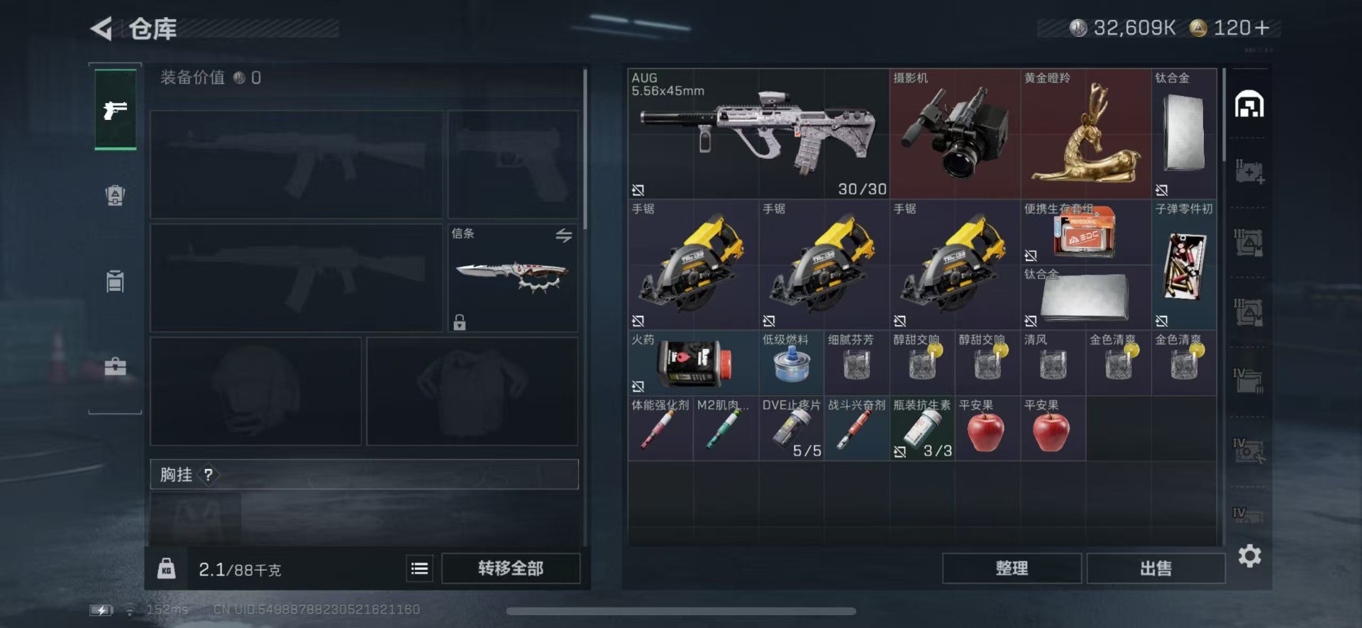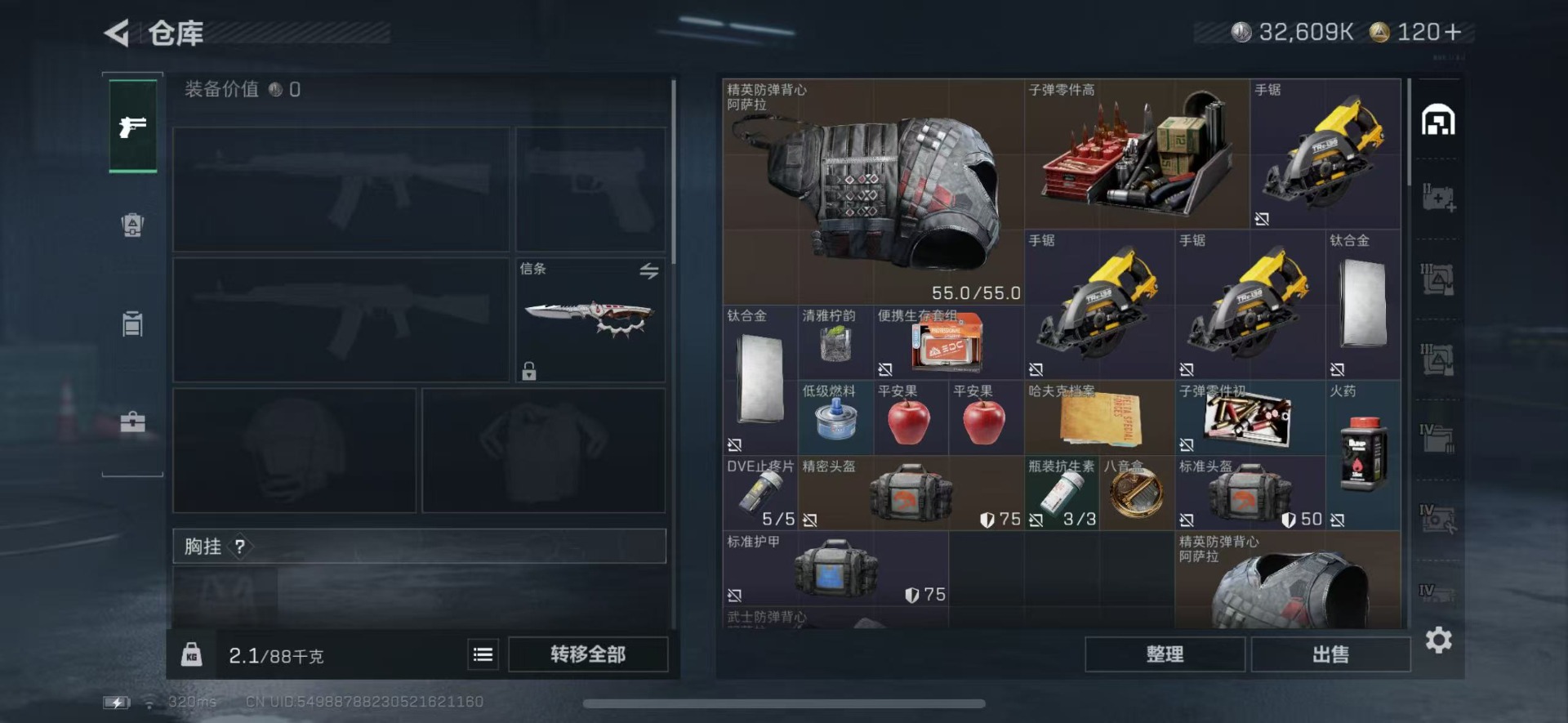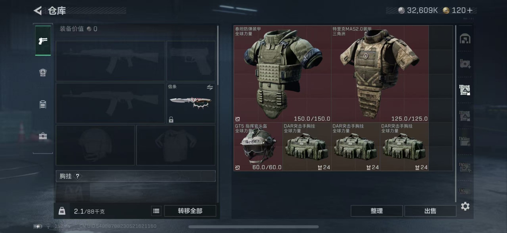 总资产:92.2M 2干员外观 1近战传说 7传说枪械 哈夫币:32.609K