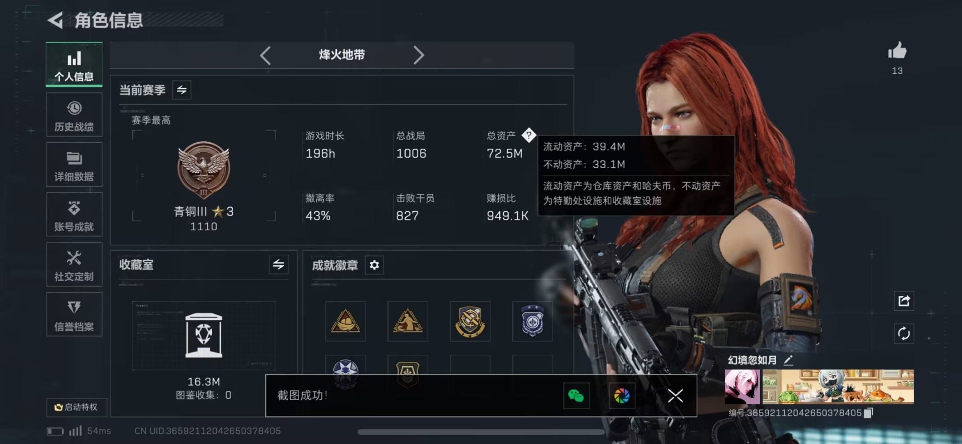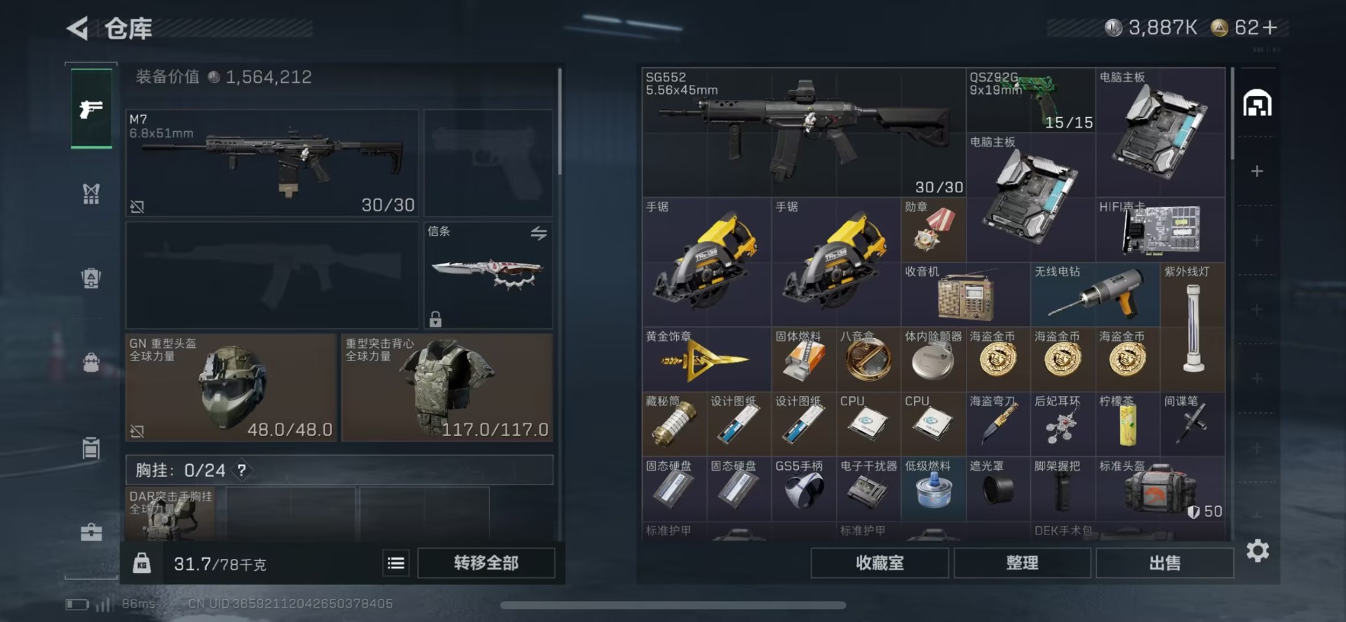 总资产:72.5M 1近战传说 2传说枪械 哈夫币:3.887