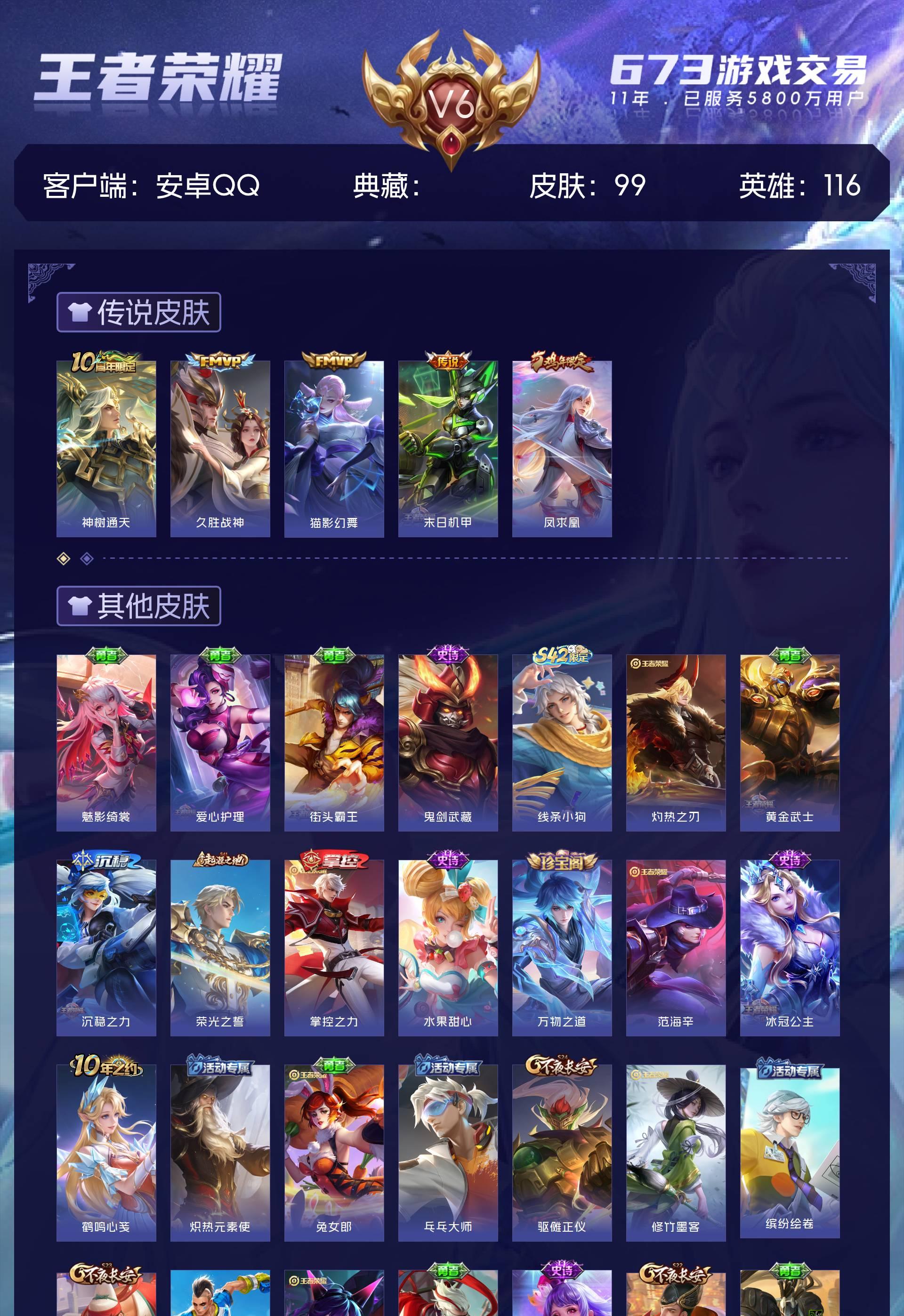 V6 皮肤99 英雄116 永恒钻石 传说5 其他皮肤100