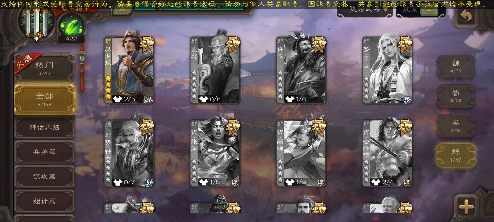 史诗武将数量: