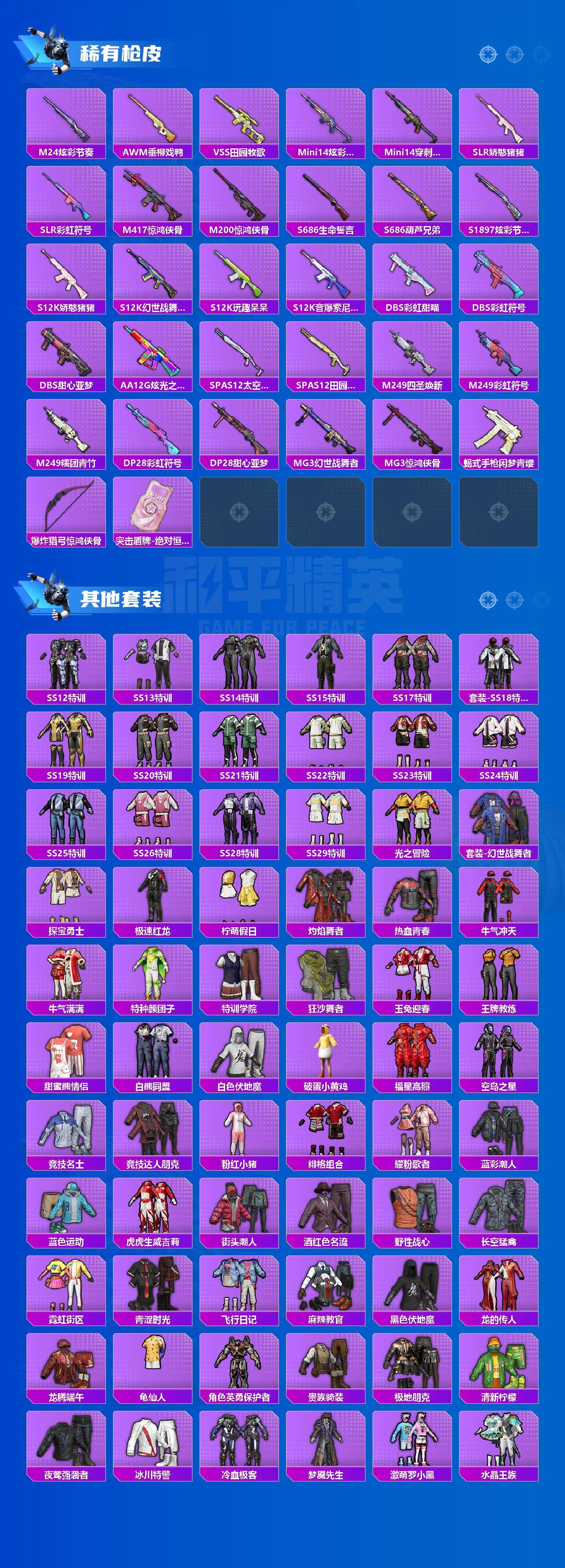 【粉色枪皮等级】:SCAR-L-青春物语(七级),M416-五爪金龙(七级),Kar98K-巳巳如意(二级),M249-绝对恒星(五级)