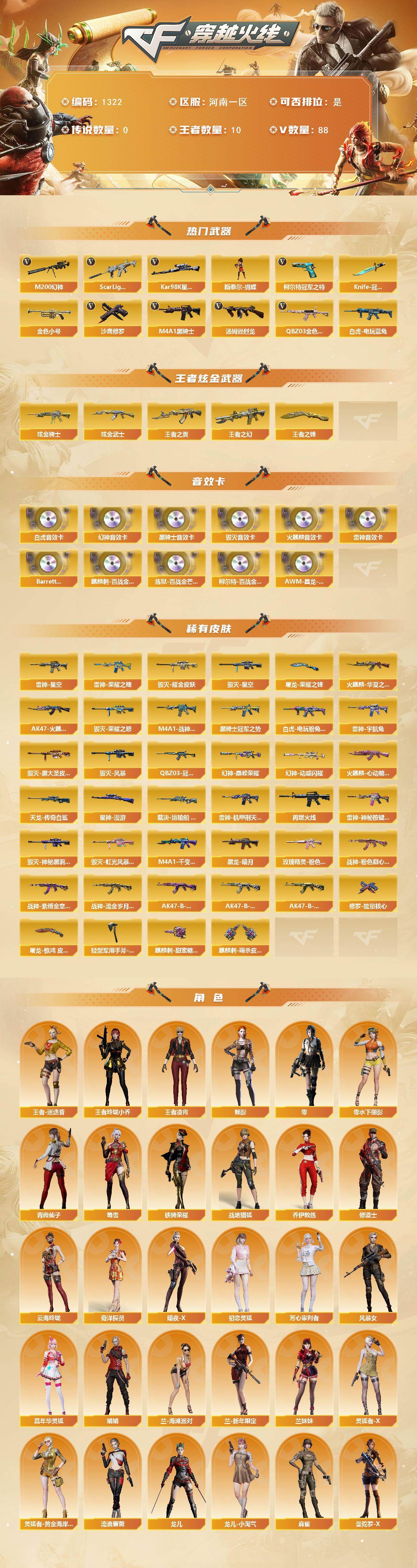 河南一区-88V-10王者-2炫金【热门武器】:QBZ03-金色蔷薇,Sca