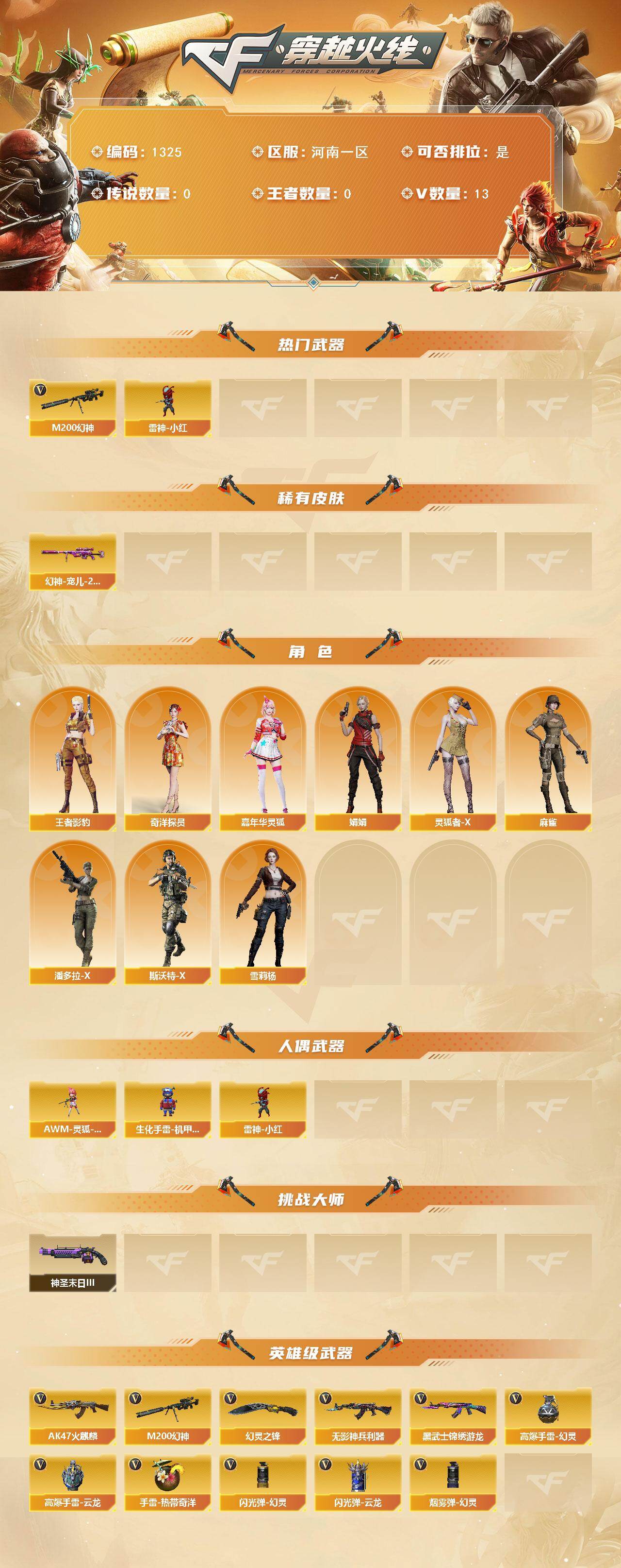 河南一区-13V-0王者-0炫金【热门武器】:M200-幻神,雷神-小红【