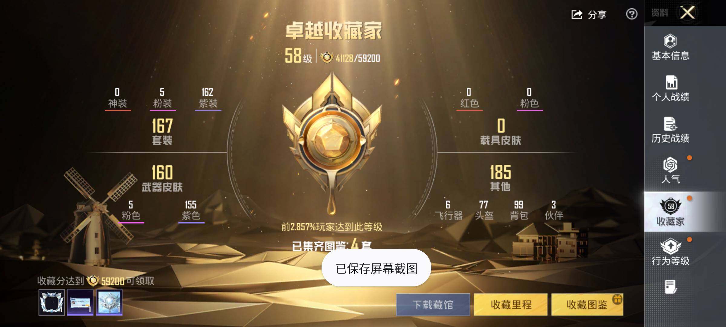 【A775】安卓【小号/5粉装-5满特效枪-1粉色飞行器】 手Q--57010热力值-8王牌印记-167套装-183枪皮