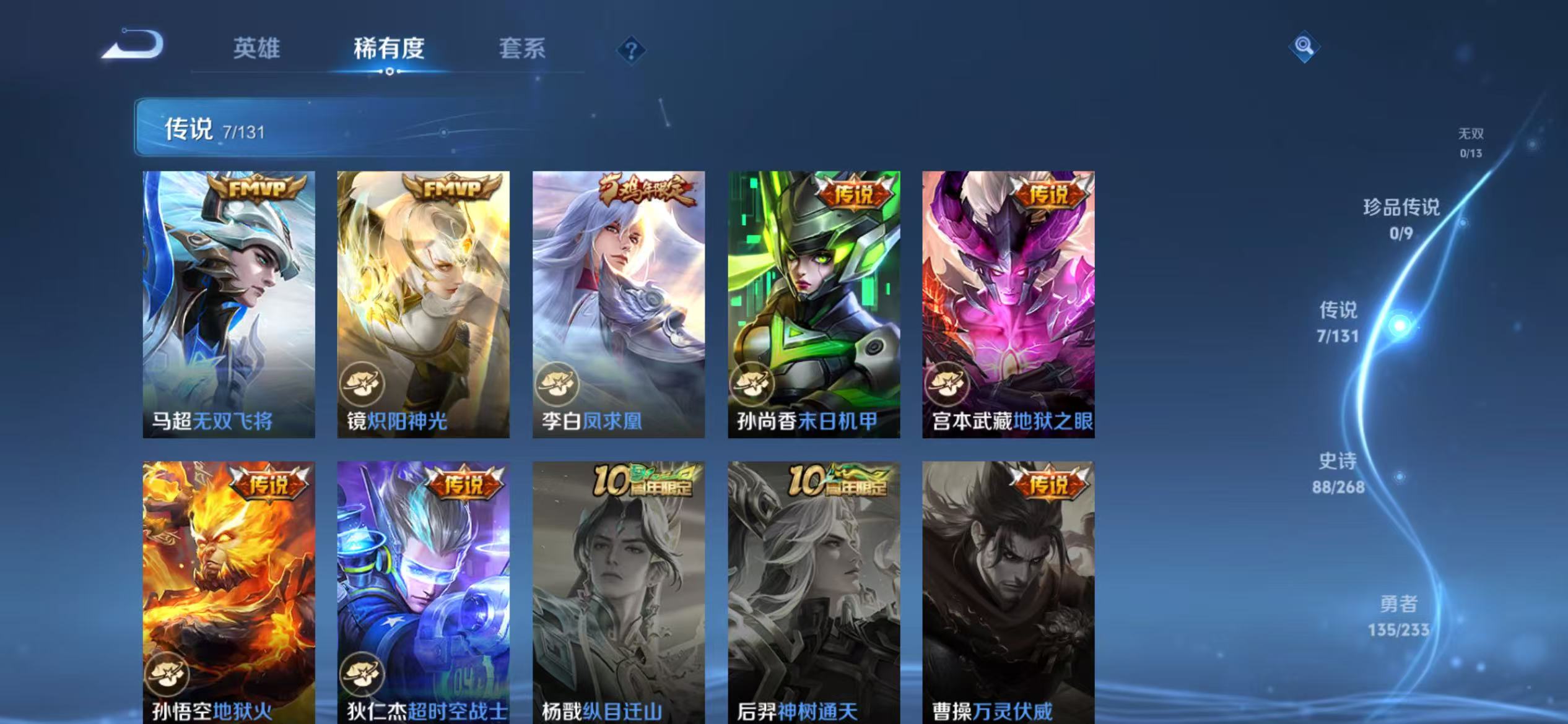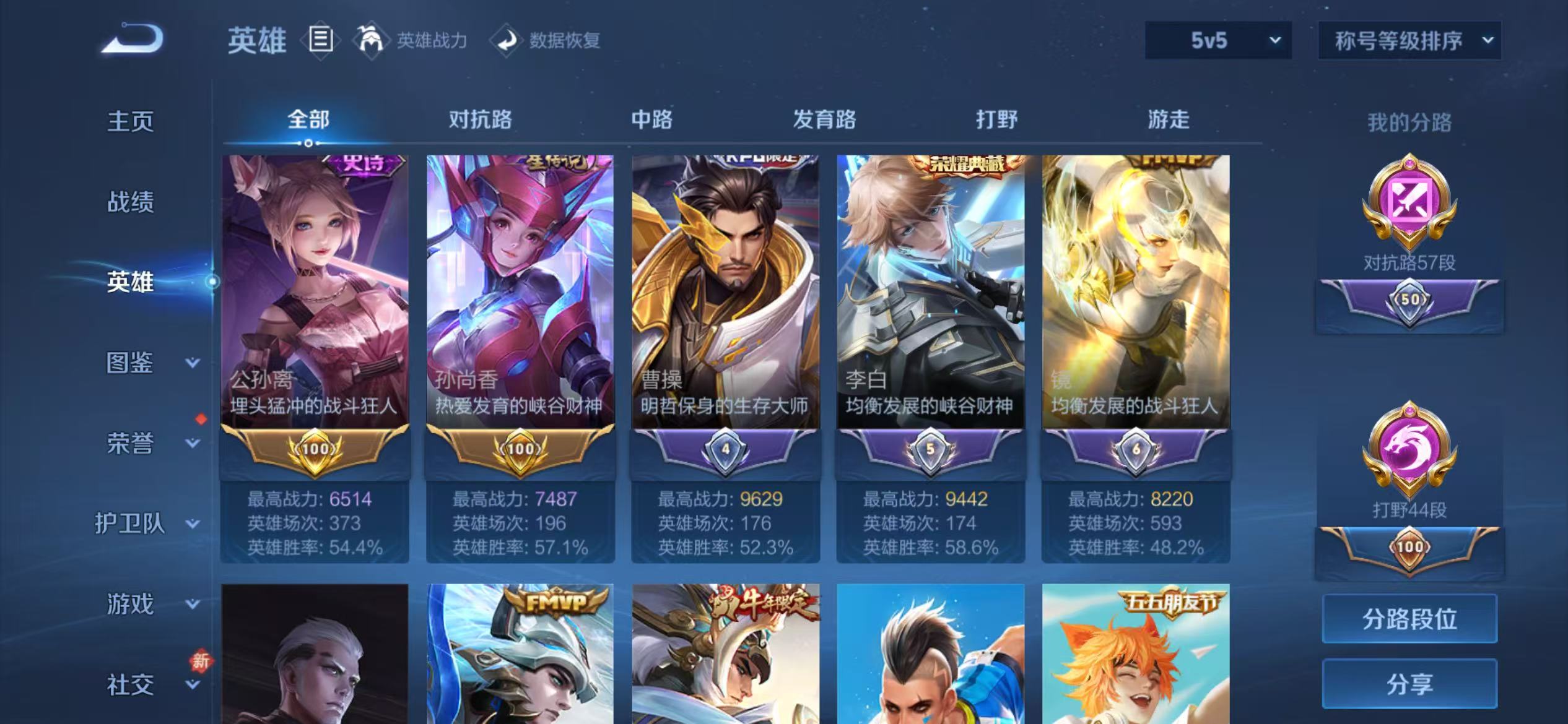 对抗路57段7金标 309皮肤1水晶3星元7传说