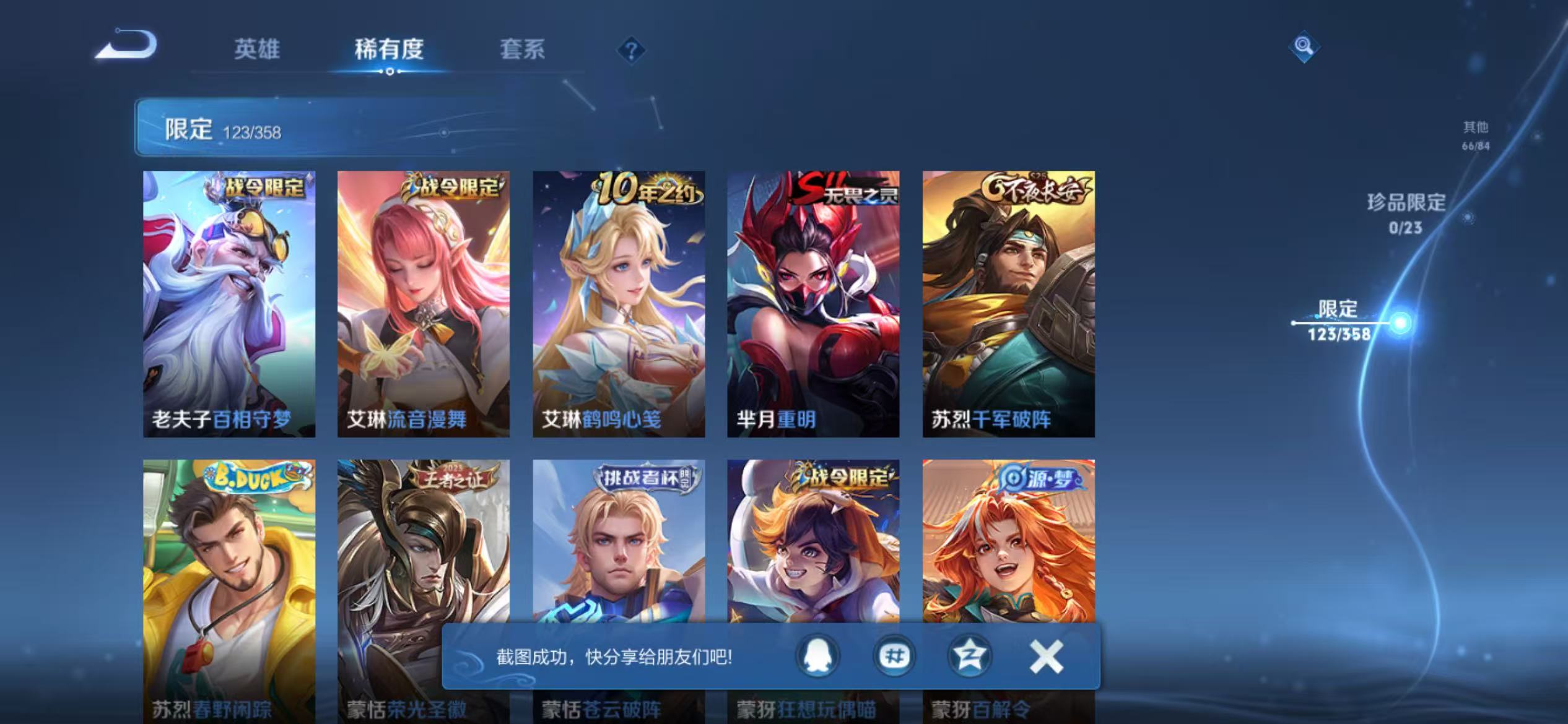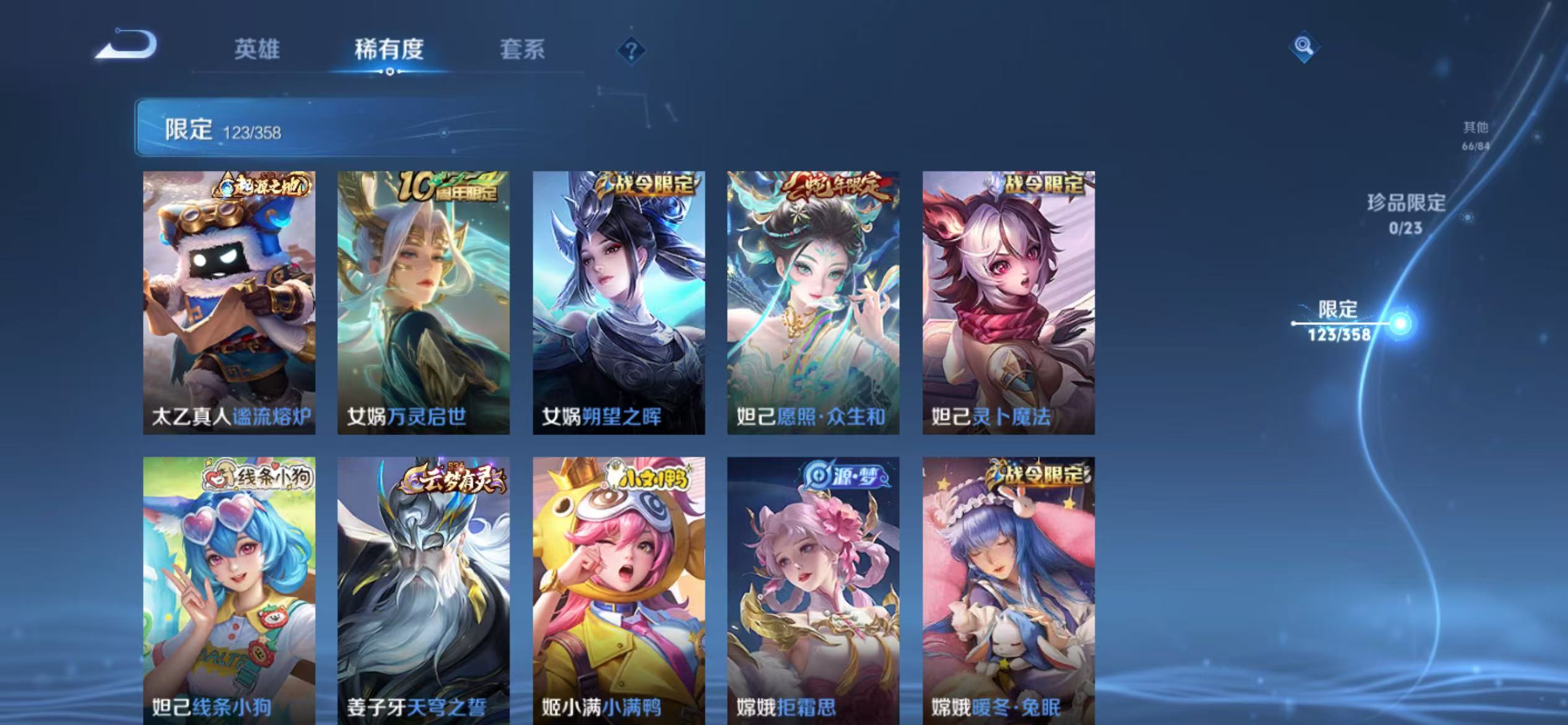 可二次 342皮肤1水晶3星元1天幕8传说 -128英雄