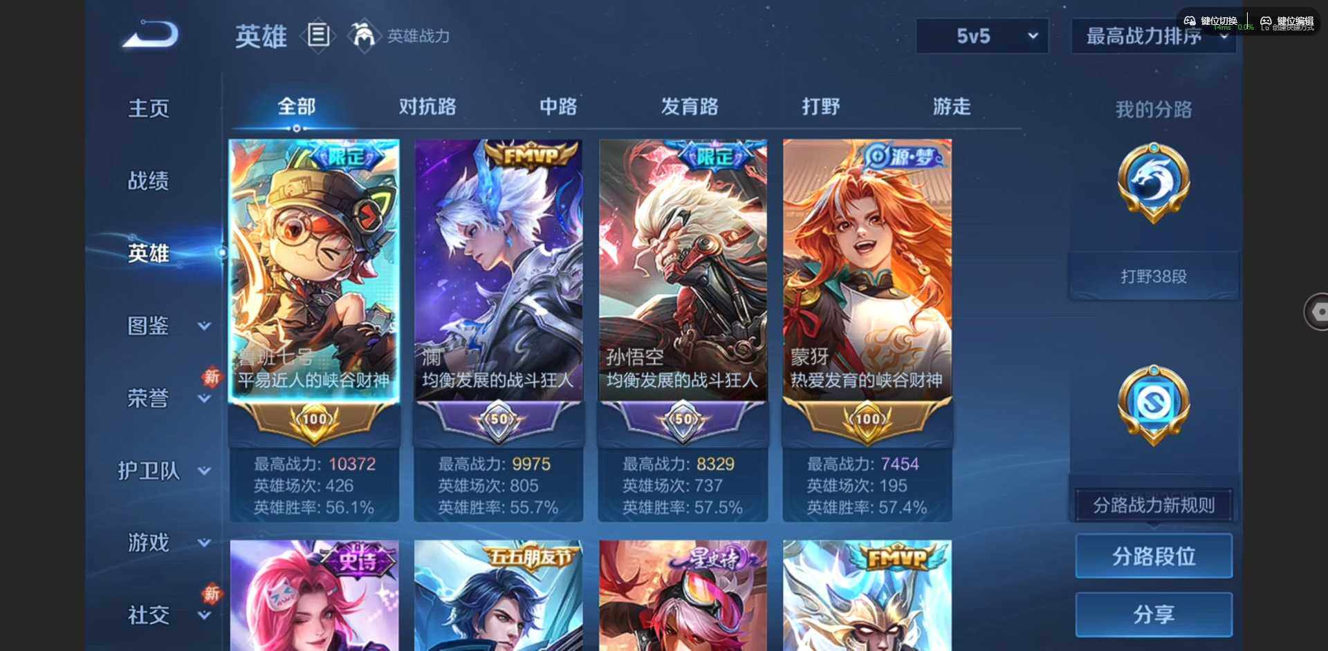 【澜全皮 金标鲁班七号 金标蒙犽】实名: 可修改 贵族等级: V8 英雄数: