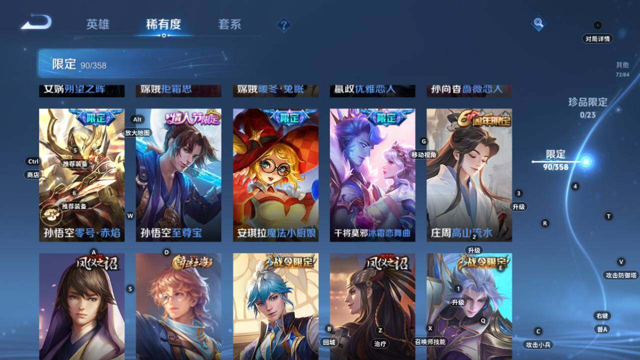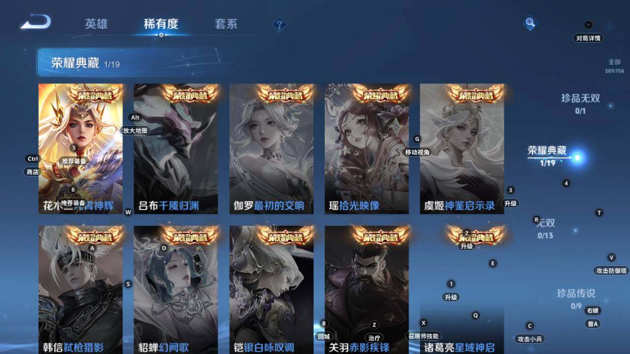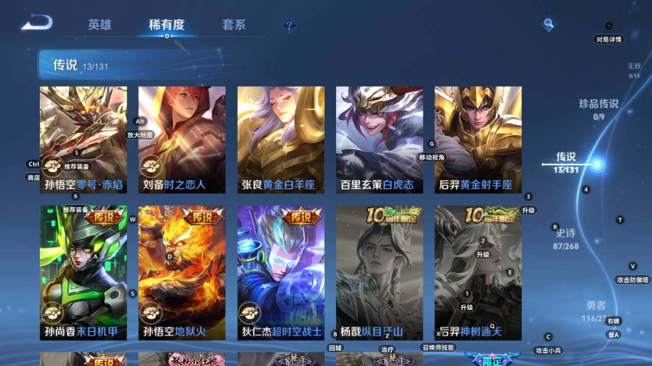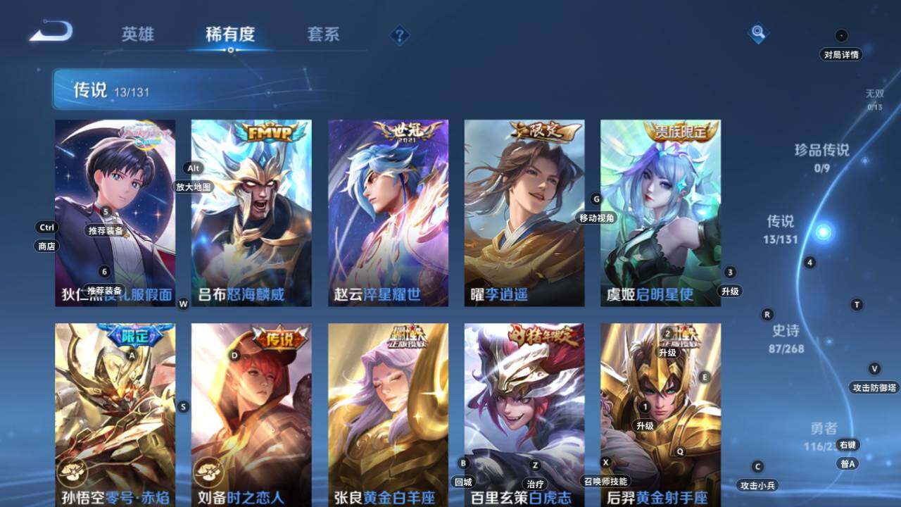 有至尊宝,1星传说,5按键,,苹果Q-V8--122英雄-289皮肤-1典藏皮肤-13传说-87史诗