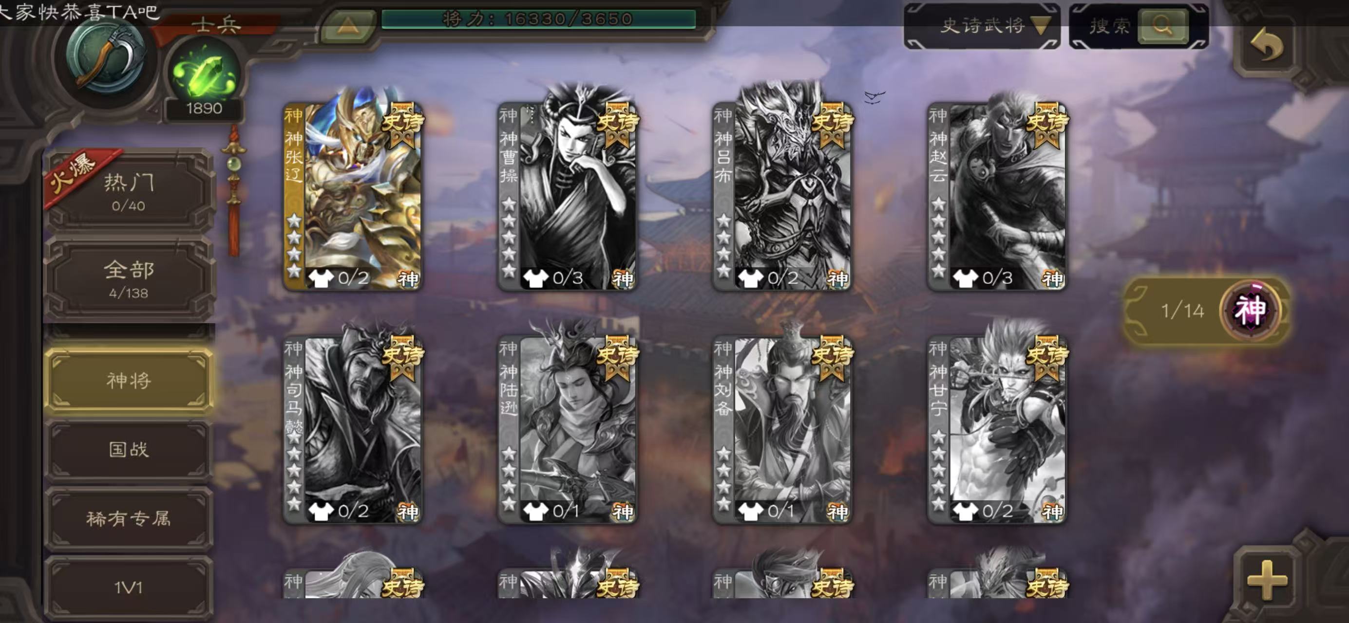 史诗武将数量: