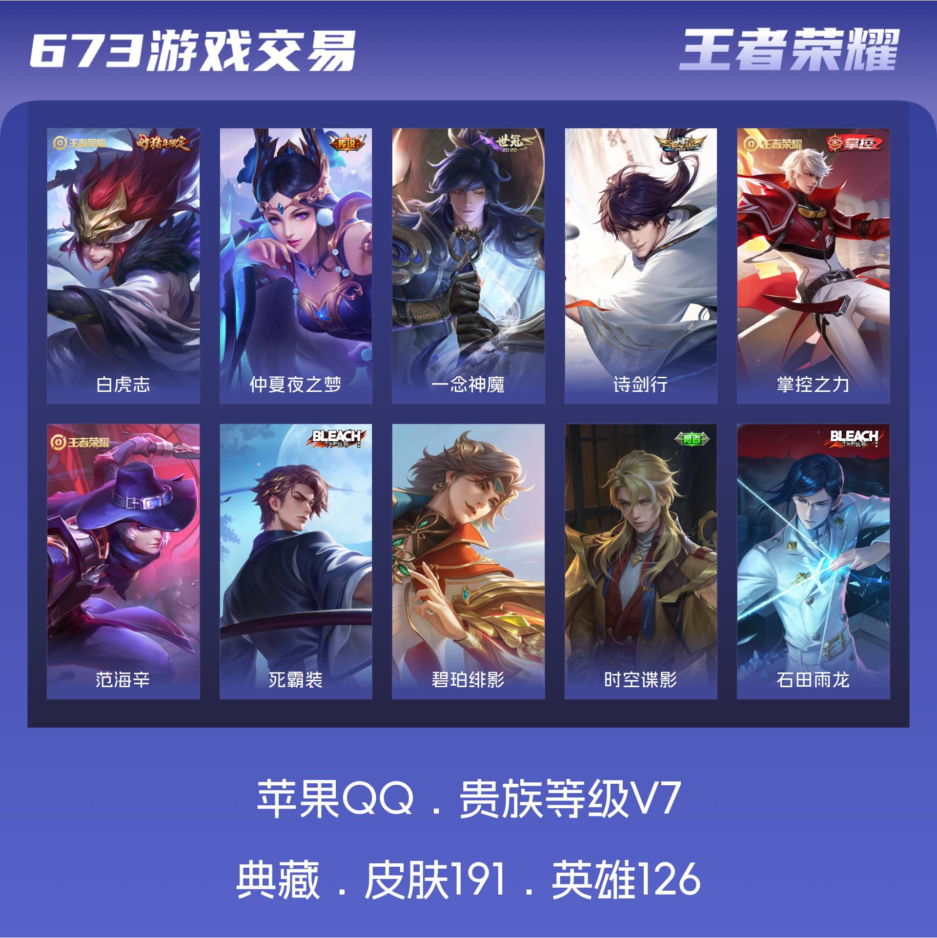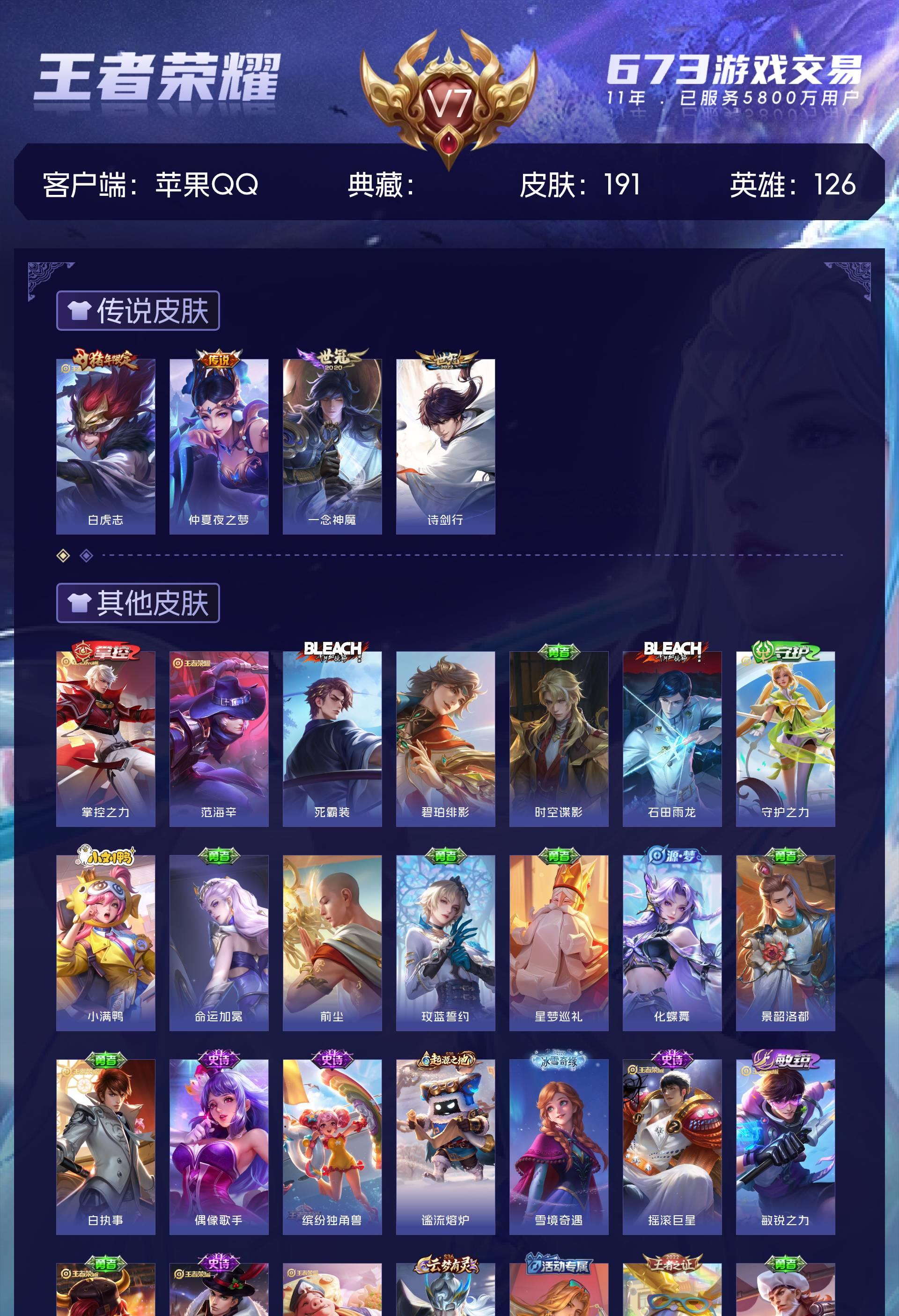 V7 皮肤191 英雄126 荣耀黄金 星传说1 传说4 其他皮肤193