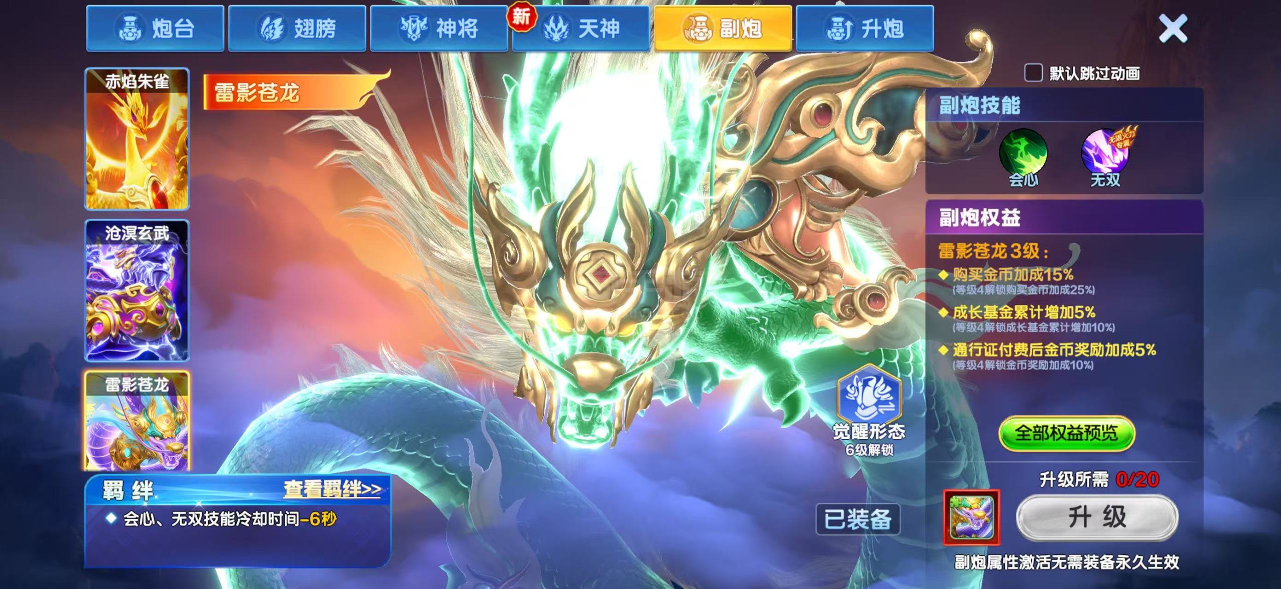 文字号S1,准S2,三副炮,三套暴击羁绊,800天大月卡