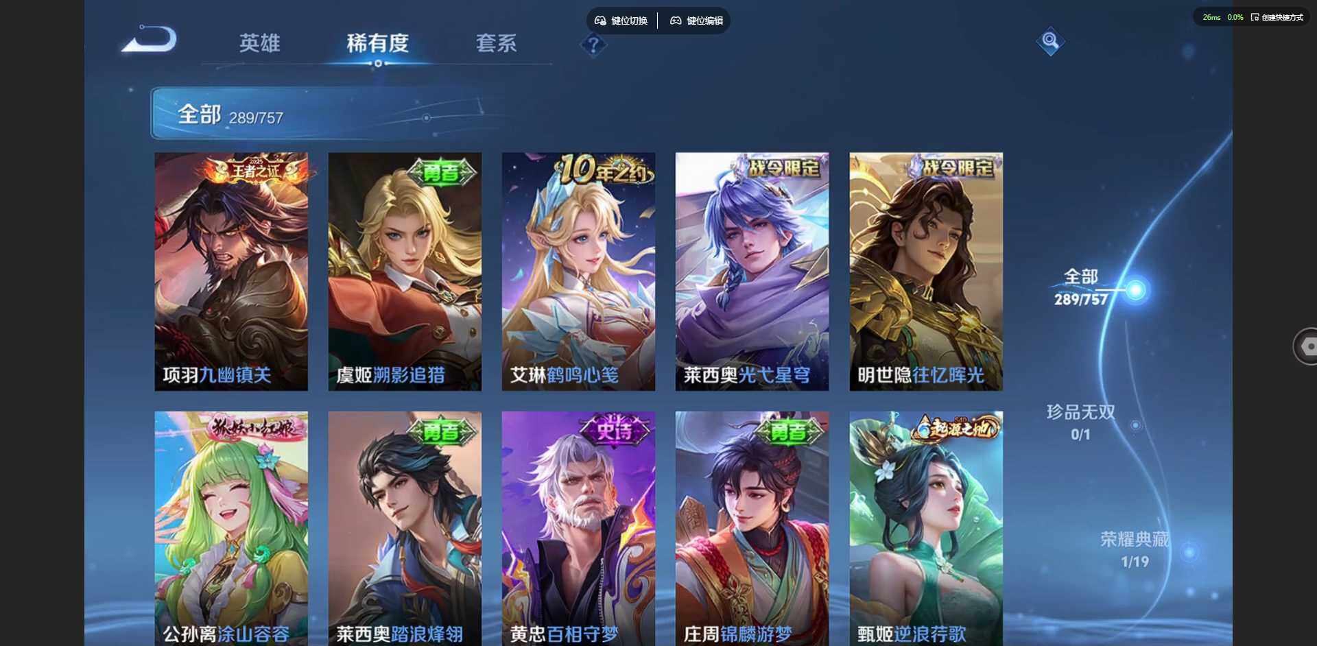 【金标百里玄策 金标裴擒虎 金标云中君 金标韩信 金标司马懿】实名: 可修改 贵族等级: V8 英雄数: 127 皮肤数: 289 荣耀水晶: 神鉴启示录 珍品传说: 器灵·落星盏 星传说: 未来机甲,幽冥之眼,星际治安官 传说皮: 久胜战神,炽阳神光,地狱之眼,超时空战士-狄仁杰,幻光神枪 限定皮: 遇见飞天,李小龙,游园惊梦,梁祝,奇迹圣诞,飞衡,青春决赛季,天狼