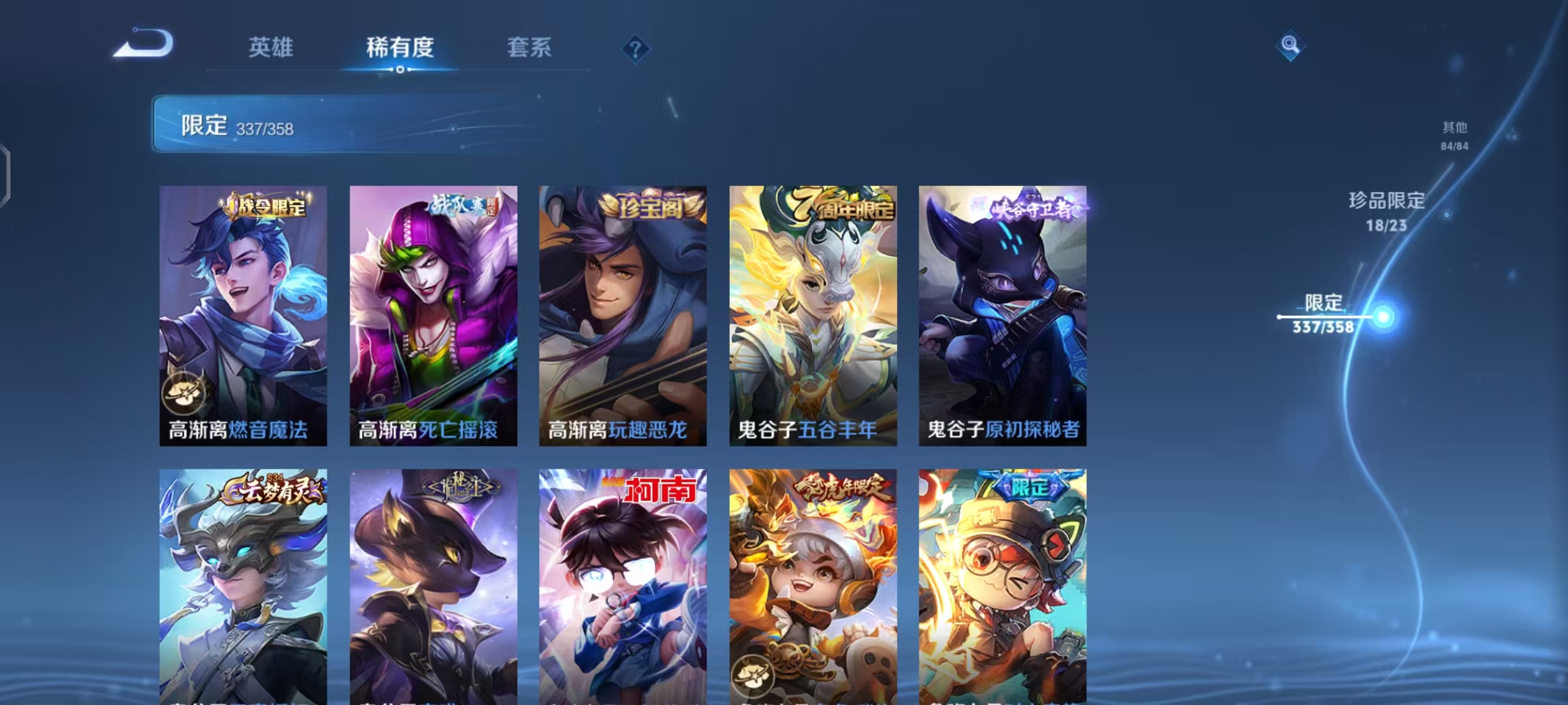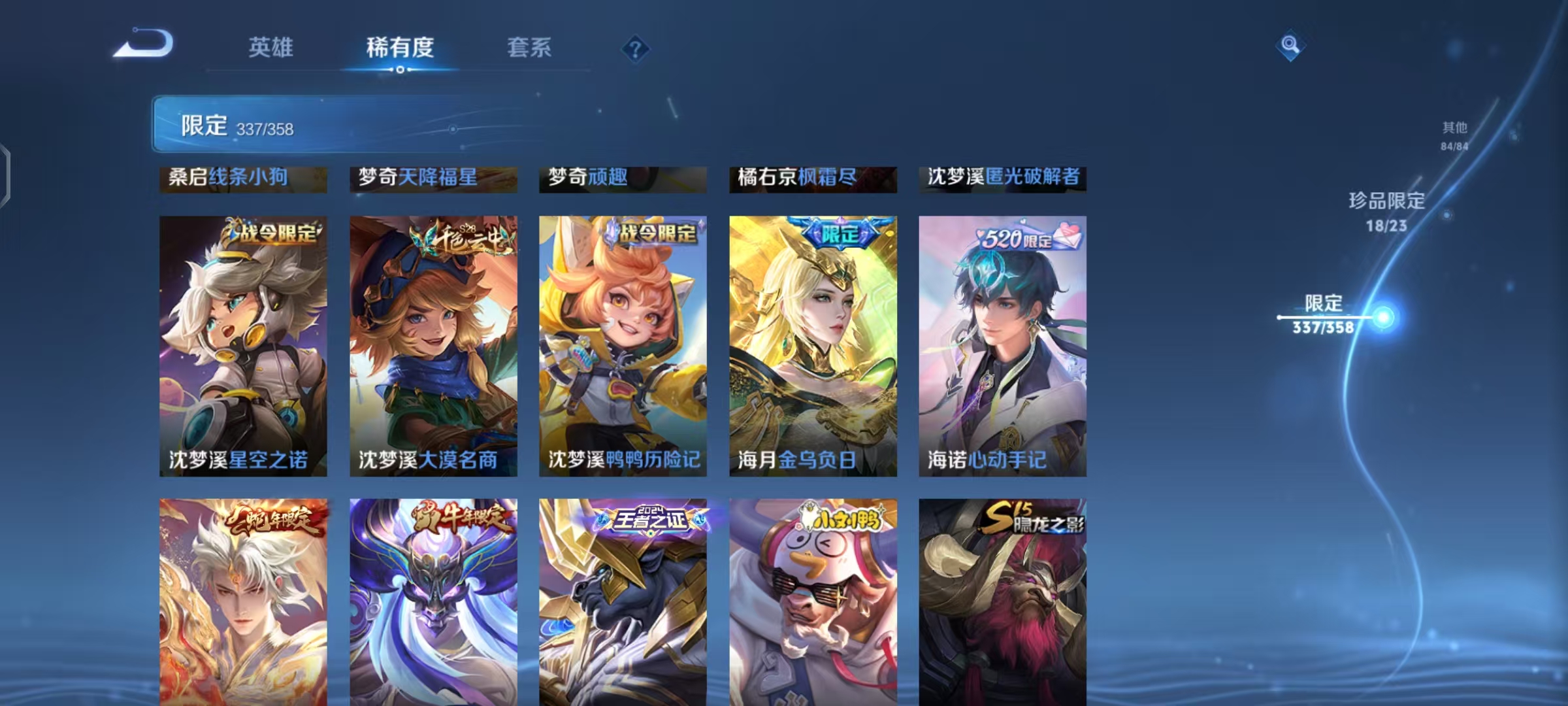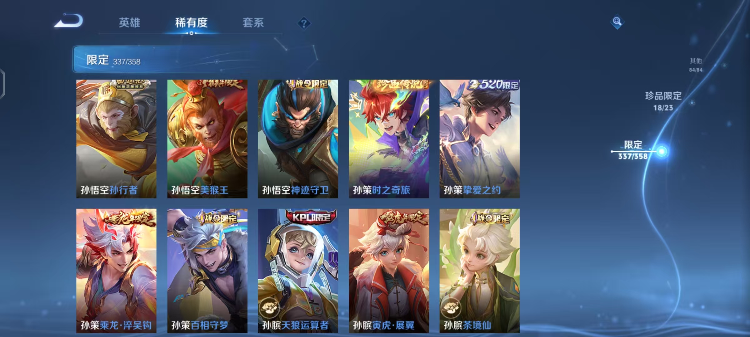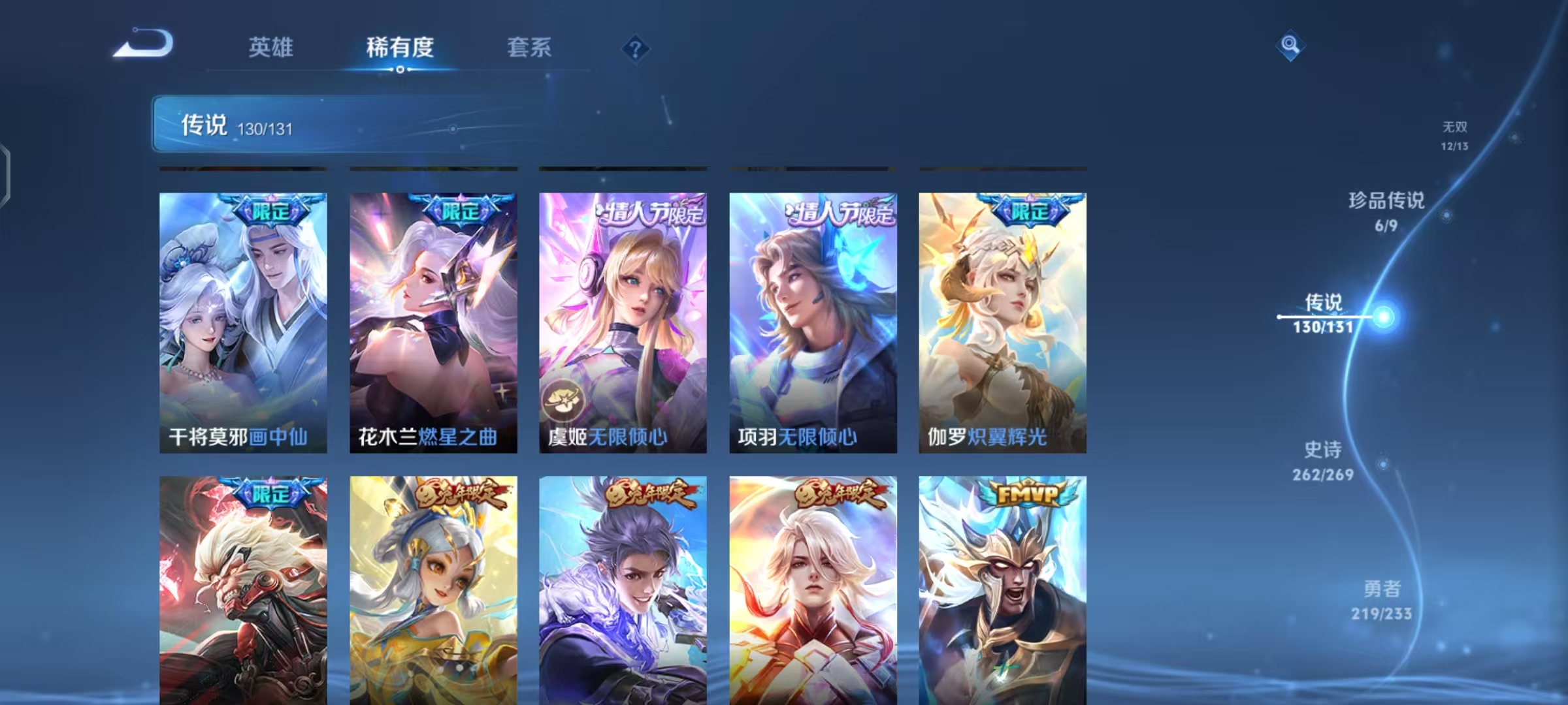 无双V10 8小国731皮肤19水晶12无双13星元6珍品131传说发育路72段中路58段17天幕15金标2小兵263按键