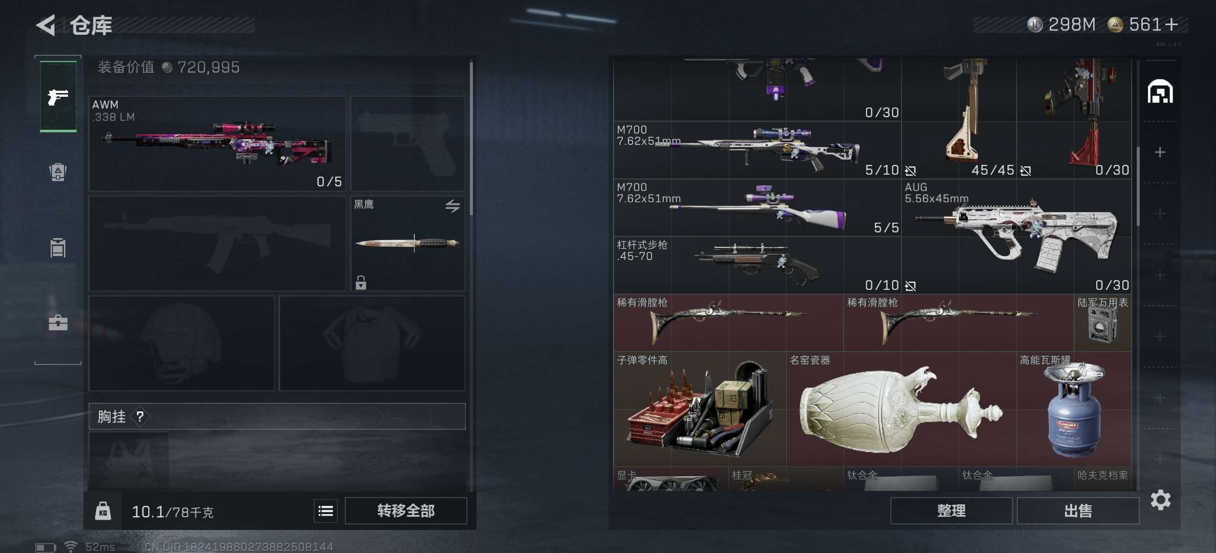 还有一些零散的枪皮几个金 纯哈夫币号 还有些许大金 有10来发aw子弹 还有充值卷564