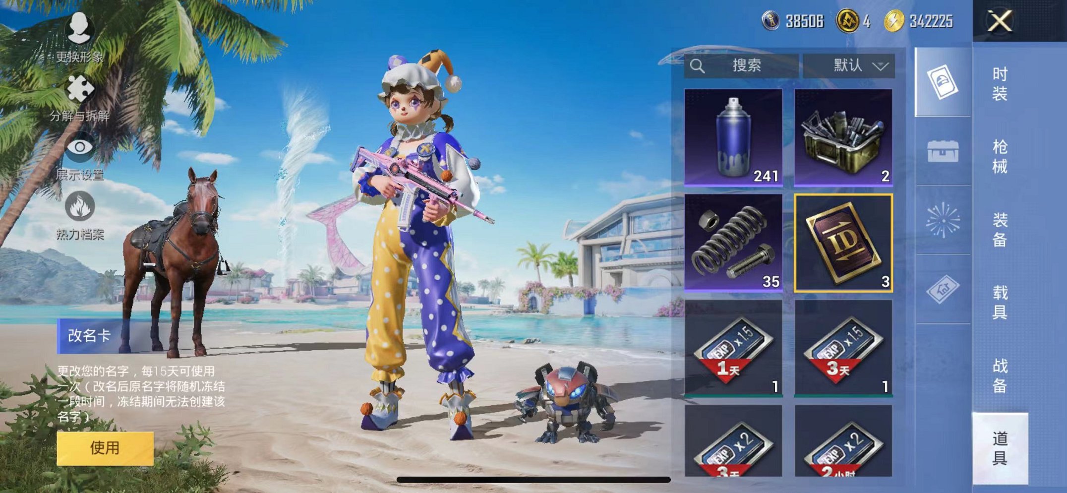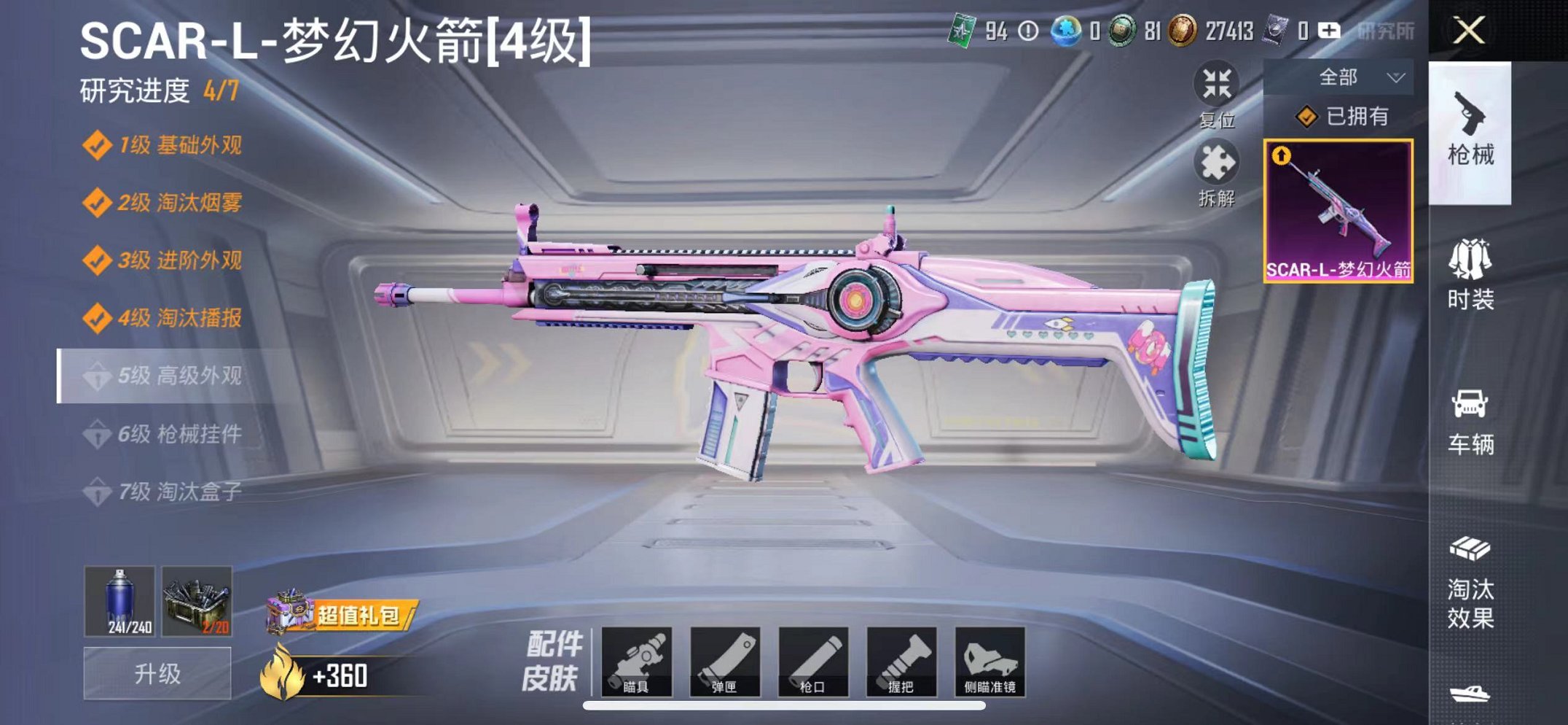 梦幻火箭3载具7粉装1特效枪可秒换绑
