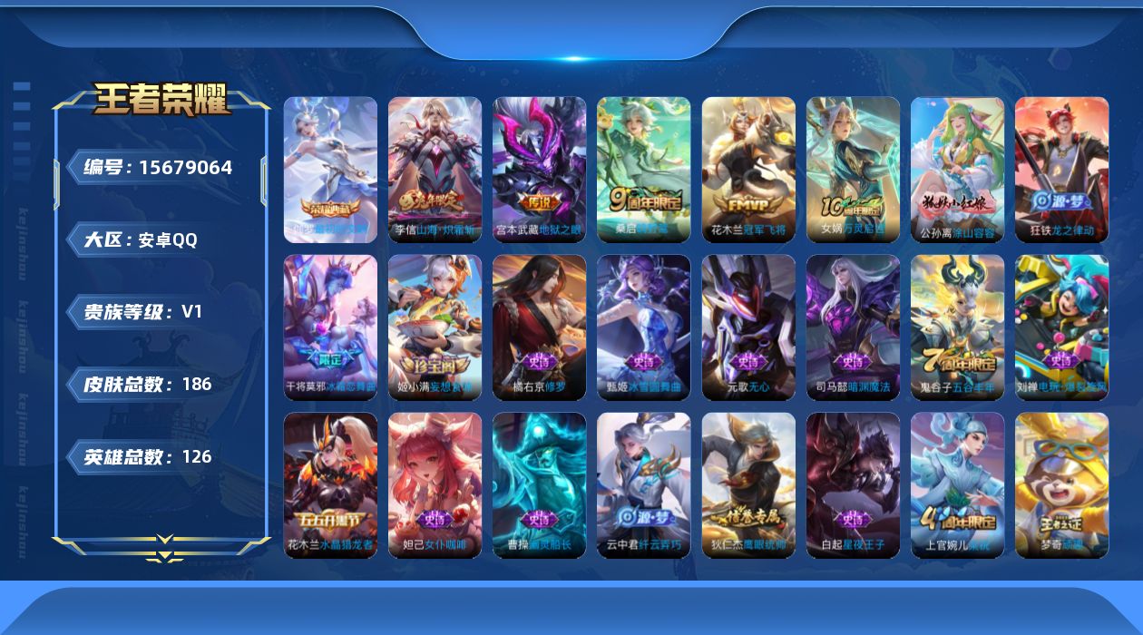 773-[15679064]安卓手Q294区186皮1典藏4传说0无双V1 营地ID97917864永恒钻石V【荣耀典藏】:最初的交响【优质限定皮肤】:山海·炽霜斩【传说皮肤】:地狱之眼,冠军飞将,鸣野蒿,山海·炽霜斩【史诗皮肤】:舞动绿茵,暗渊魔法,冰冠公主,万灵启世,万物之道,涂山容容,龙之律动,星界战将,特工魅影,天才门将,圣诞恋歌,水晶猎龙者,梁祝,猫狗日记,女仆咖啡,原初追逐者,幽灵船长,妄想食味,荣光圣徽,百解令,顽趣,冰雪圆舞曲,暗隐猎兽者,江河有灵,星夜王子,电玩·爆裂旋风,逐浪