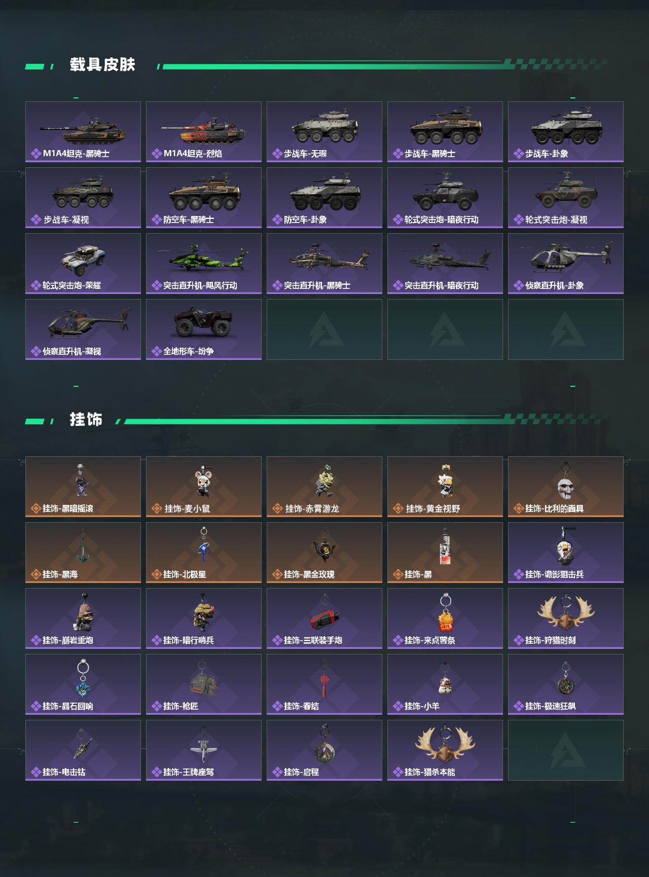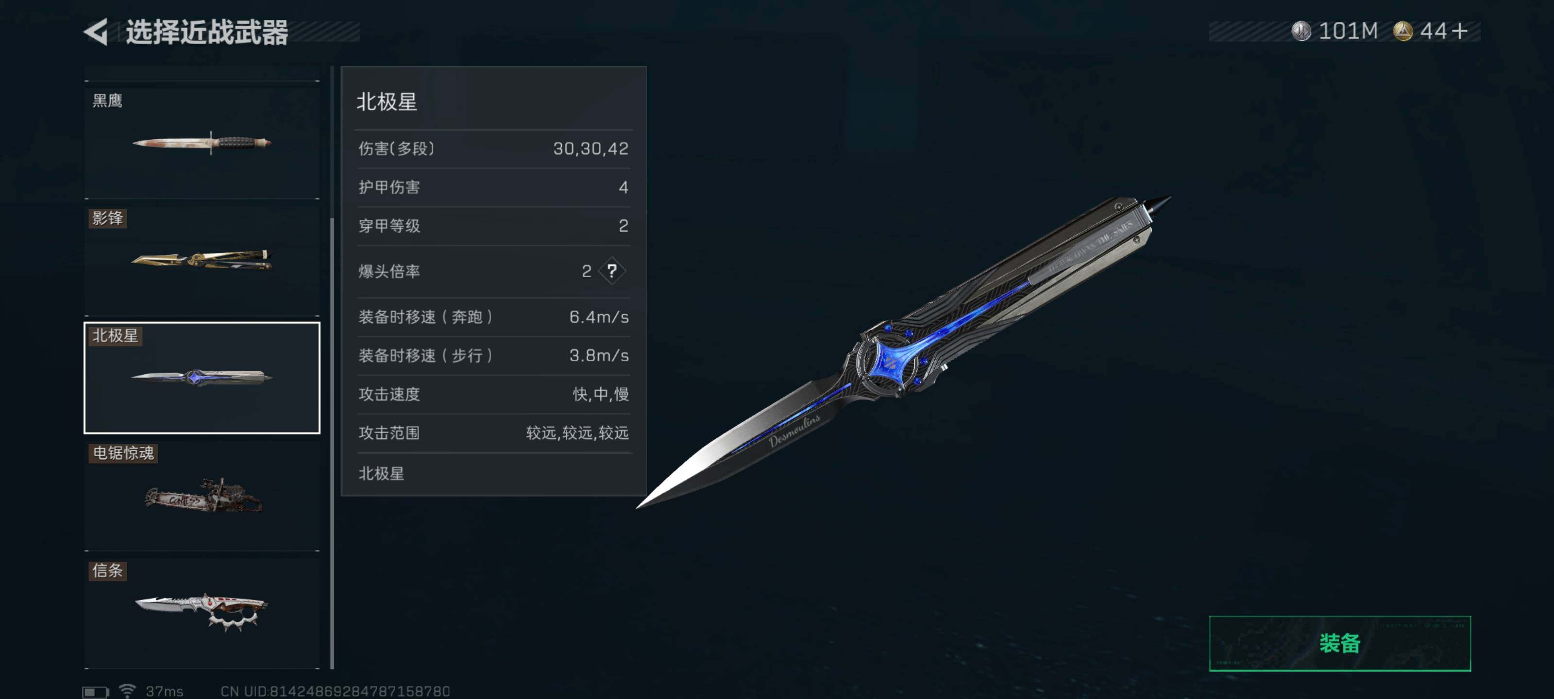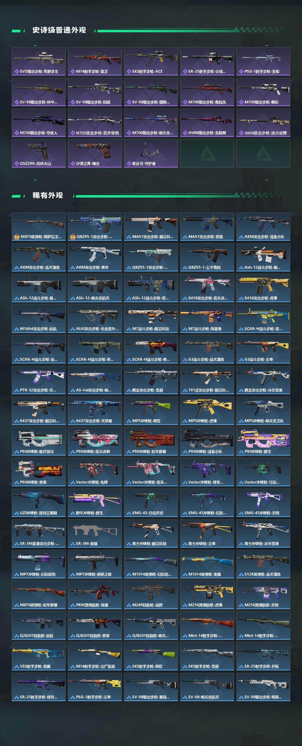 【近战皮肤】:近战-影锋,近战-黑海,近战-北极星,近战-电锯惊魂,近战-信条,近战-黑鹰