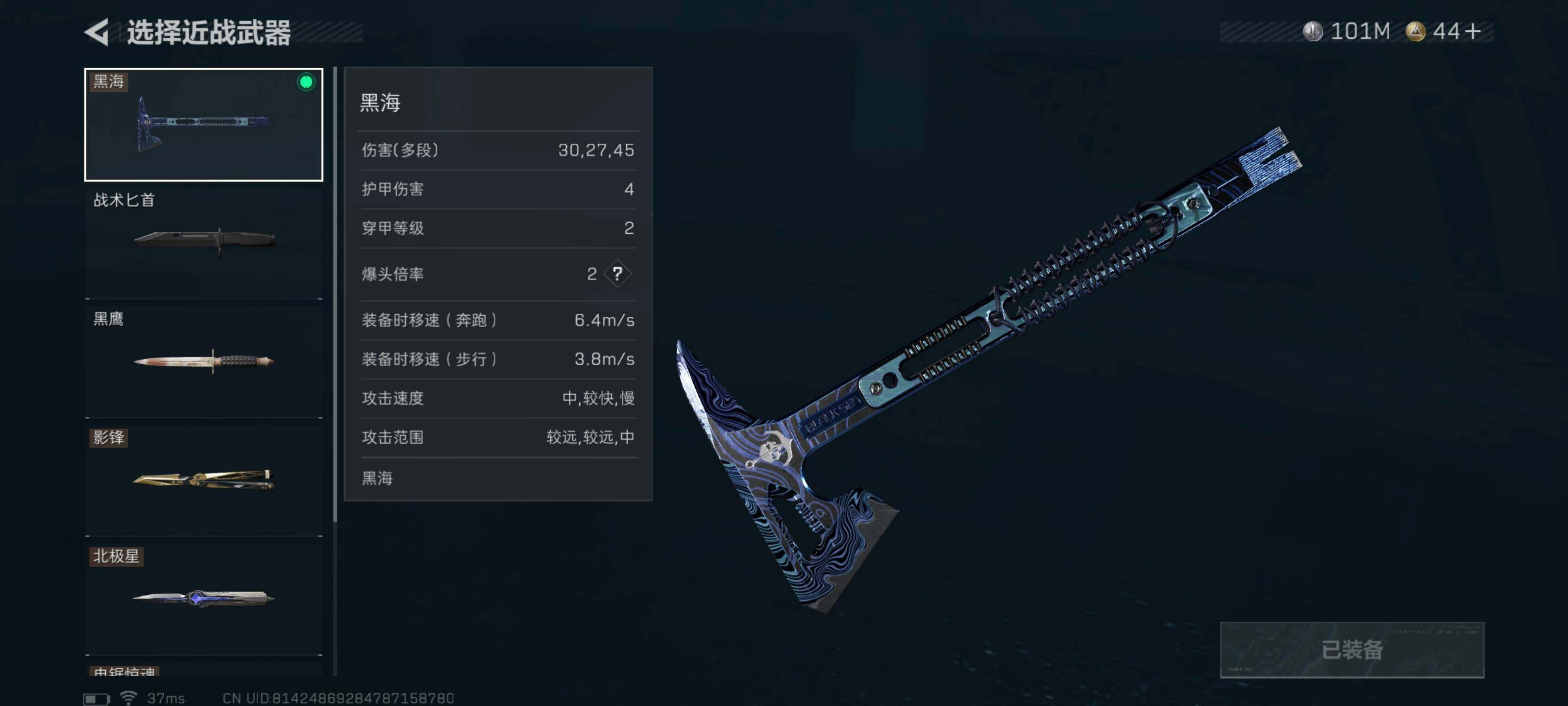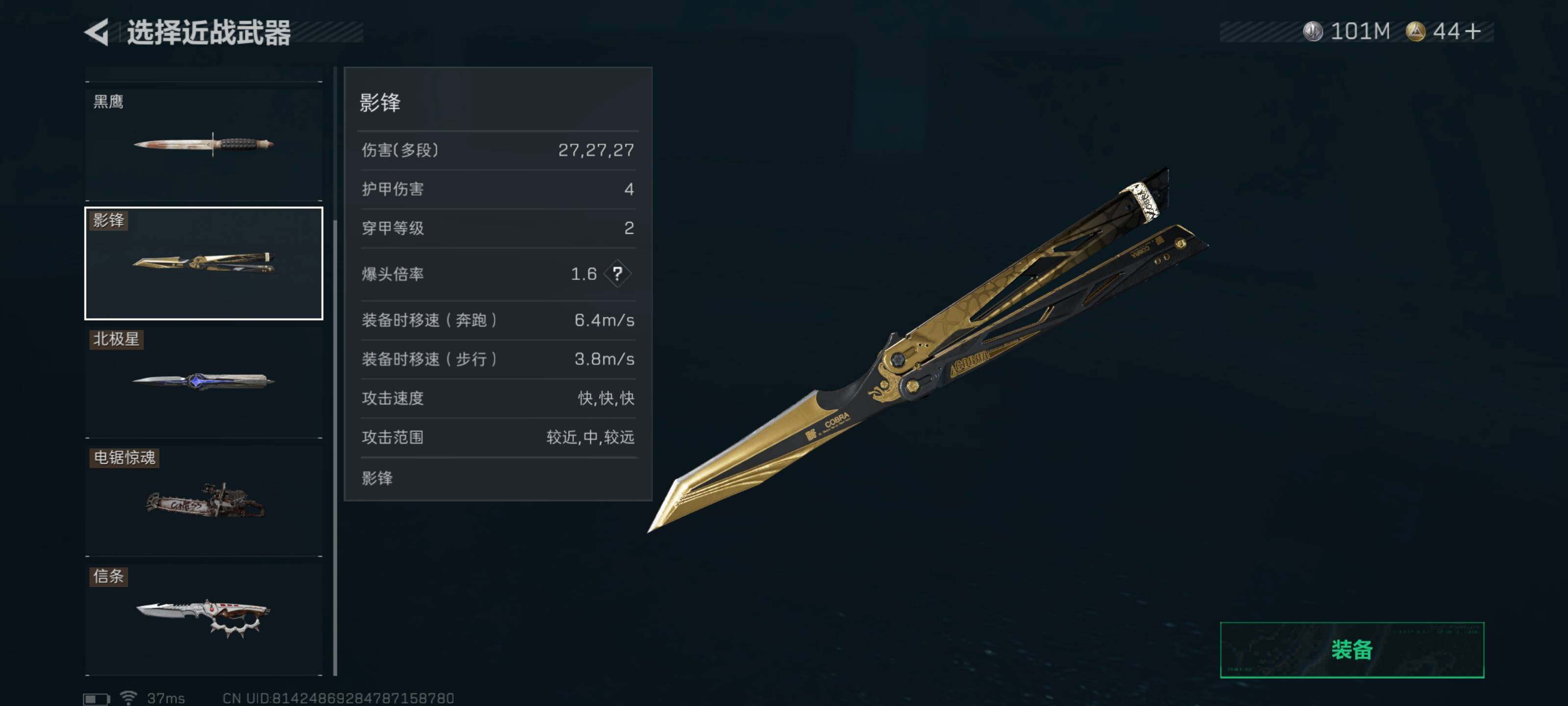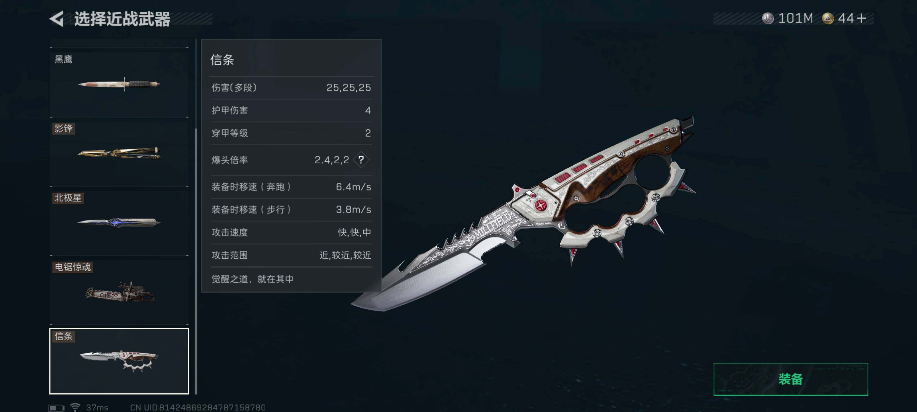 【近战皮肤】:近战-影锋,近战-黑海,近战-北极星,近战-电锯惊魂,近战-信条,近战-黑鹰
