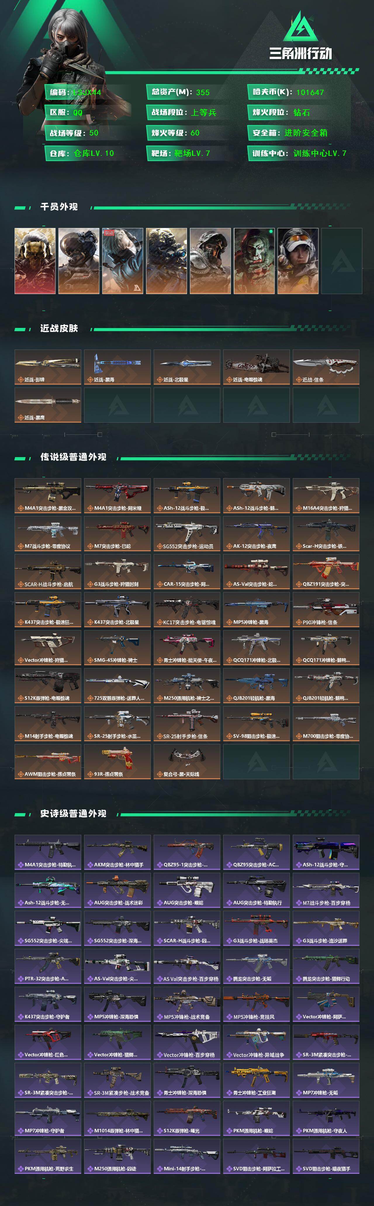 【特价出售/店主推荐】355m总资产-101647k哈伏币-60烽火等级-钻石-50战场等级-上等兵