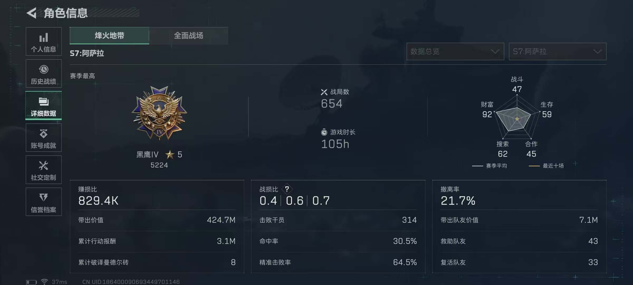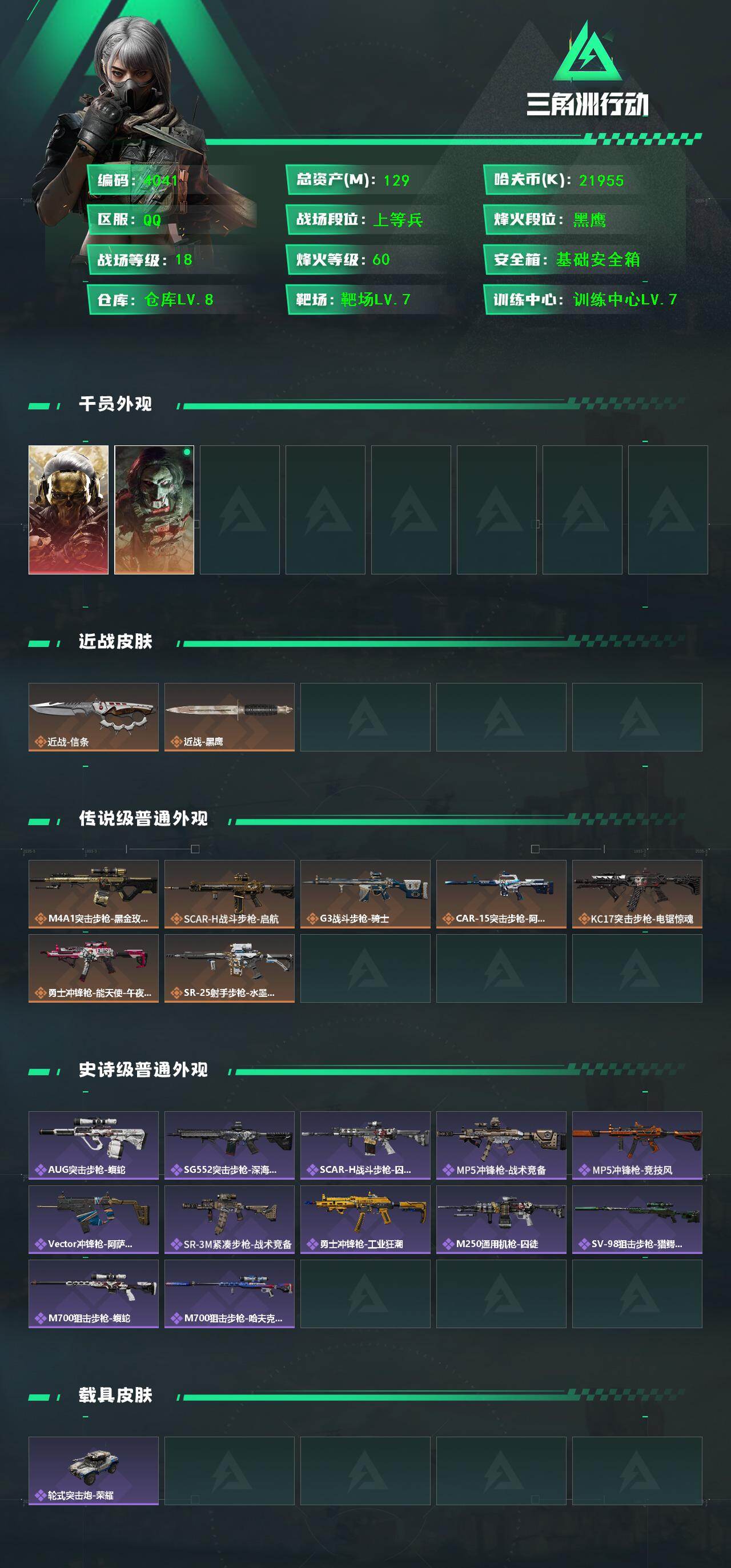 129m总资产-21955k哈伏币-60烽火等级-黑鹰-18战场等级-上等兵
