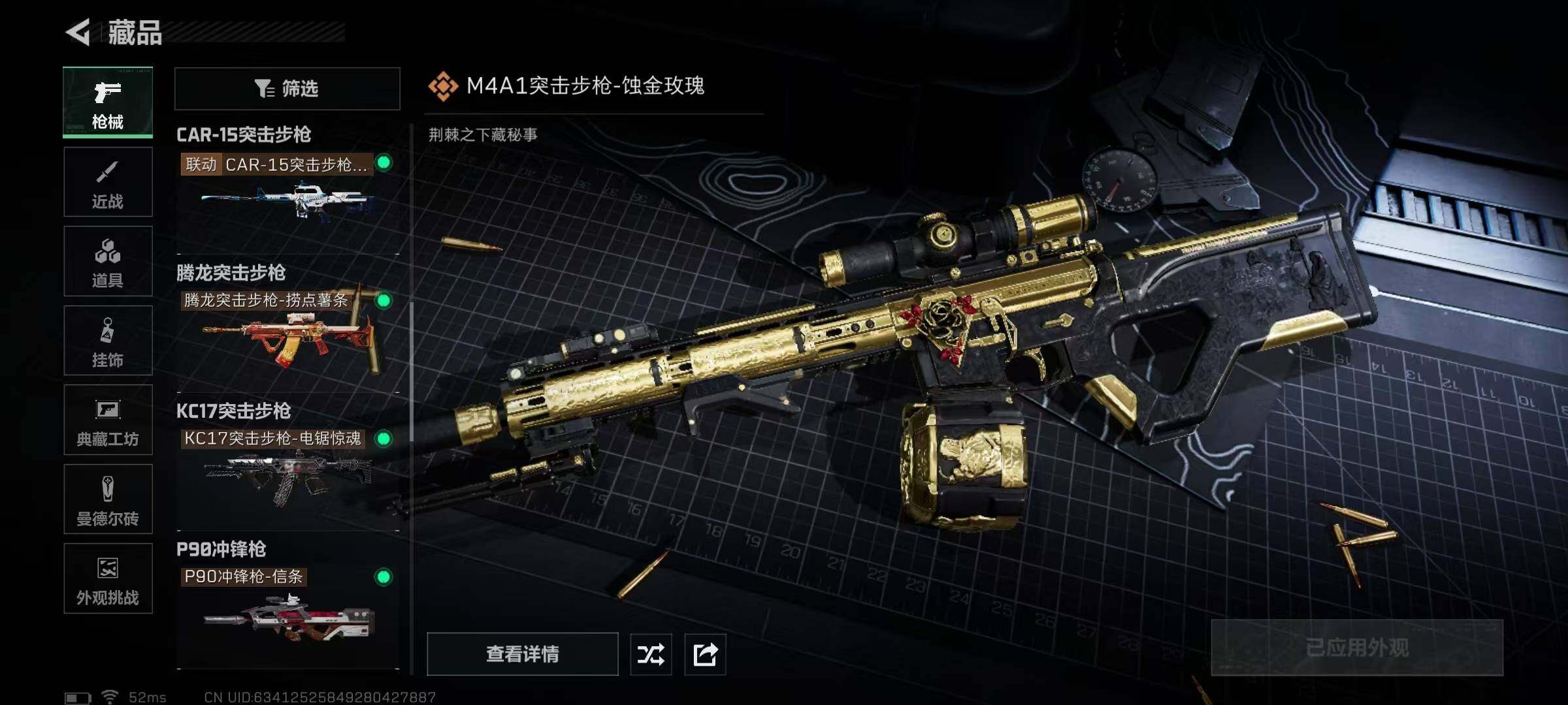 【传说外观】:M4A1突击步枪-蚀金玫瑰,M4A1突击步枪-阿米娅,ASh-12战斗步枪-鹅鸭杀,SG552突击步枪-运动员,AK-12突击步枪-特斯拉线圈,SCAR-H战斗步枪-启航,CAR-15突击步枪-阿米娅,腾龙突击步