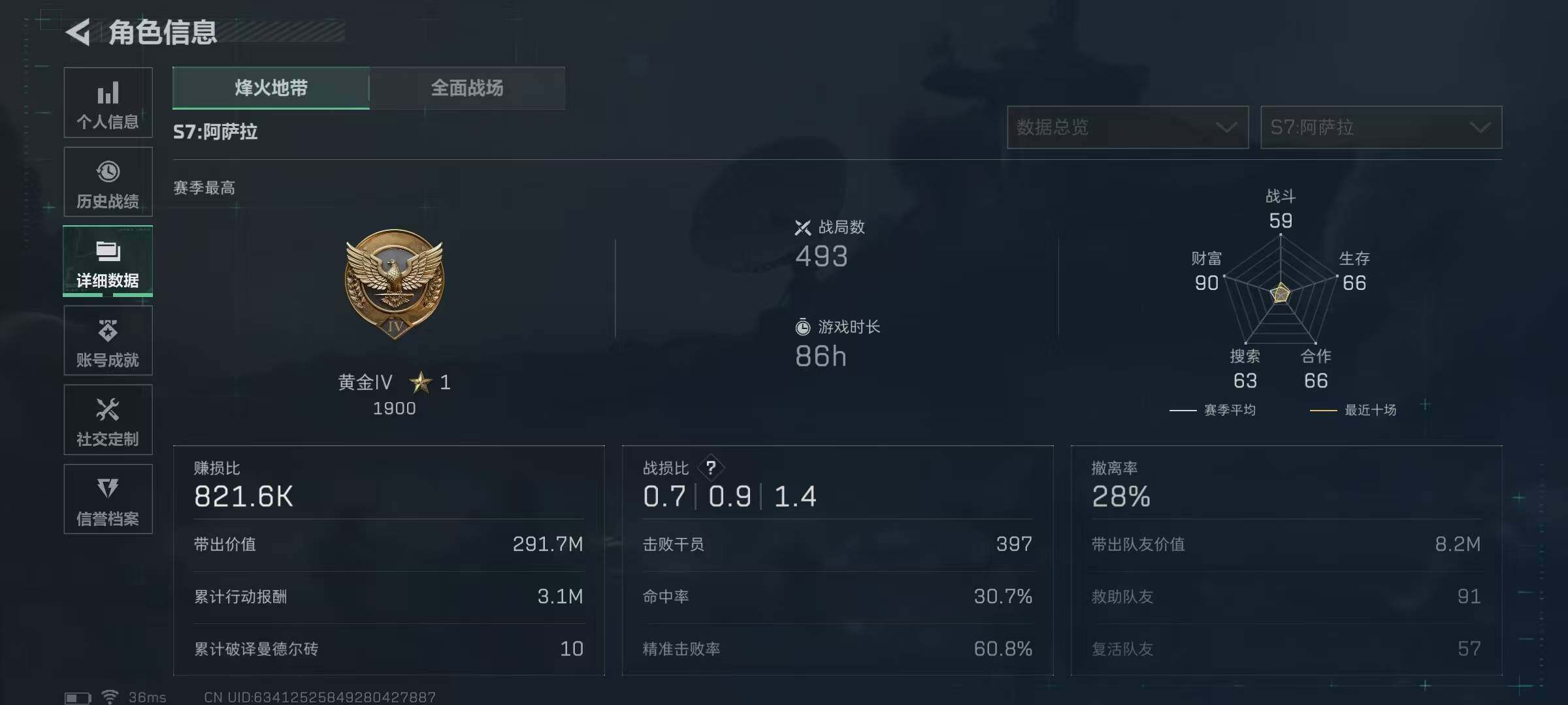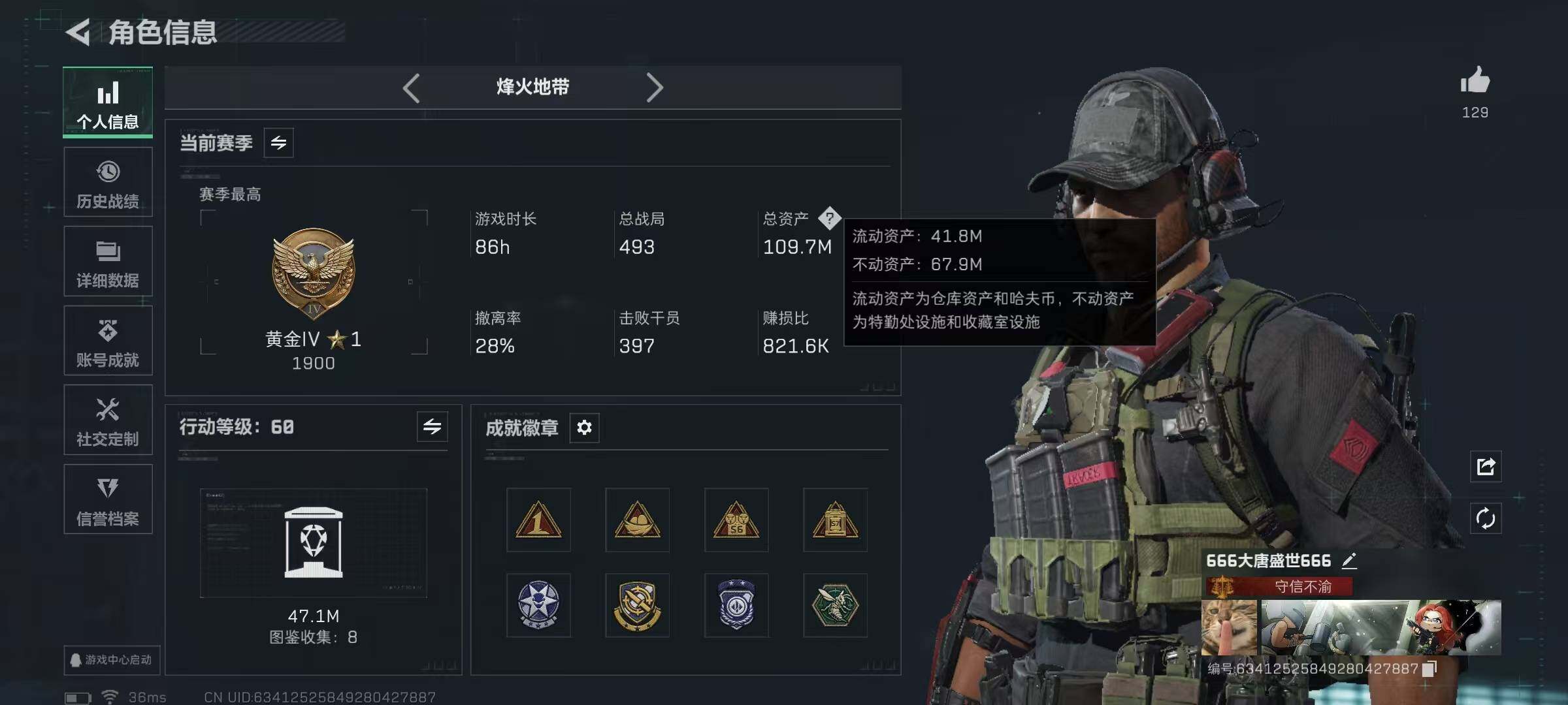 109m总资产-1464k哈伏币-60烽火等级-黄金-9战场等级-列兵【干员