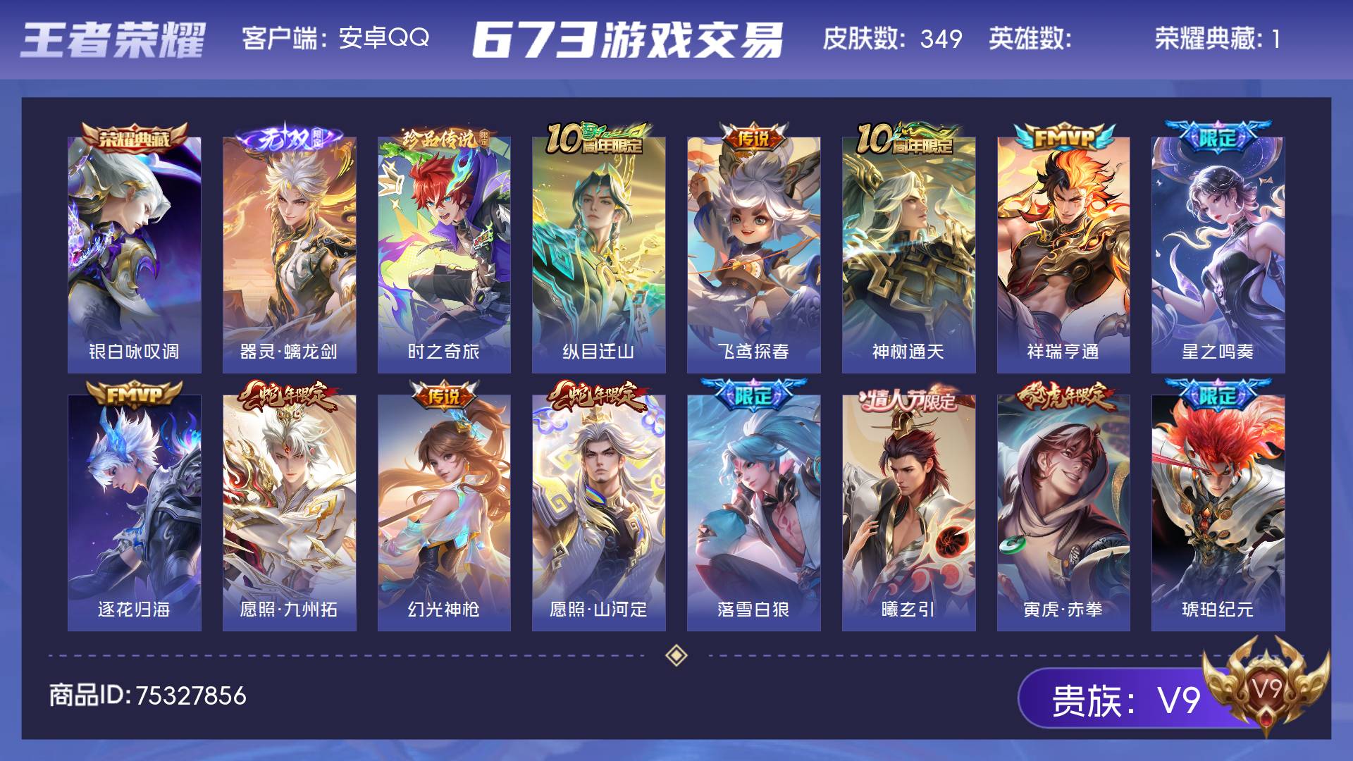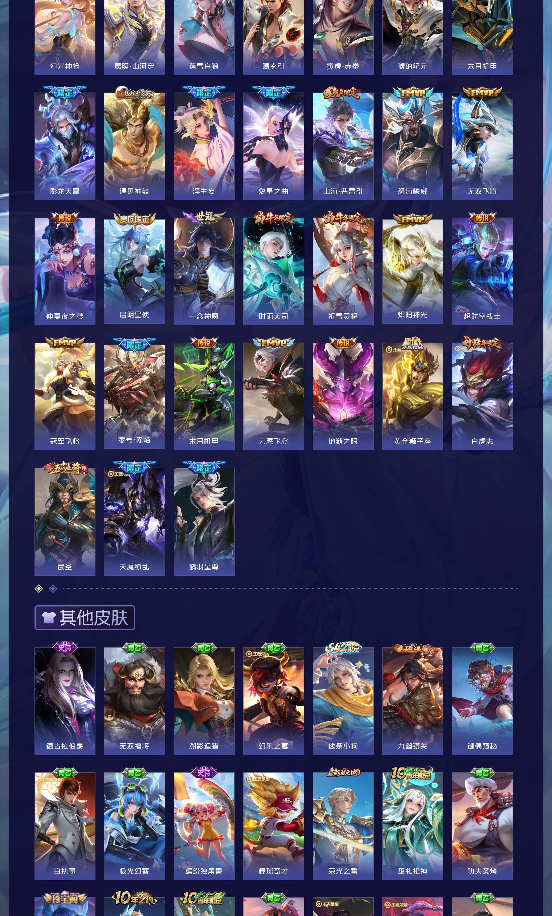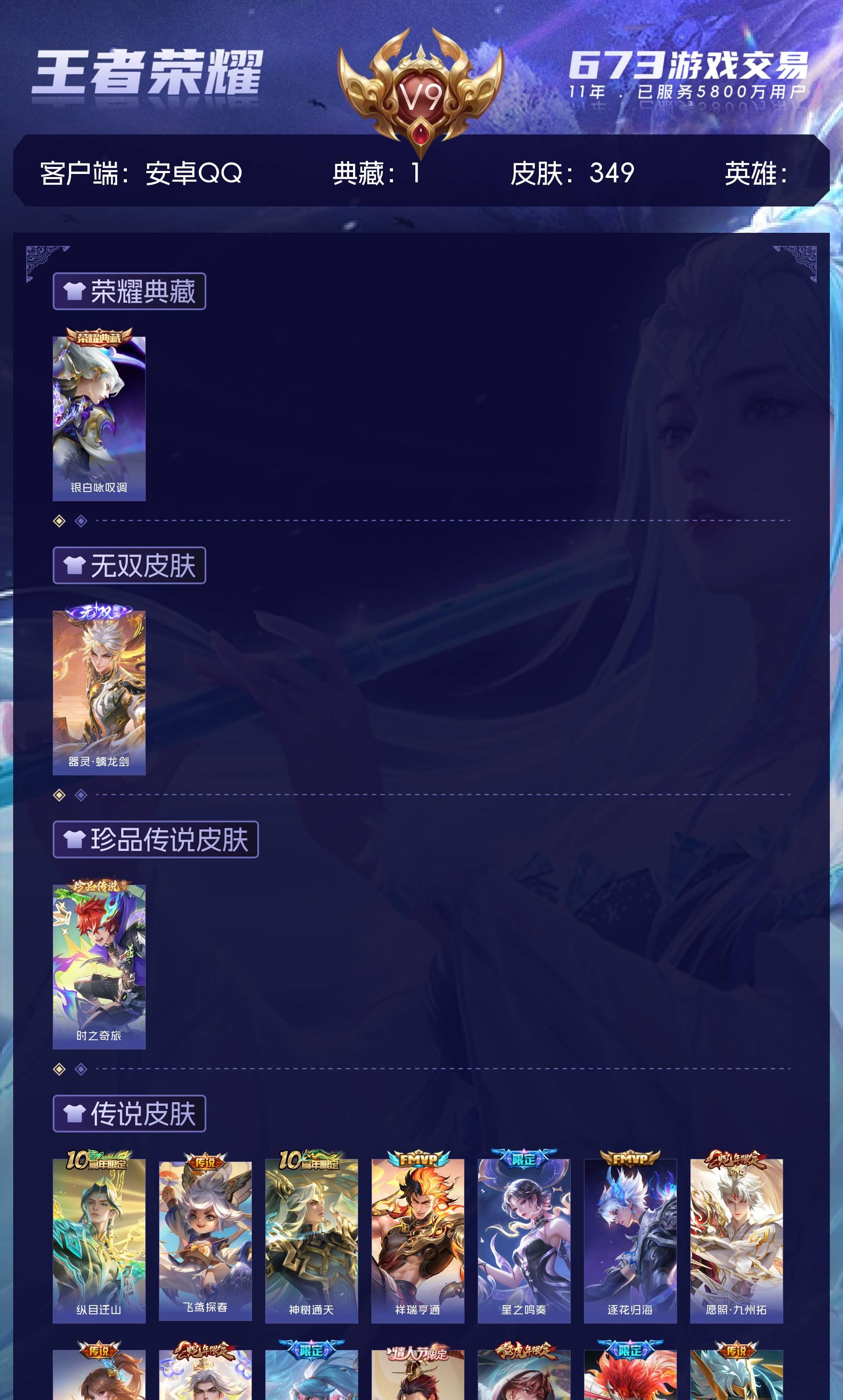 V9 皮肤349 至尊星耀 荣耀典藏1 无双皮肤1 珍品传说1 传说39 其他皮肤311