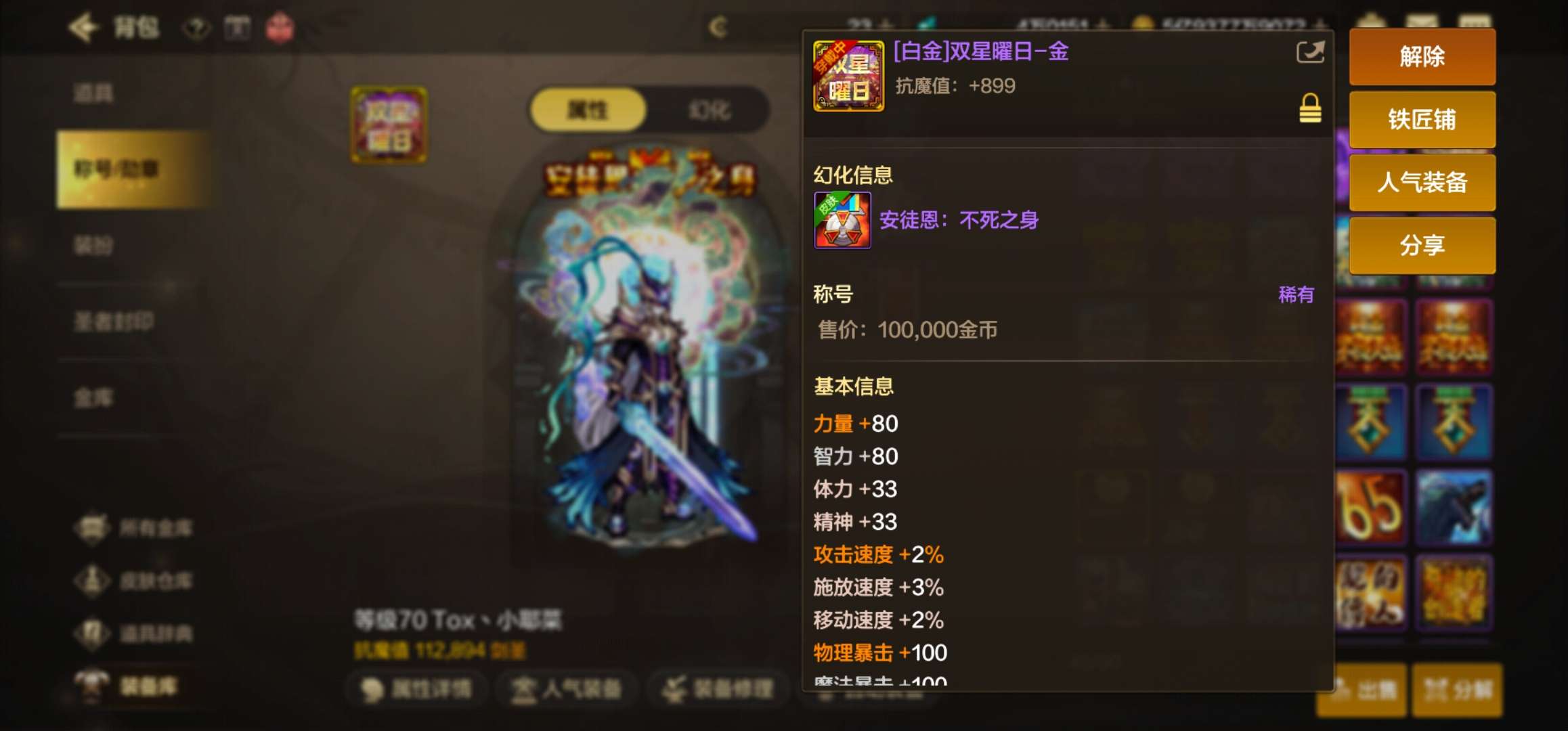 11.4W抗魔,武器增幅9,有3小号抗魔10.3W,1个奶妈10.1W,5个号都可以困难安图恩