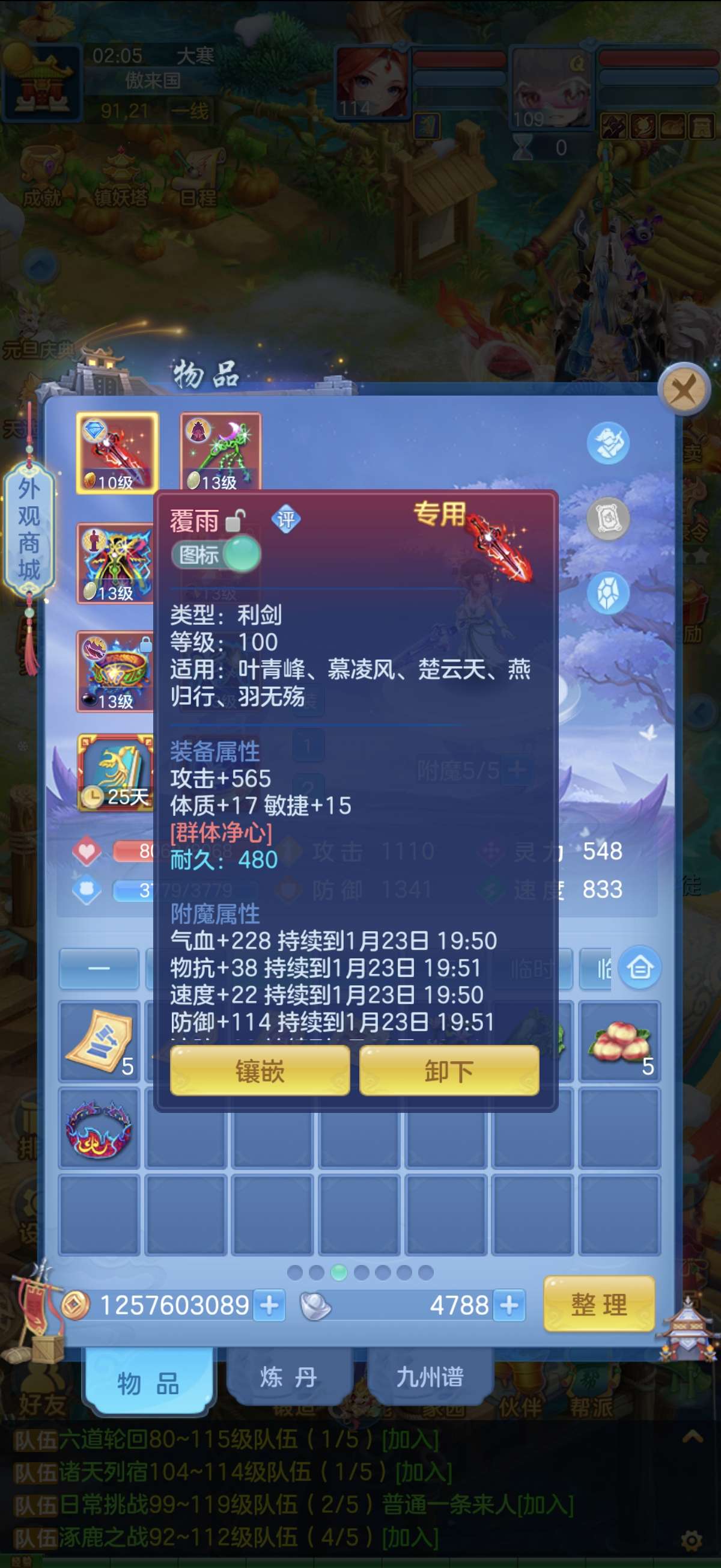 109级13锻双红三红神器盘丝,3强化神(两个带皮肤蛇,一个玉龙),一年换绑有双重。