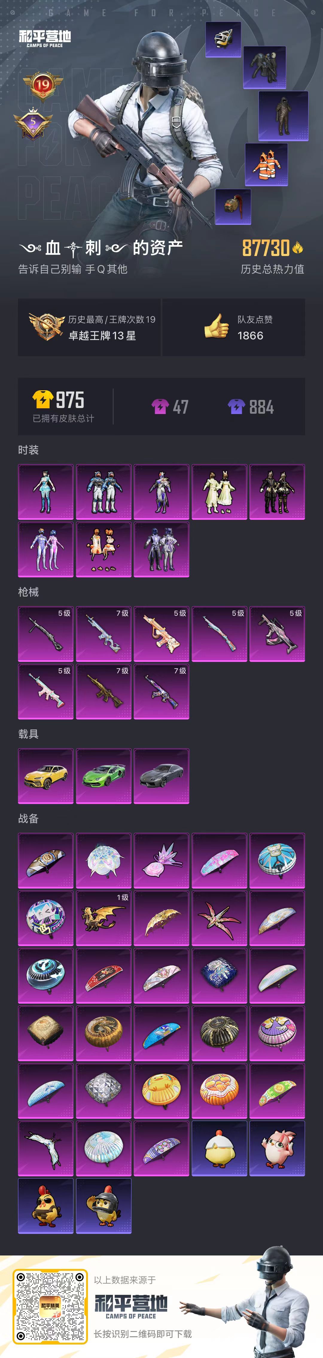 hs58435 安卓手Q-19王牌印记-8粉装-8特效枪-3载具-87730热力值-183套装-25