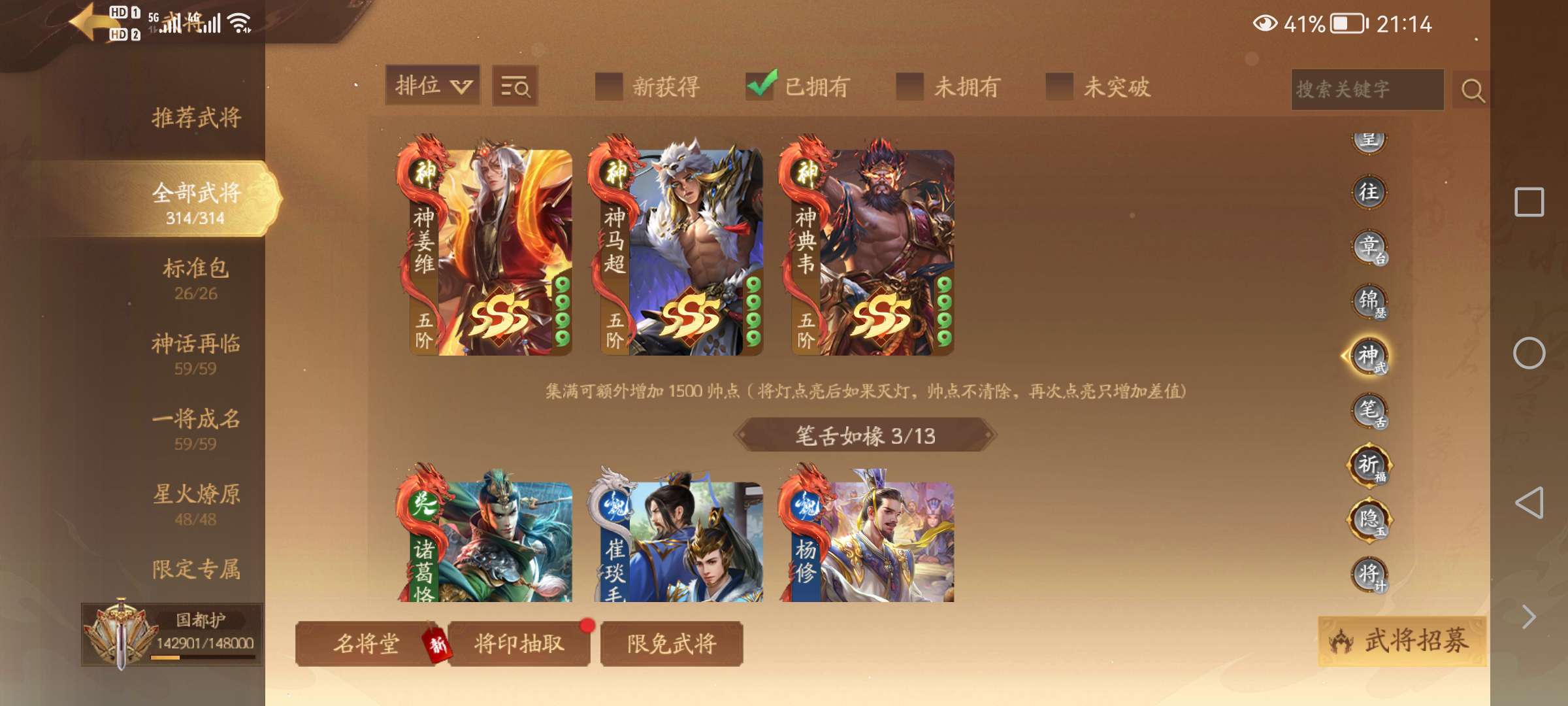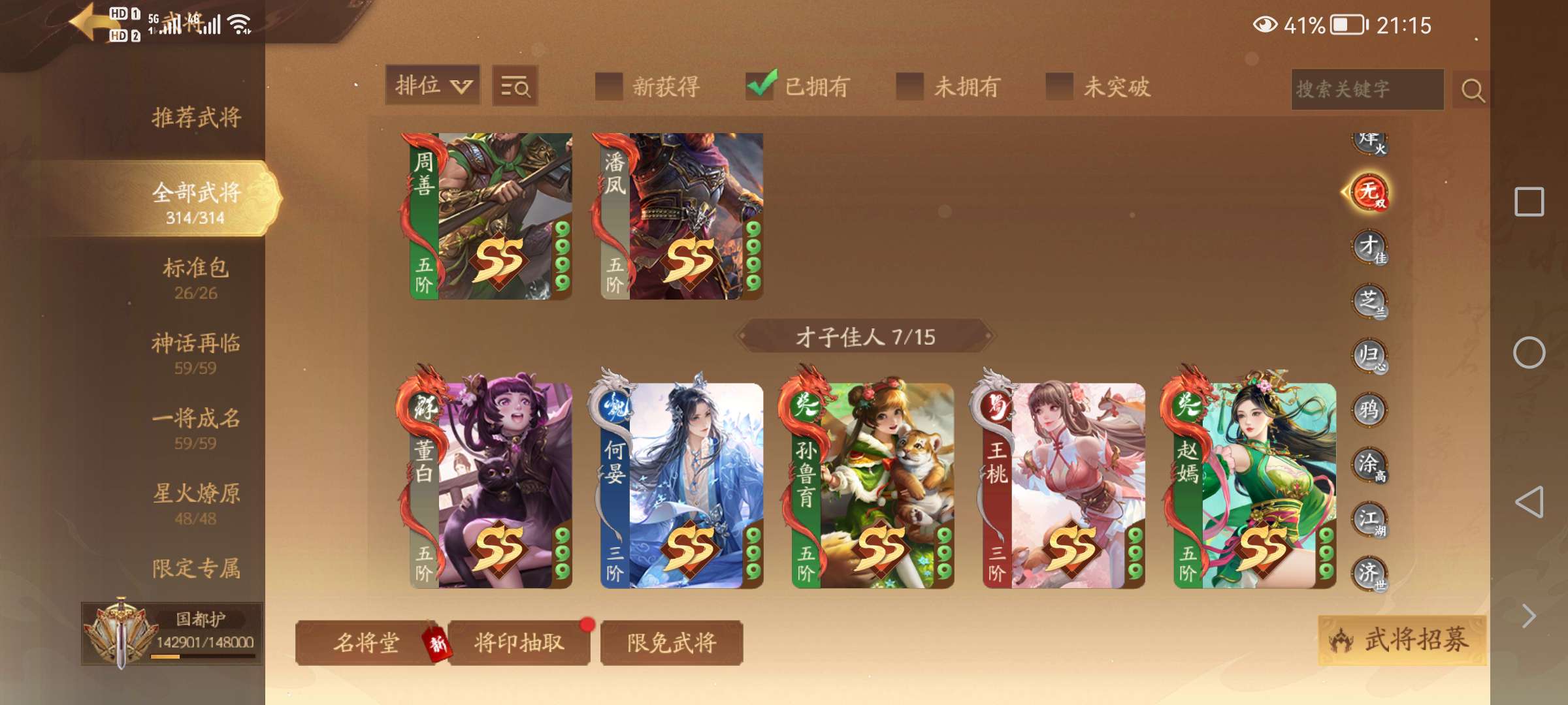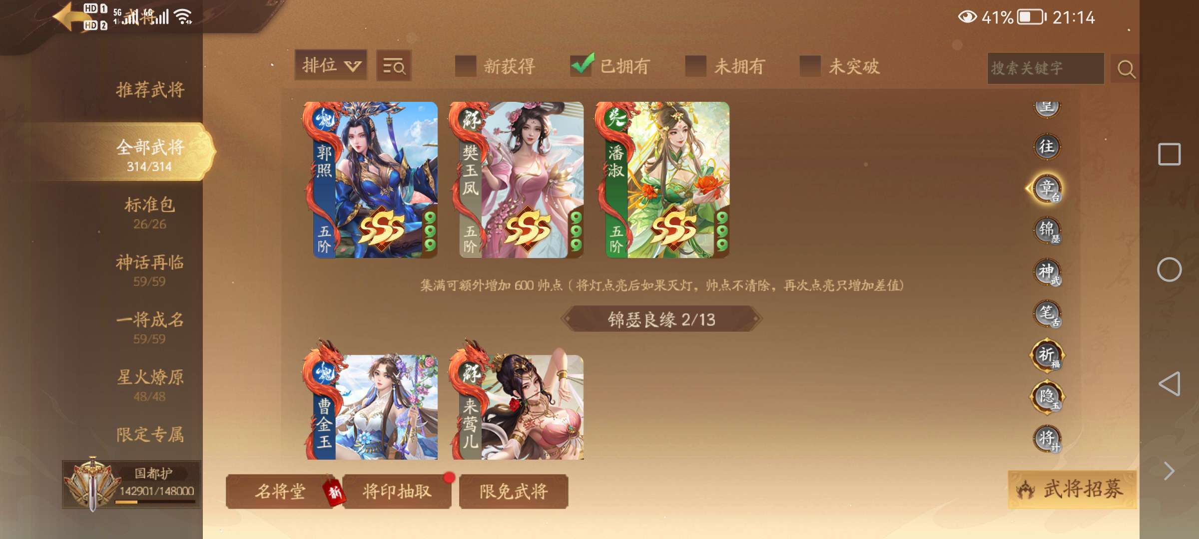 张琪英,曹婴,徐荣赵襄单人号,神姜维,神马超,曹金玉,潘淑郭照管宁,何晏,藤胤,张宁童渊许劭