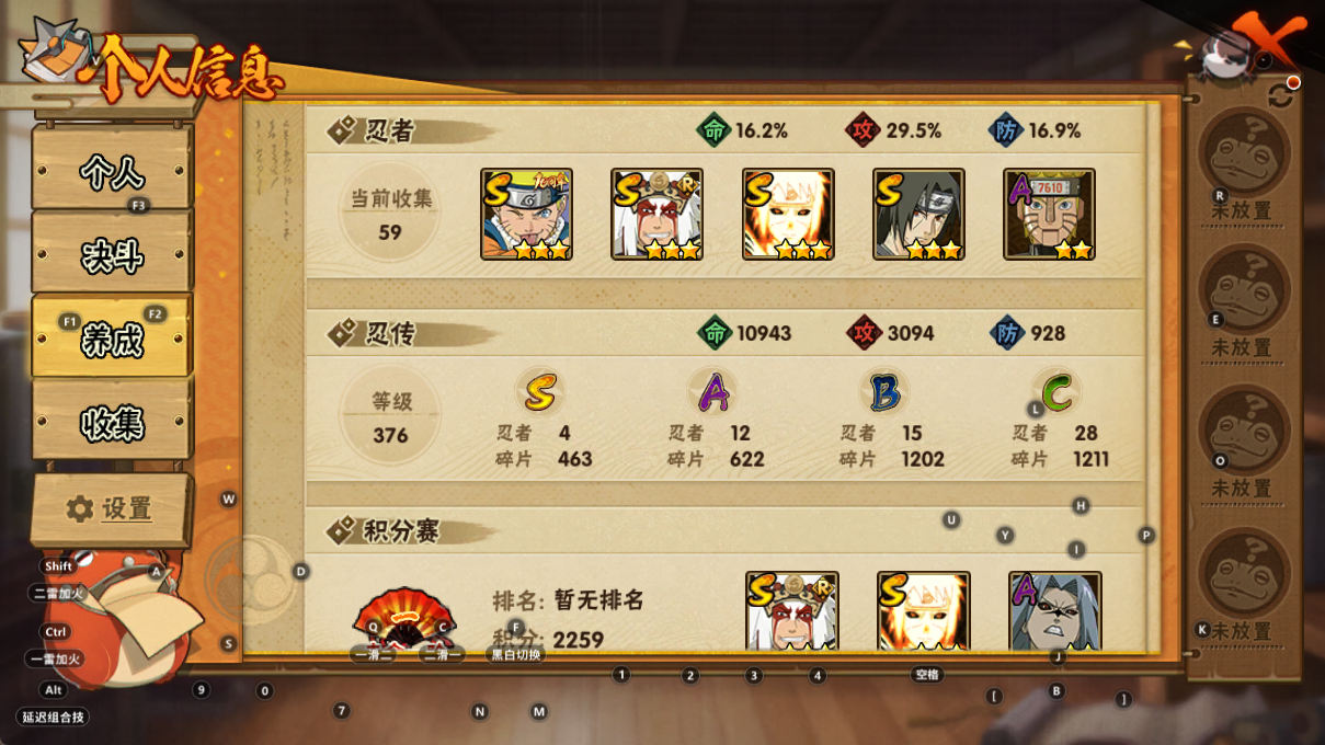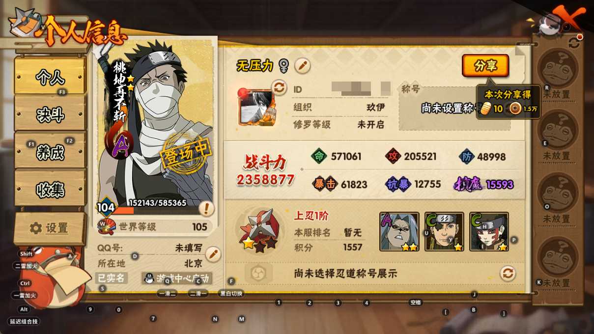 235w金水4s+1直购12a战力235账号等级104忍者总