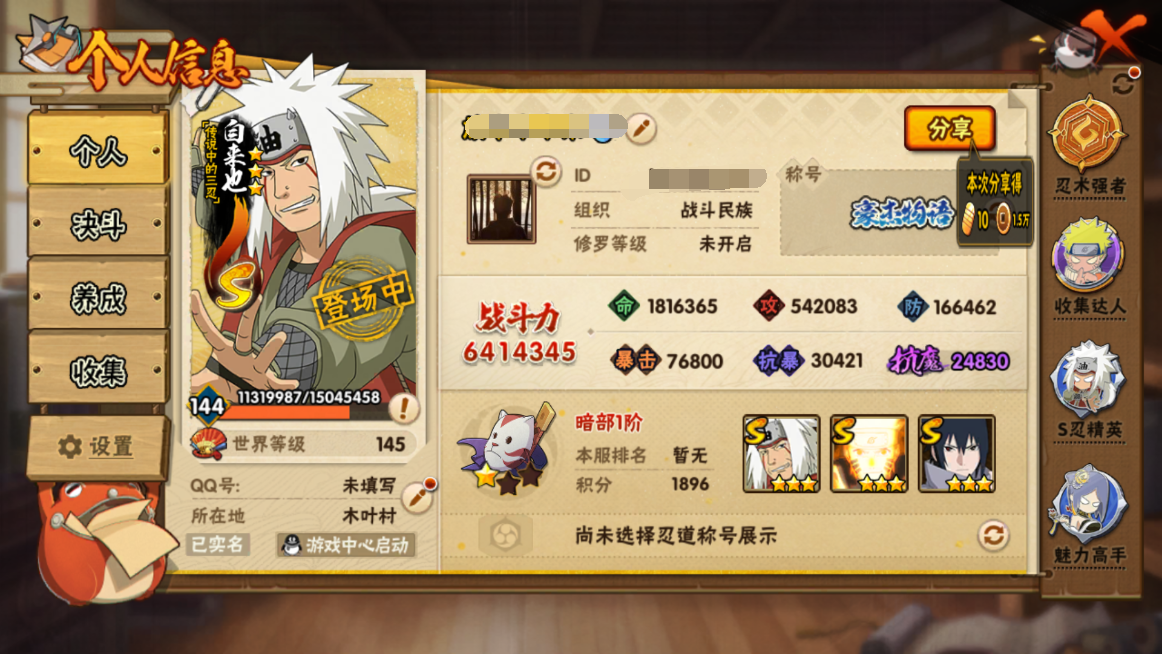 641w战力死水-秽土鼬13S+新春鼬2个198直购A战力6