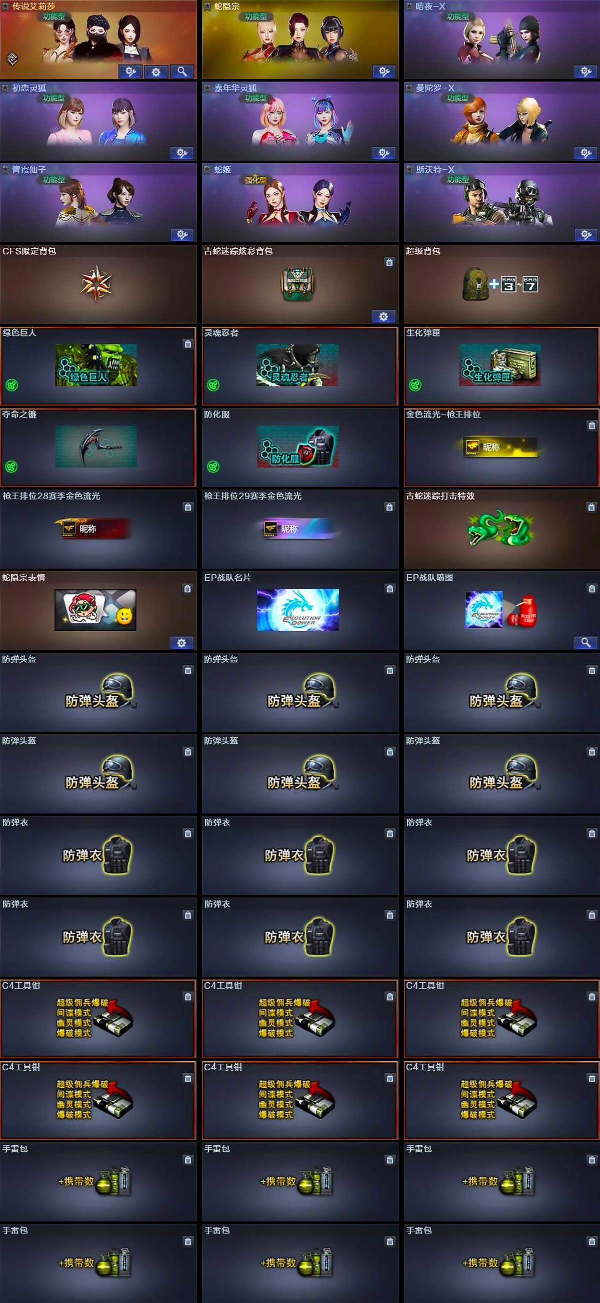 【人偶武器】:炼狱-迷你小钢,AWM-灵狐-15周年嘉年华,迷你深渊冰龙,迷你波特博士,迷你牛牛*2,生化手雷-机甲核心*3,灵狐娃娃手雷