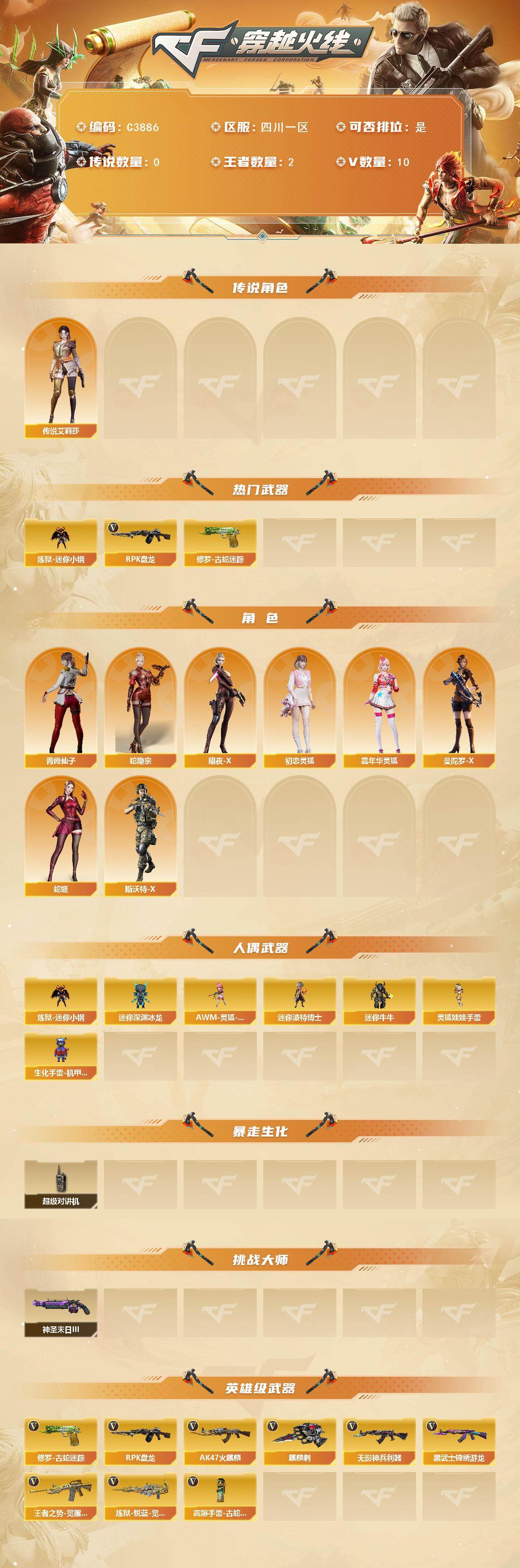 【C3886】四川一区-10V-2王者-0炫金