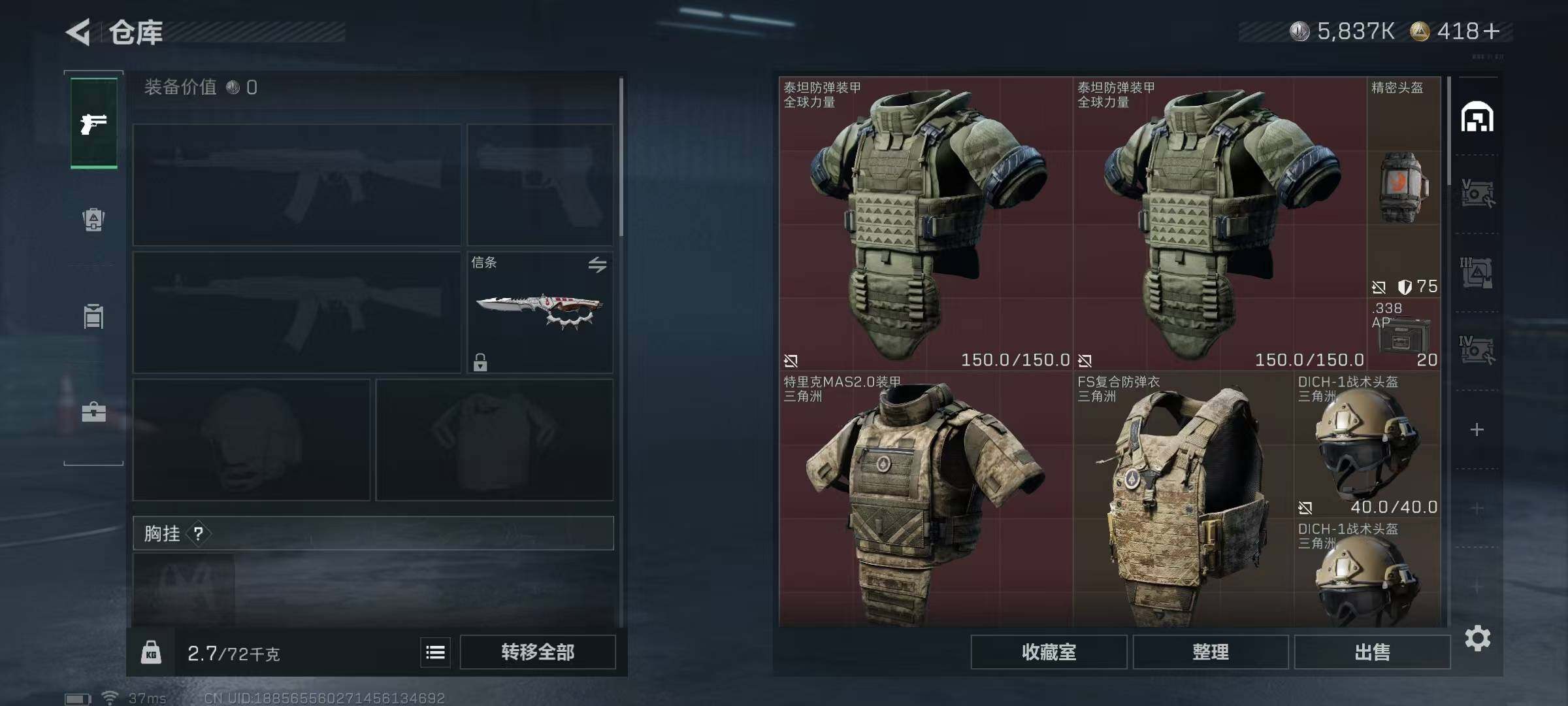 总资产(M):264M/哈夫币(K):5837K