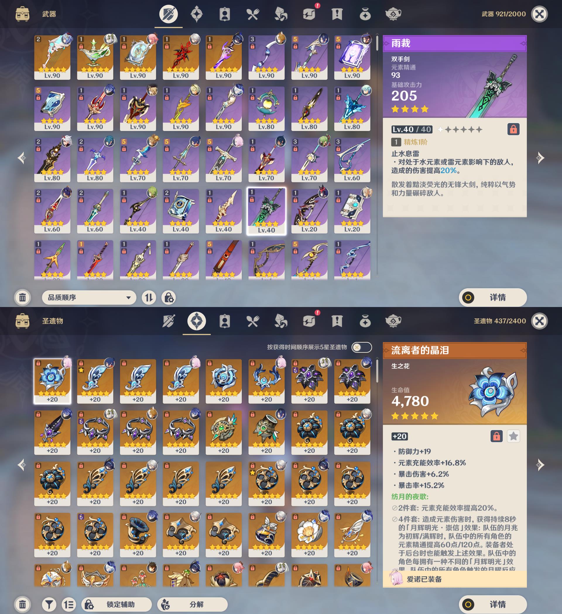 58级/34黄/女主/21个五星角色/5个五星武器/0命菲林斯/八重神子
