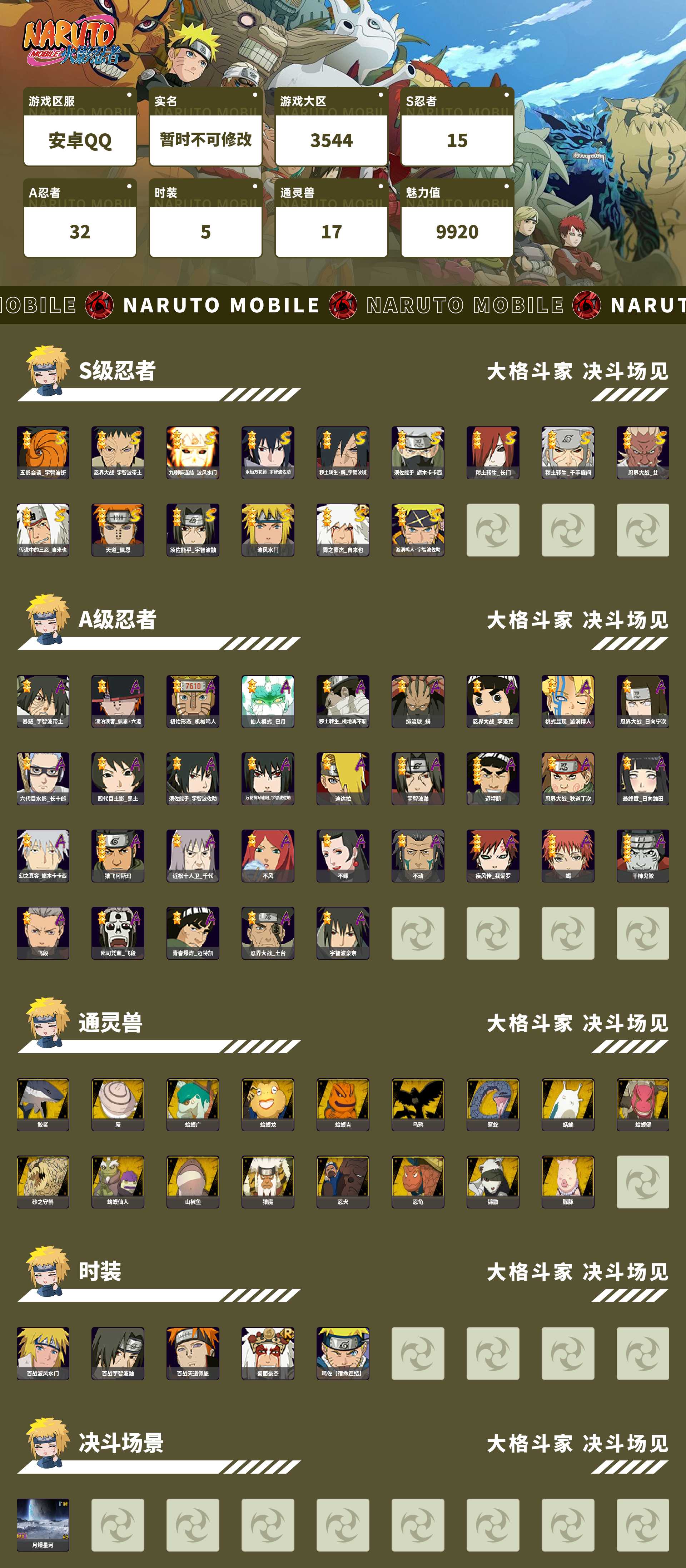 958w战力无影斑破面金水15S+298暴怒带土/盾狗32A