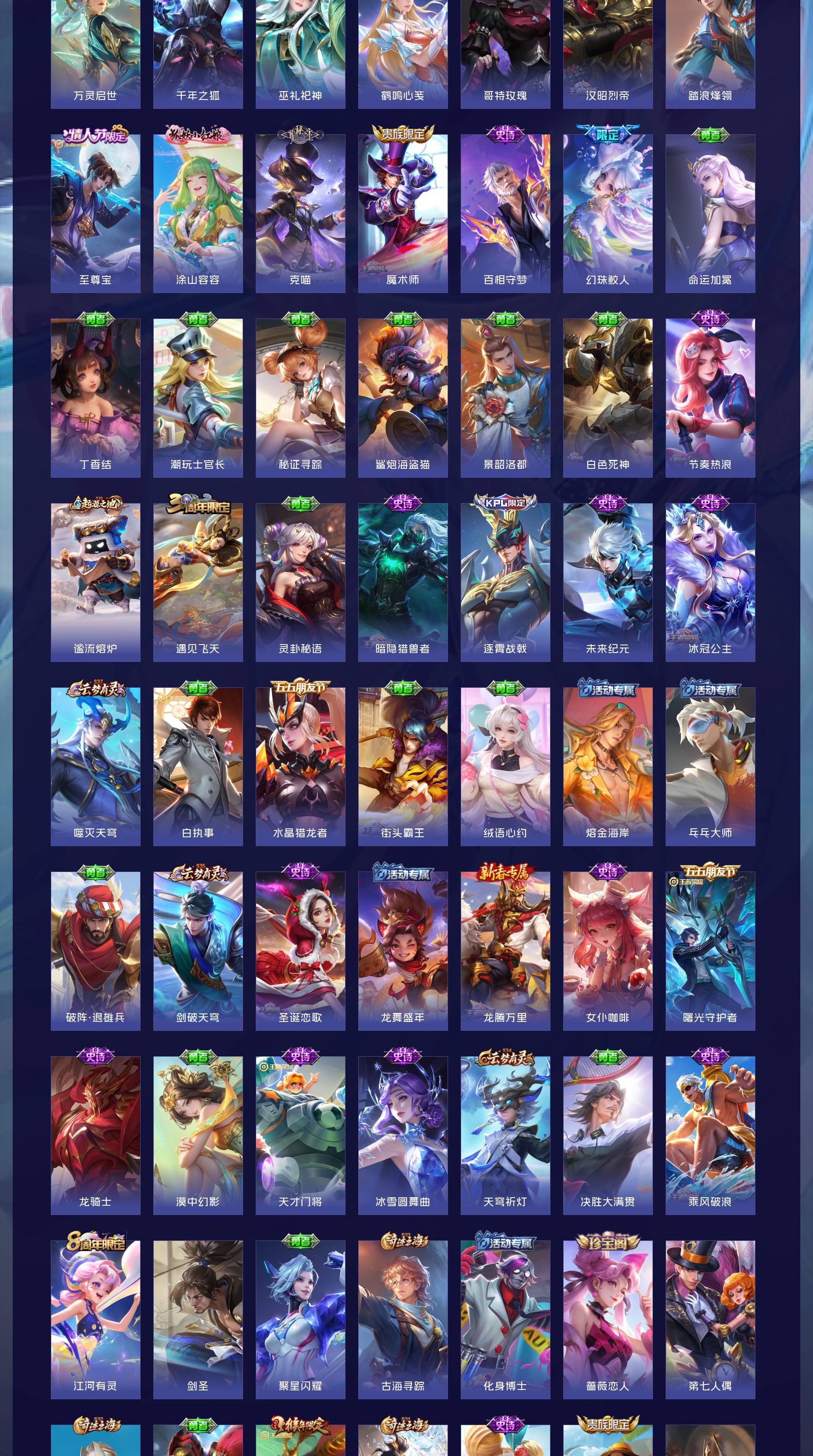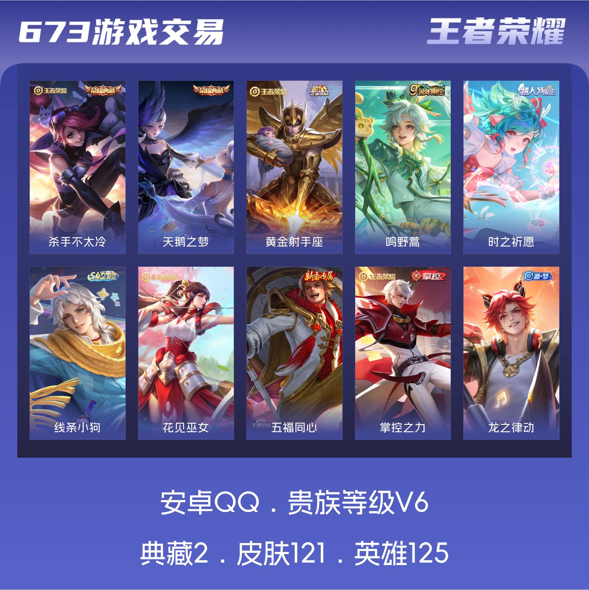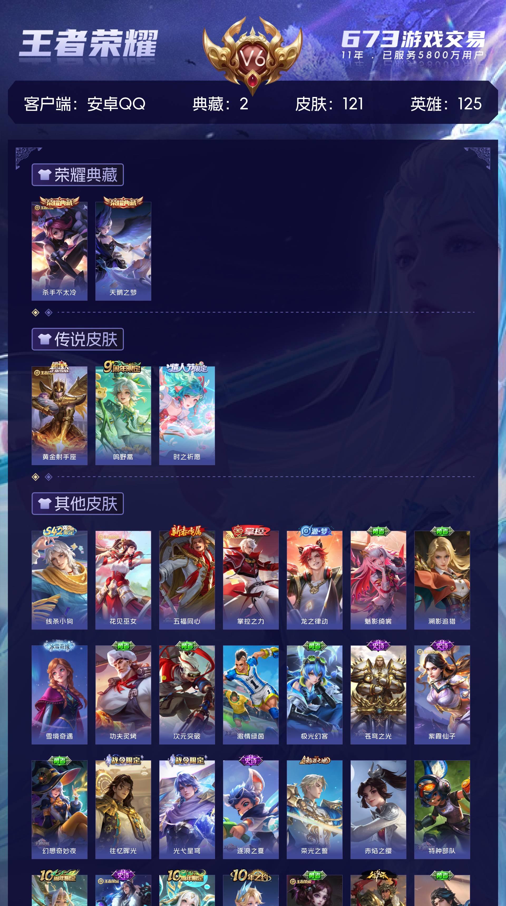 V6 皮肤121 英雄125 永恒钻石 荣耀典藏2 星传说1 传说3 其他皮肤122