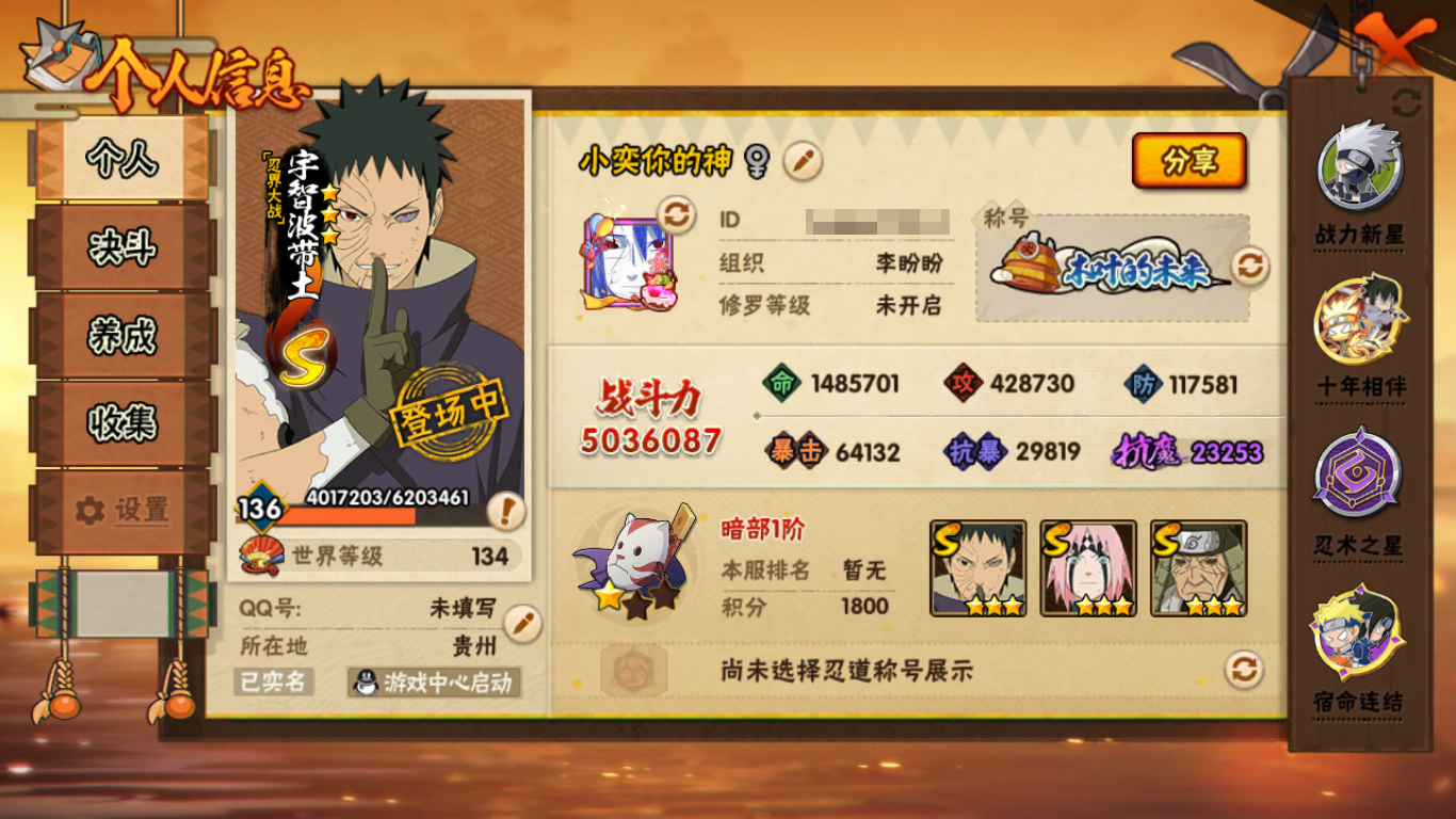 503w战力破面紫狗忍战樱9S+鸡翅20A+四代雷碎片72个