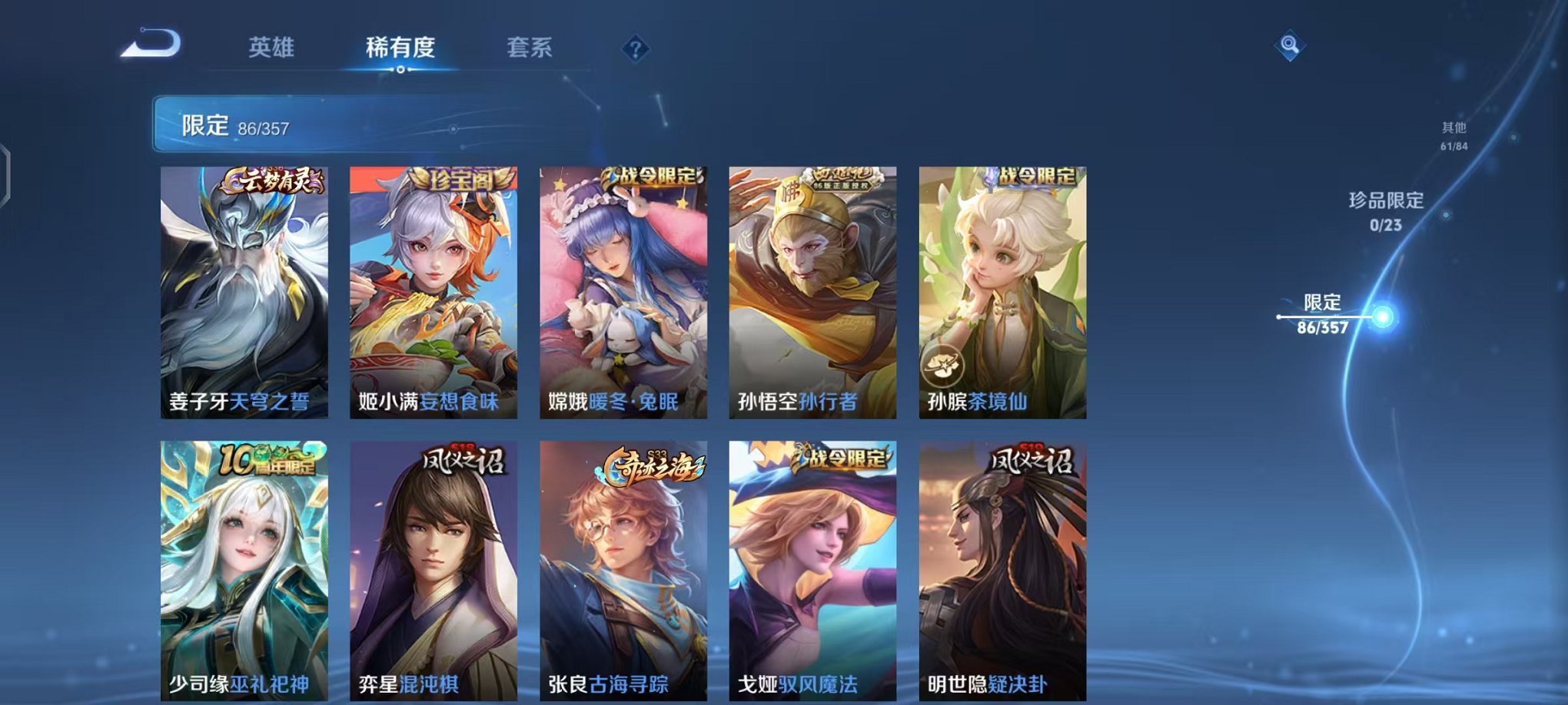 287皮肤1水晶1星元11传说1金标可秒换绑