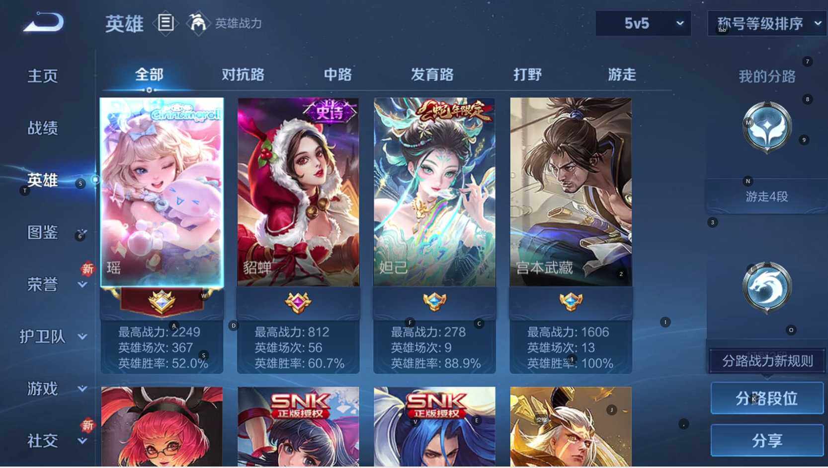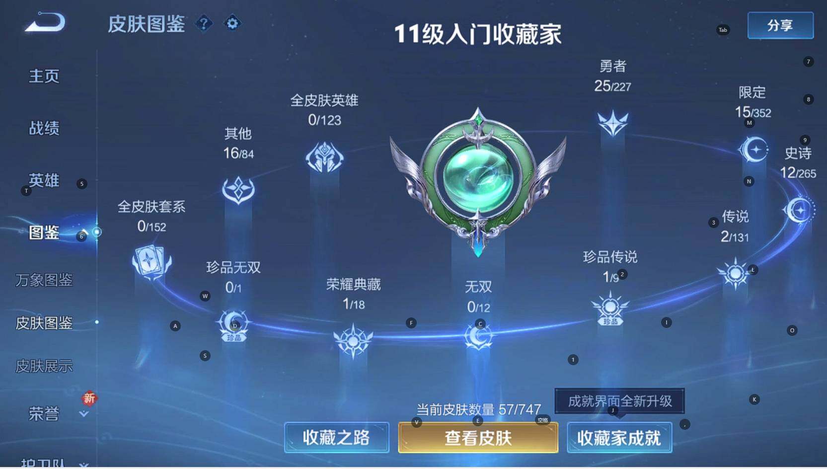 精品小女号!安卓Q-V7-永恒钻石V段位-80英雄-57皮肤-1典藏皮肤-1珍品传说-2传说-12史诗