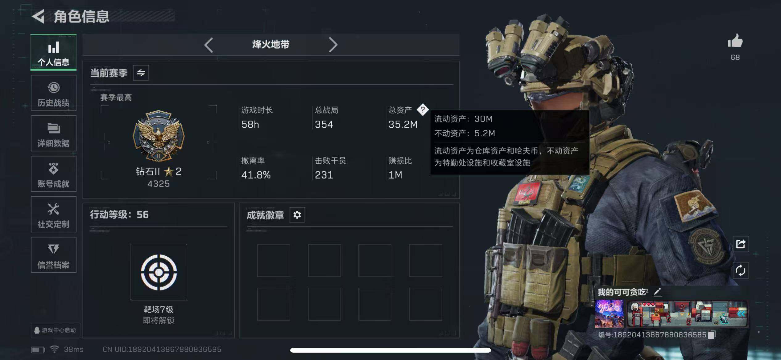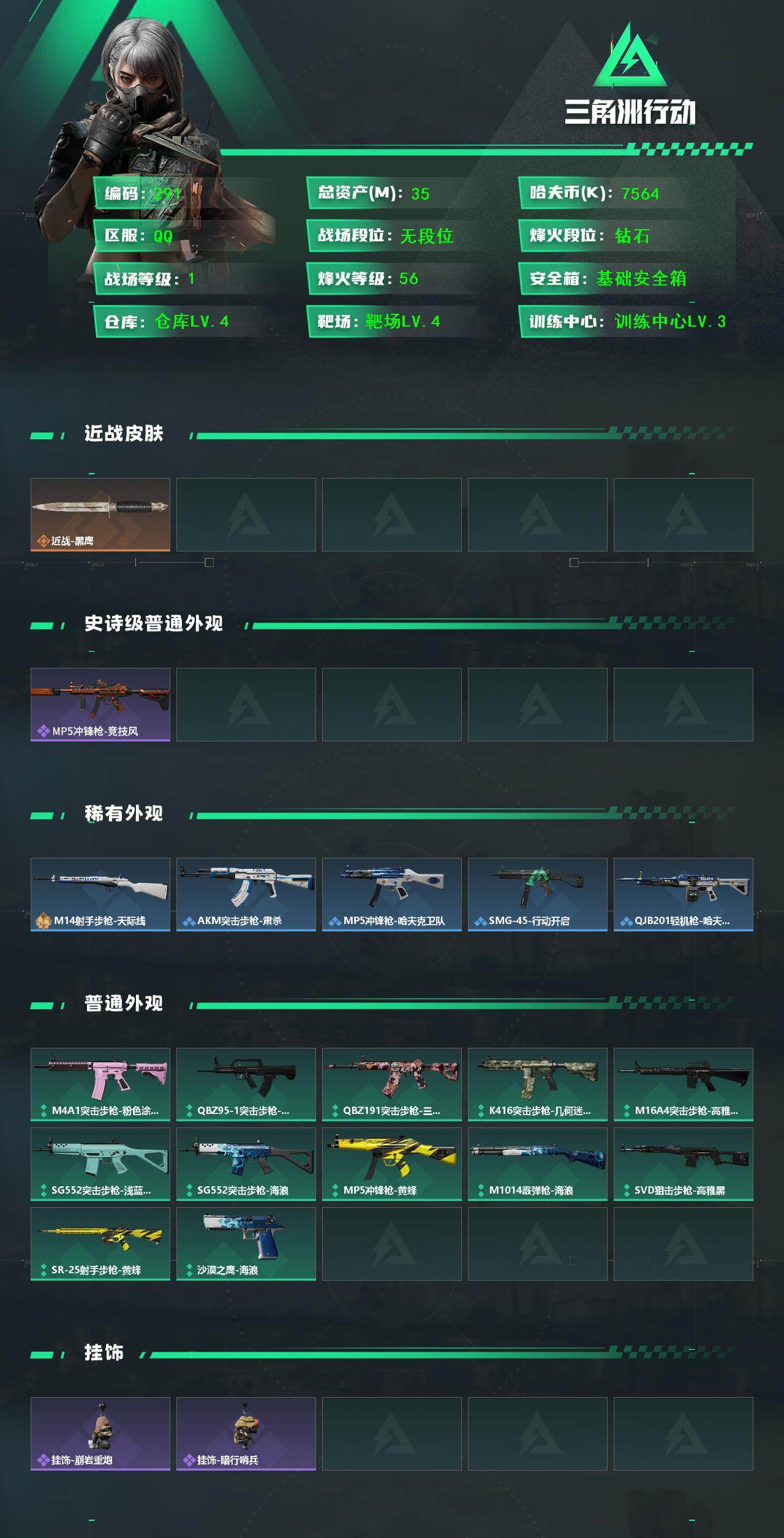 【过年不打烊·联系客服秒发货·纯币750万·总资产35M·烽火杯·一堆枪】35m总资产-7564k哈伏币-56烽火等级-钻石-1战场等级-无军衔
