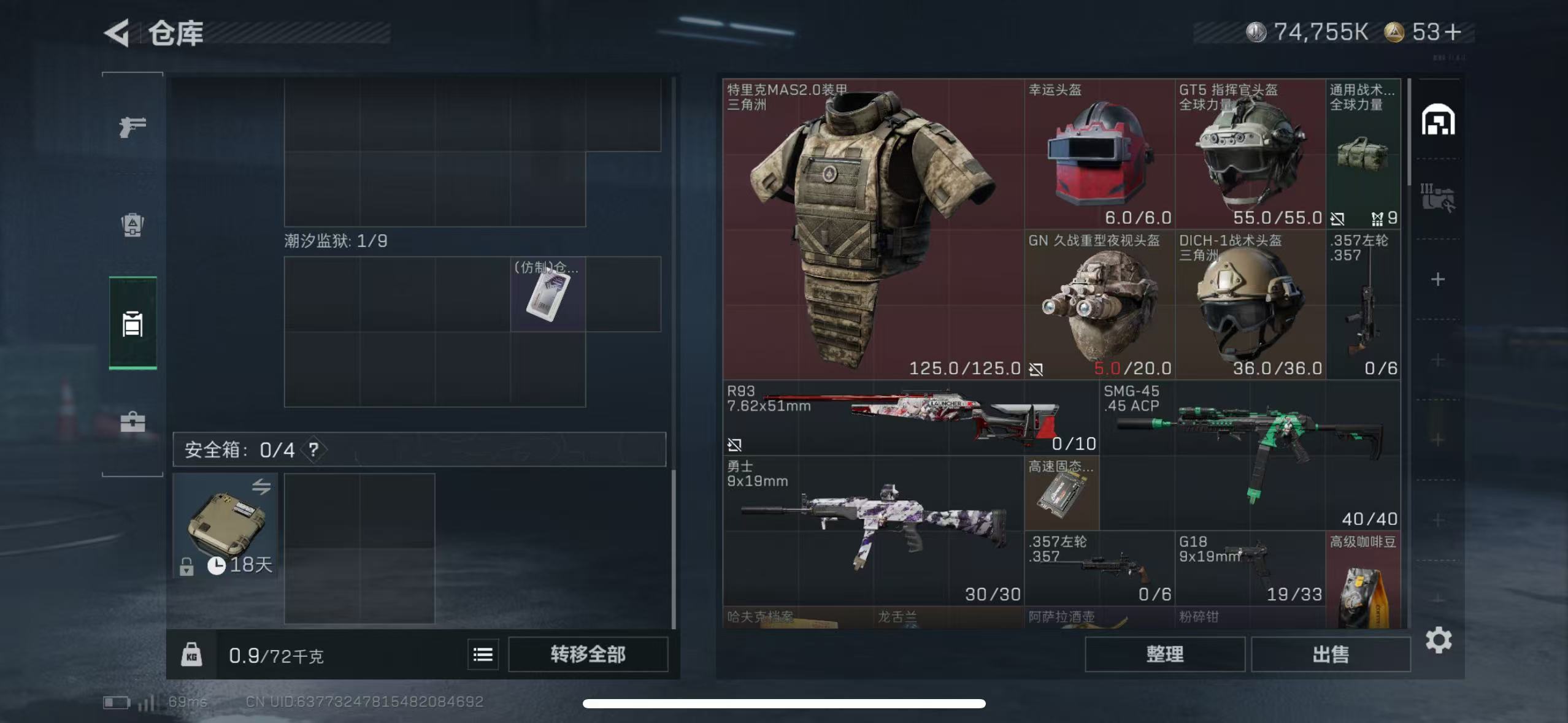 ZMSJ842三端互通-总价值104.7M-哈夫币74755K-烽火地带等级60-烽火地带段位黑鹰-【干员皮肤】红狼-电锯惊魂【枪皮】M7战斗步枪-巳蛇 SCAR-H战斗步枪-启航 M14射手步枪-电锯惊魂 SKS射手步枪-骑士 R93狙击步枪-维什戴尔【近战武器】黑鹰