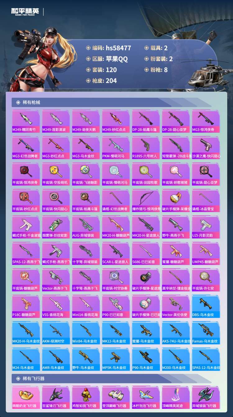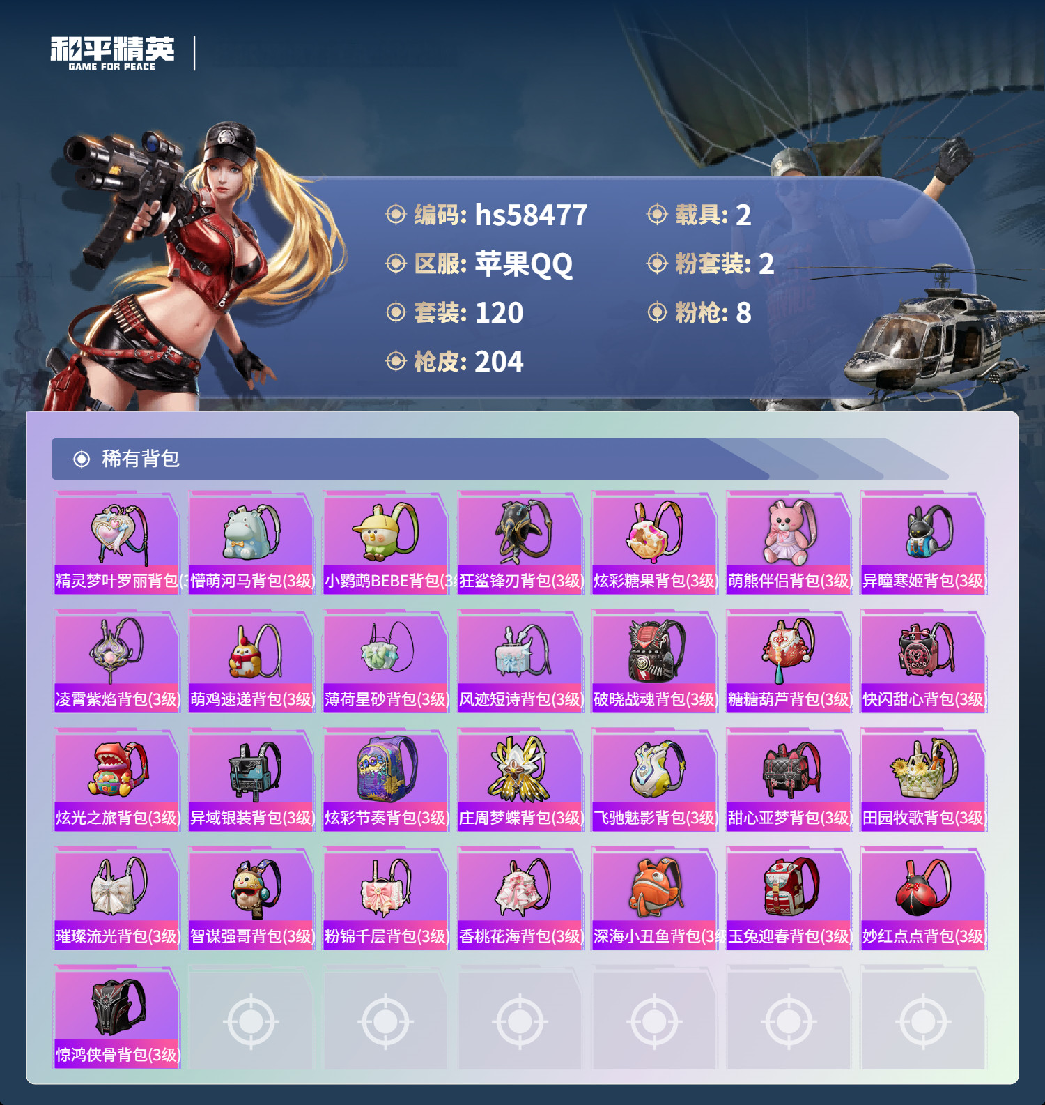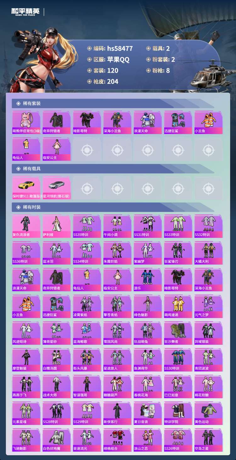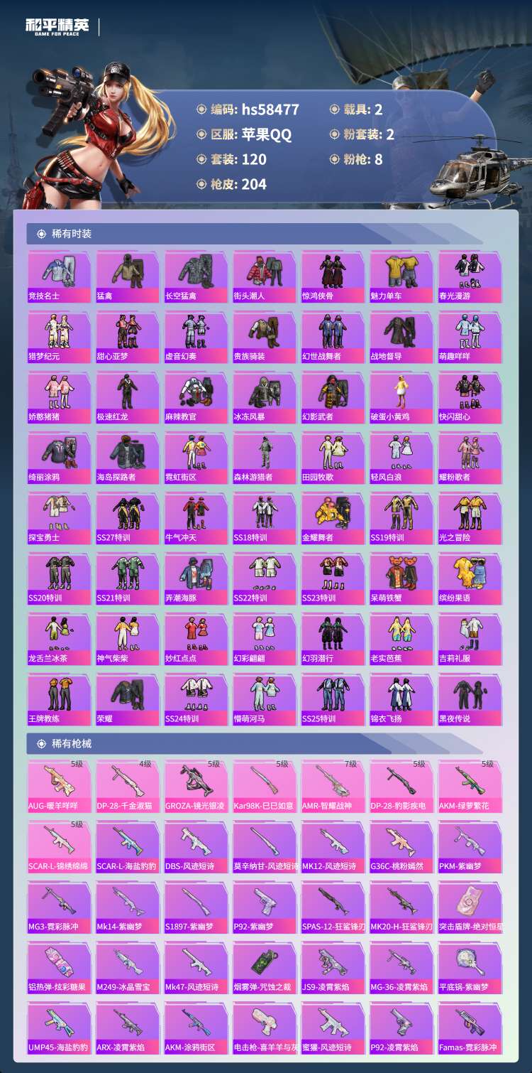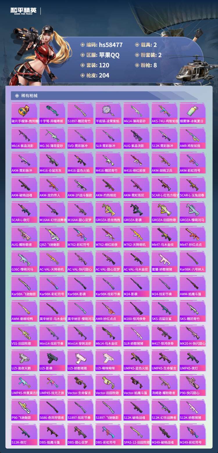 hs58477 苹果手Q-13王牌印记-2粉装-8特效枪-2载具-57761热力值-120套装-20