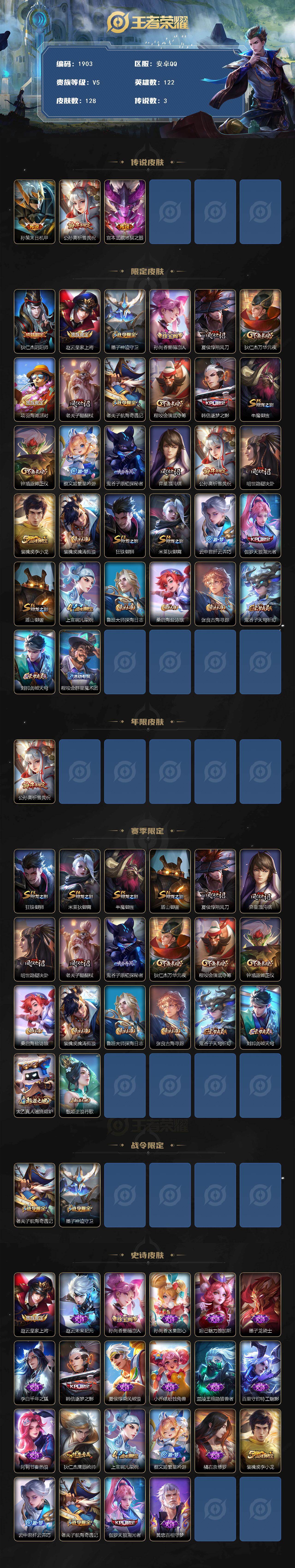 【过年不打烊·联系客服秒发货·3传说祈雪灵祝-特价出售·发育路的神·小兔子】安卓Q-V5-秩序白银II段位-122英雄-128皮肤-3传说-22史诗